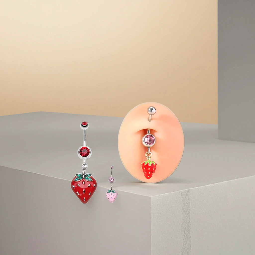 2026 Hot Sale Body Jewelry Crystal Cherry Belly Ring New Trendy Navel Piercing for Women Surgical Steel Piercing