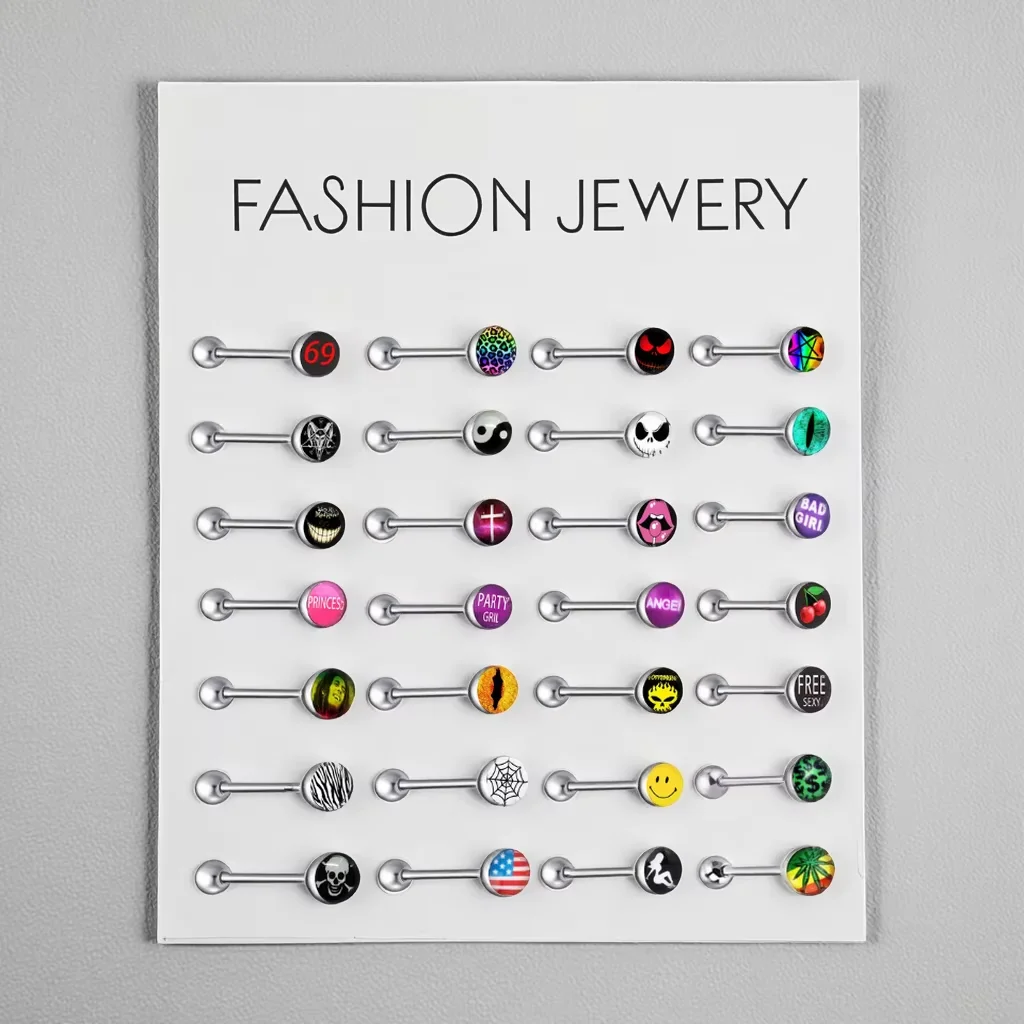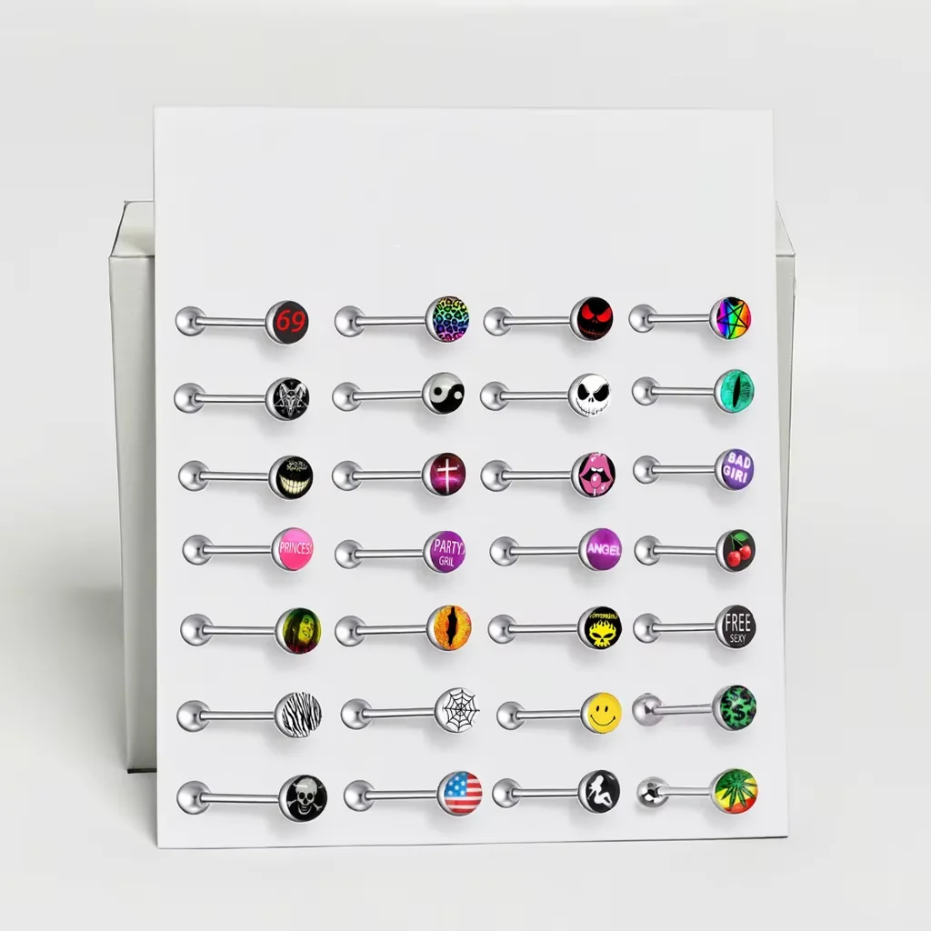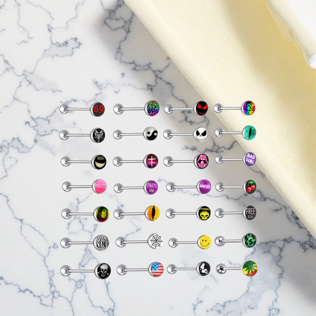 Xinfocus Hot Selling Logo Tongue Ring Body Piercing Jewelry Stainless Steel Logo Piercing Fashion Body Jewelry for Women Men