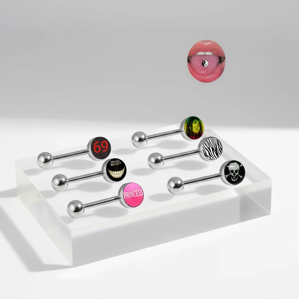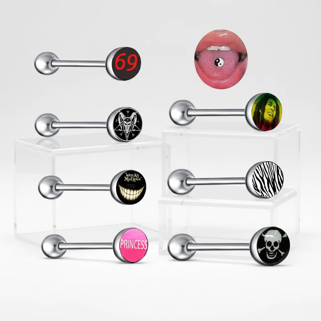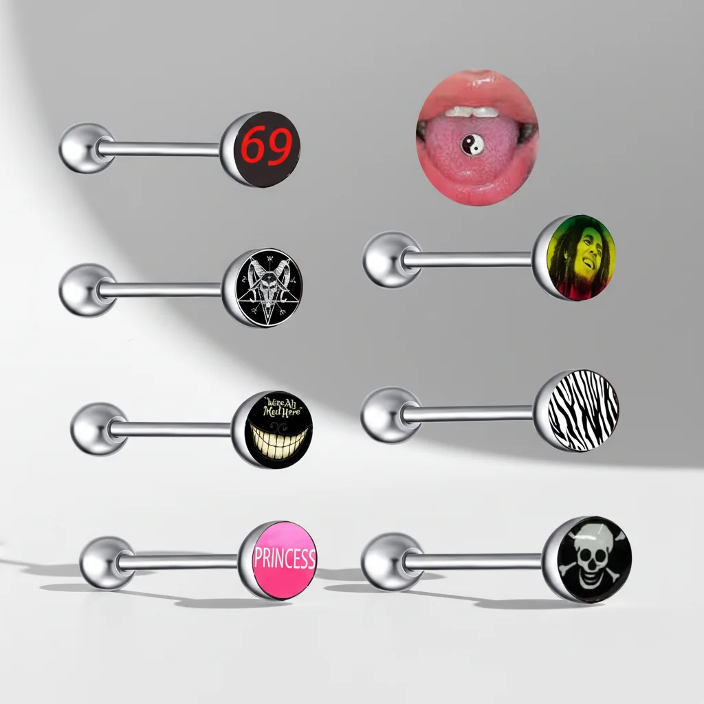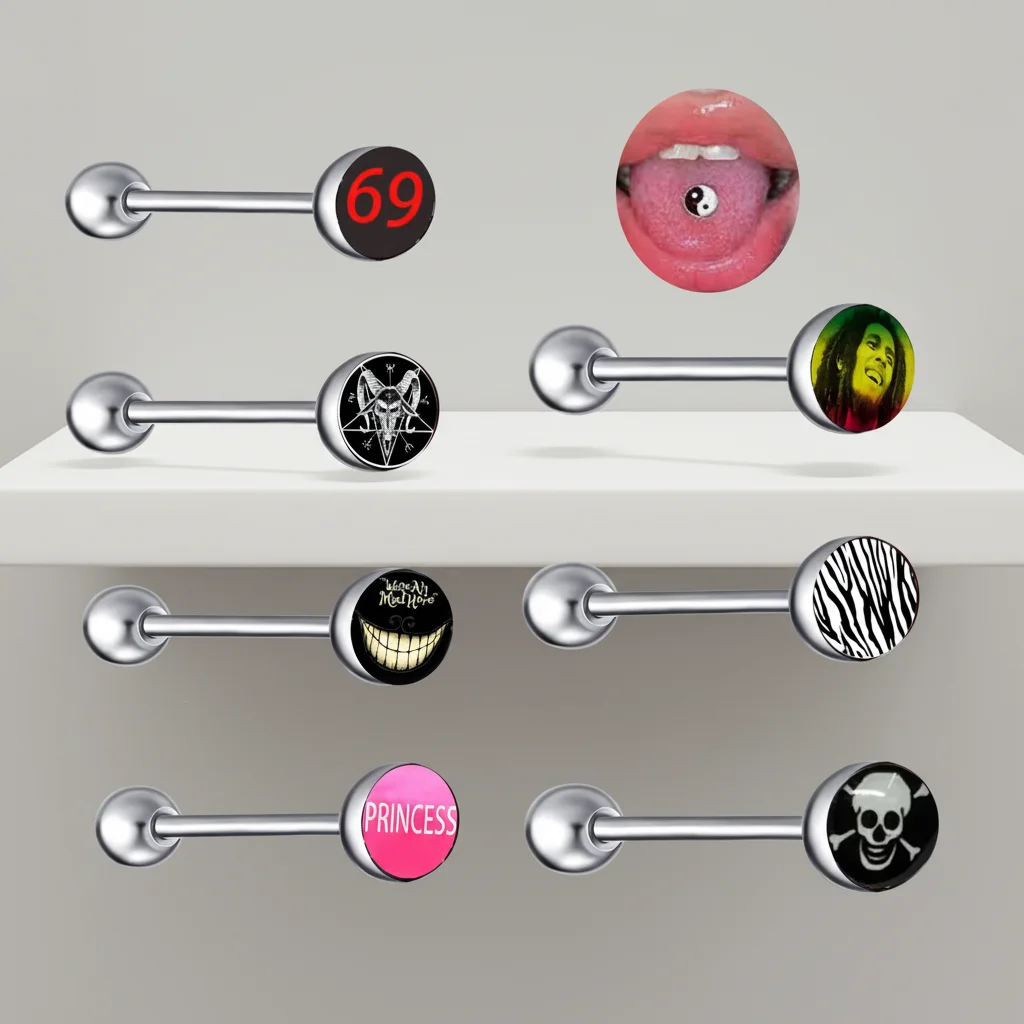 Xinfocus Hot Selling Gold Plated Logo Tongue Ring Body Piercing Jewelry Stainless Steel Unisex Wedding Fashion Sexy