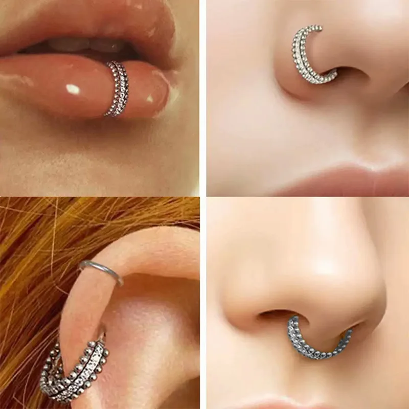 Xinfocs G23 Medical Grade Implantable Titanium Segment Hinged Clickers Nose Rings Studs Claw Setting Wedding Gift Body Piercing