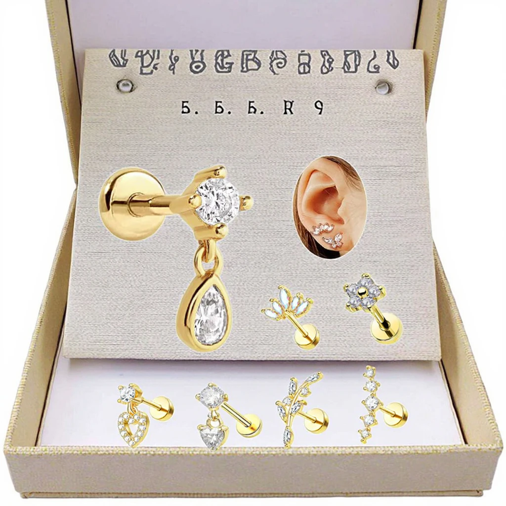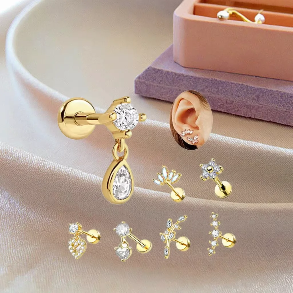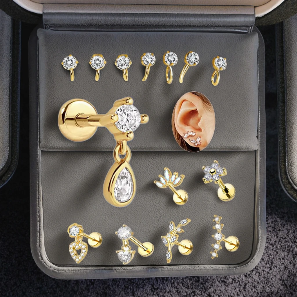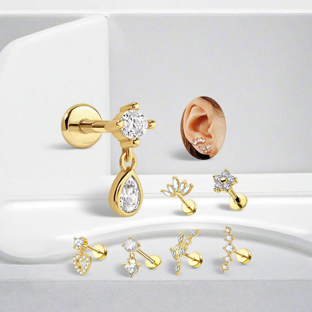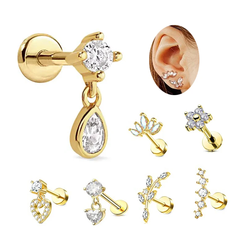 2026 New Trendy Design CZ Heart Flower Helix Conch Ear Piercing 16G Cartilage Tragus Ear Stud Rings Gold Plated Body Jewelry