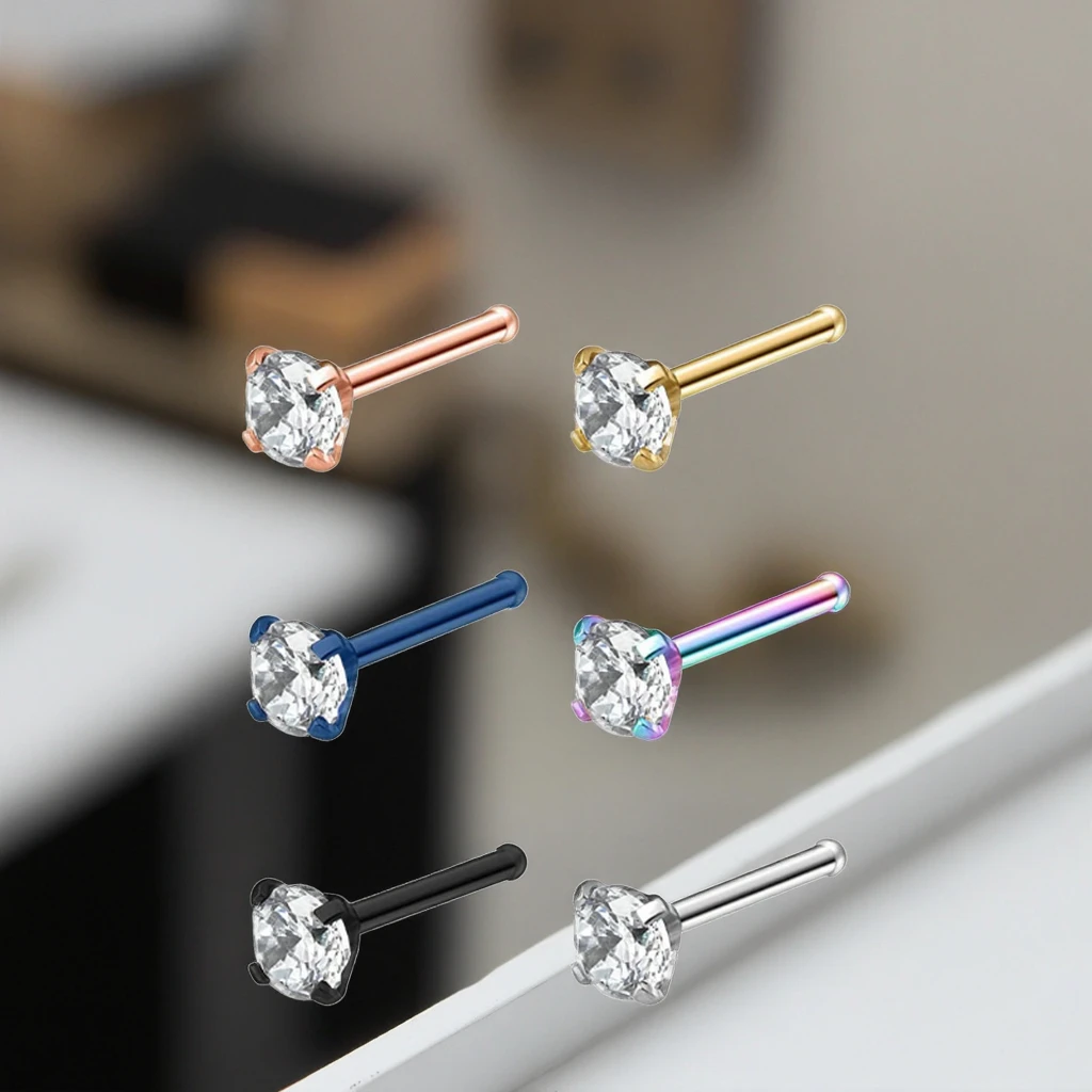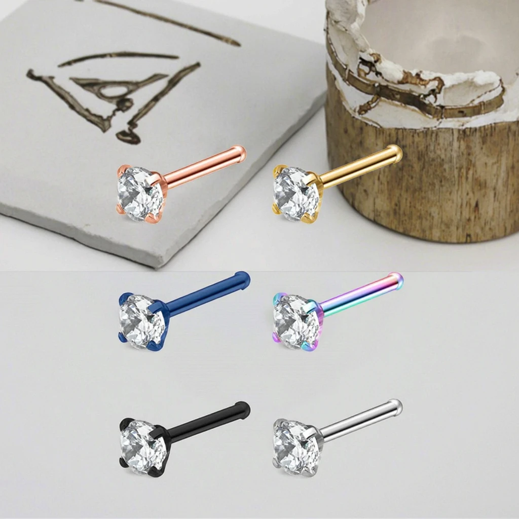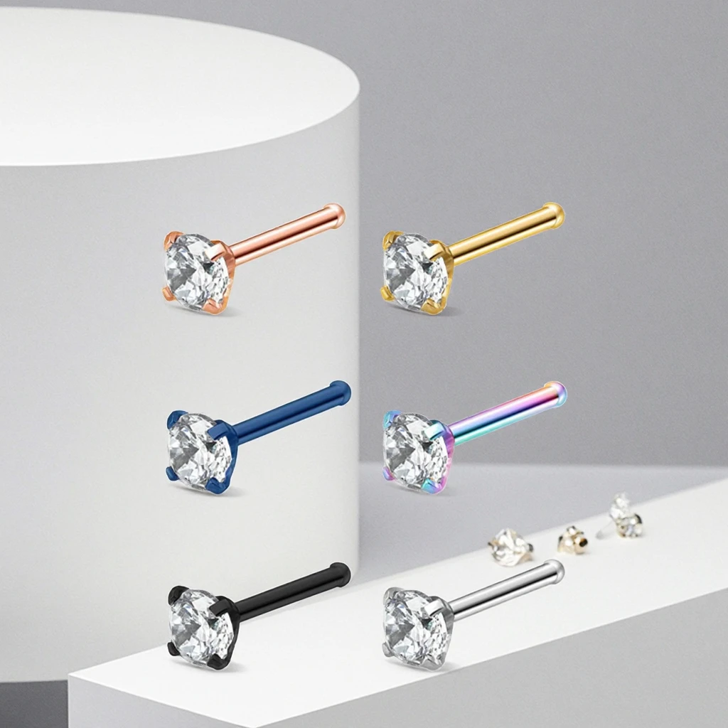 Xinfocus Hot Sale Stainless Steel Mixed Color Diamond Nose Stud Rings Sexy Nose Bone Pin Fashion Piercing Jewelry