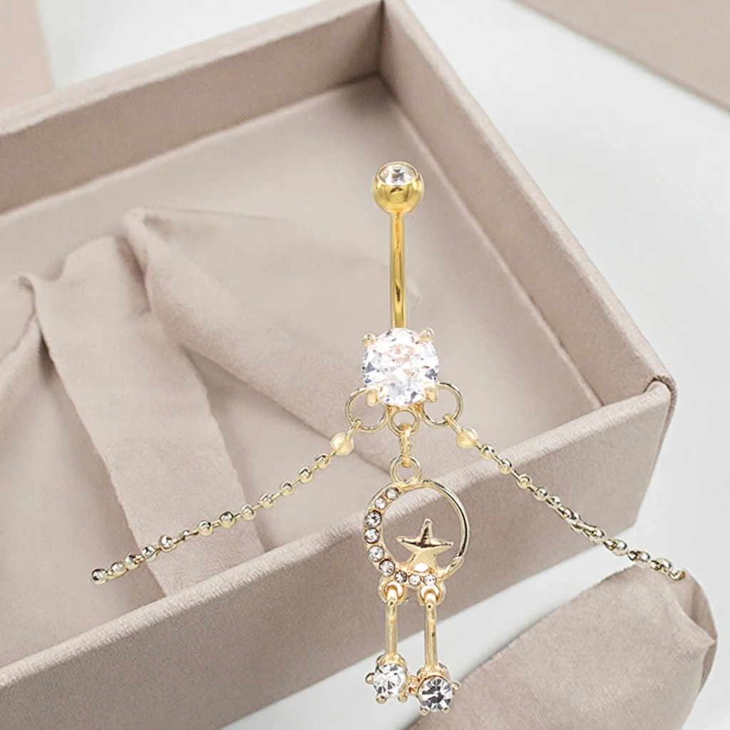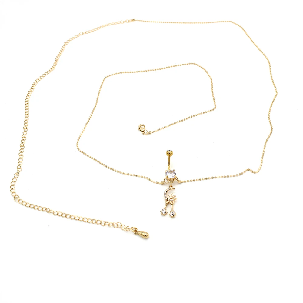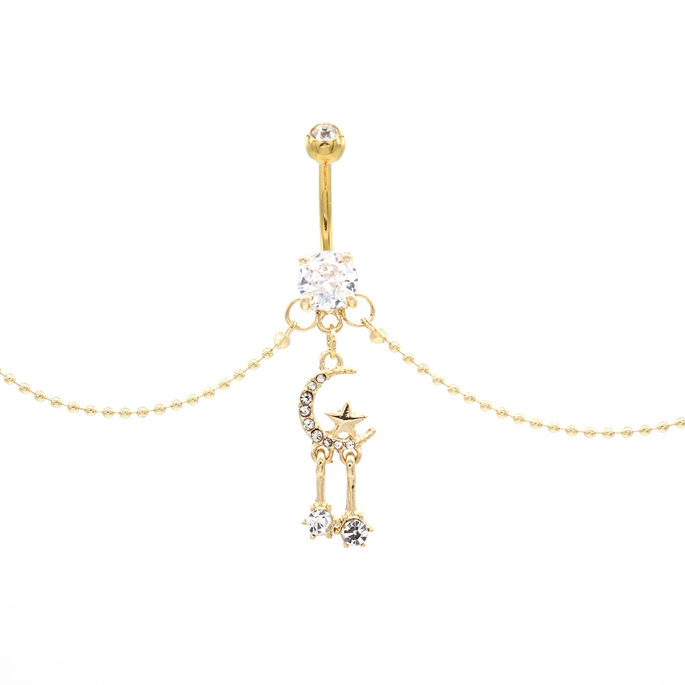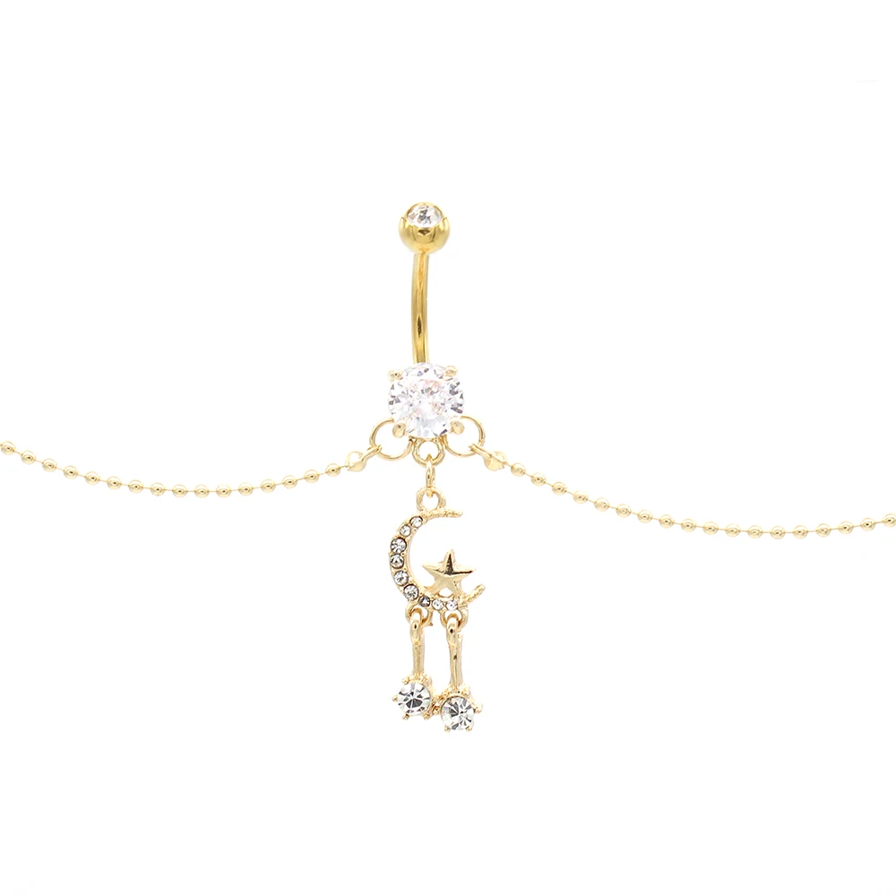 Xinfocus Hot Sale Moon Star Belly Chain Ring Stainless Steel Body Piercing Navel Bar Fashion Body Jewelry for Women Men