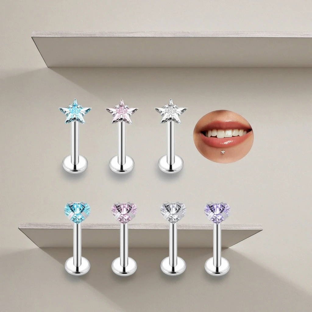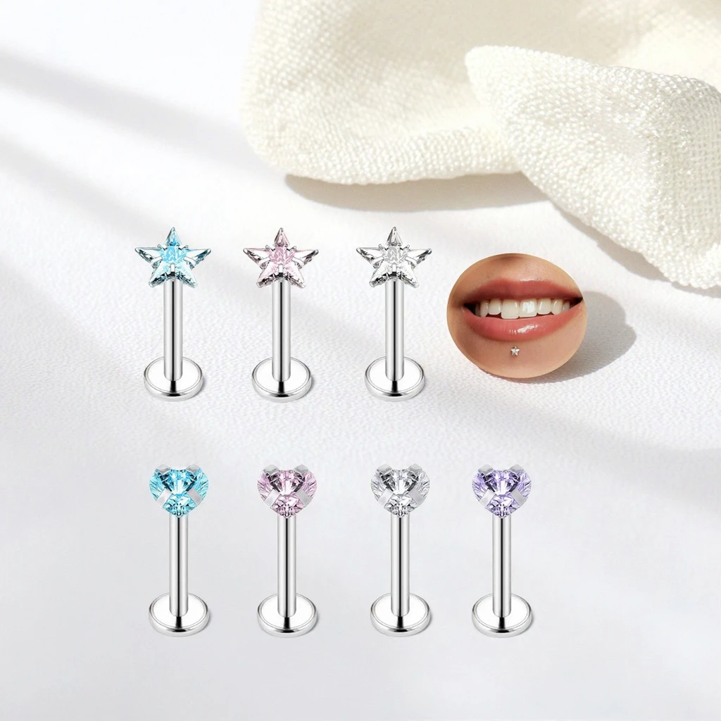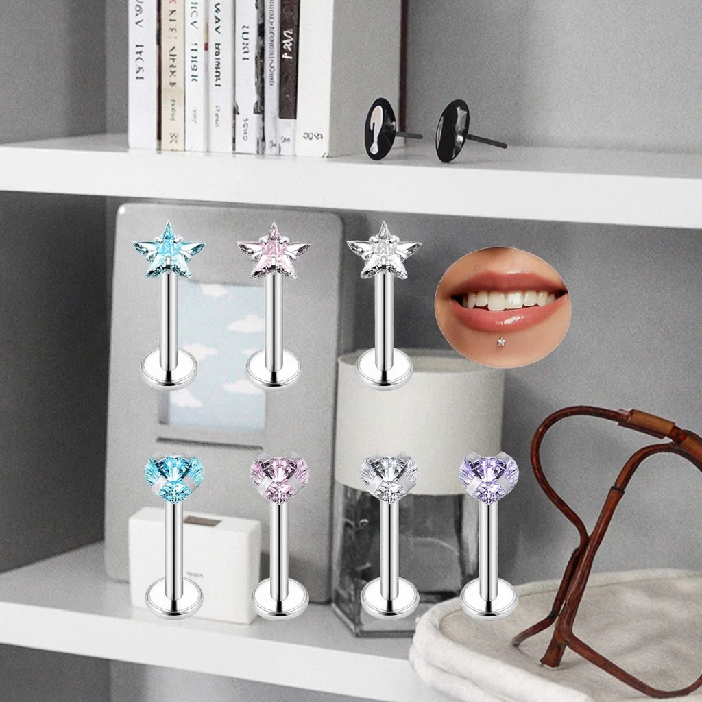 Xinfocus Hot Selling Lip Ring Star Heart Labret Stud Ring Stainless Steel Helix Piercing Flat Back Earring