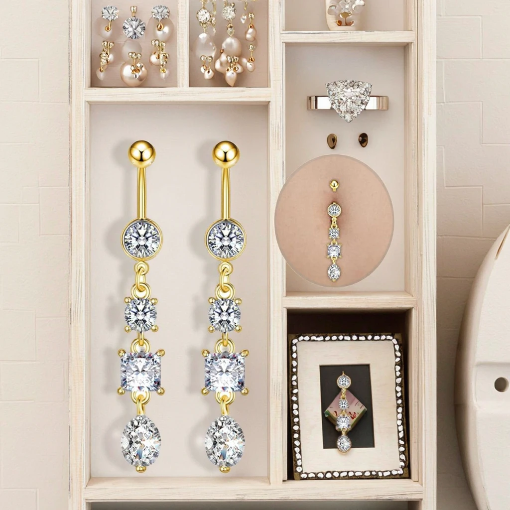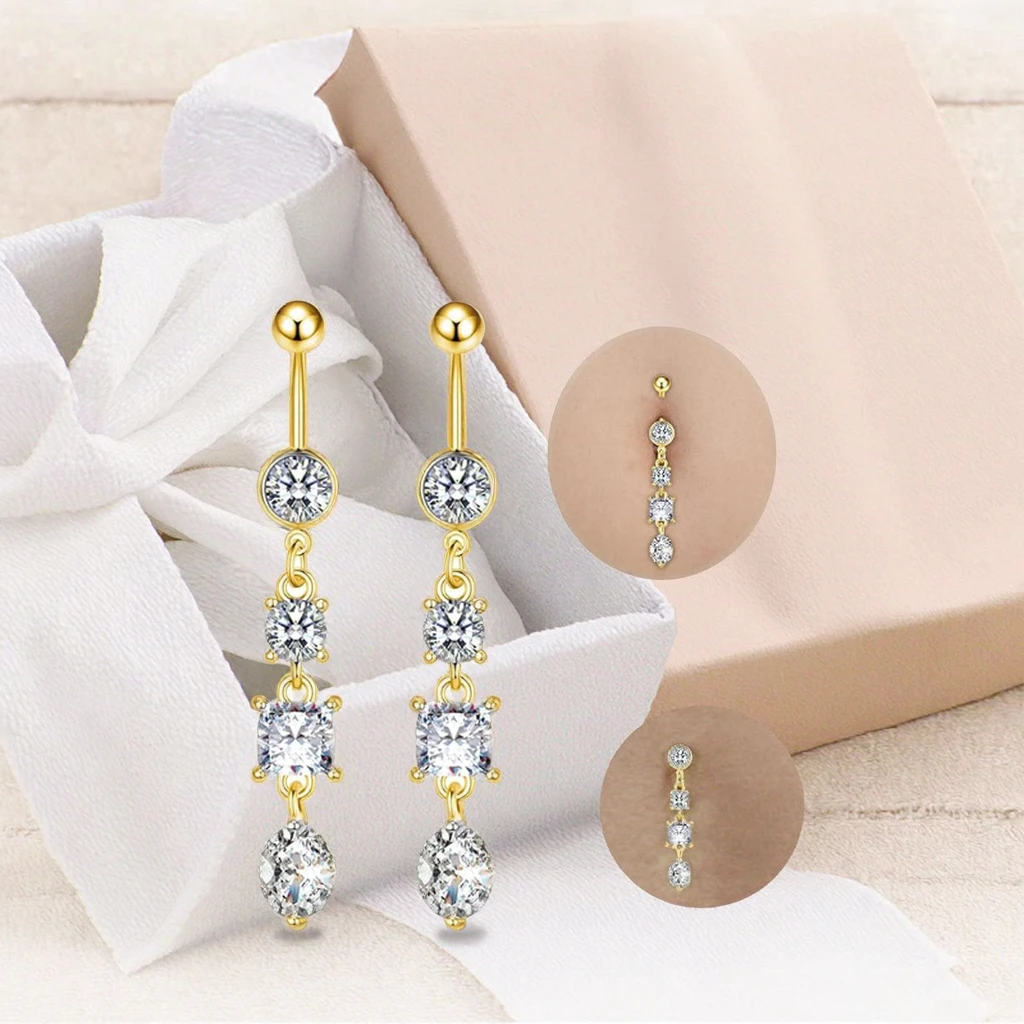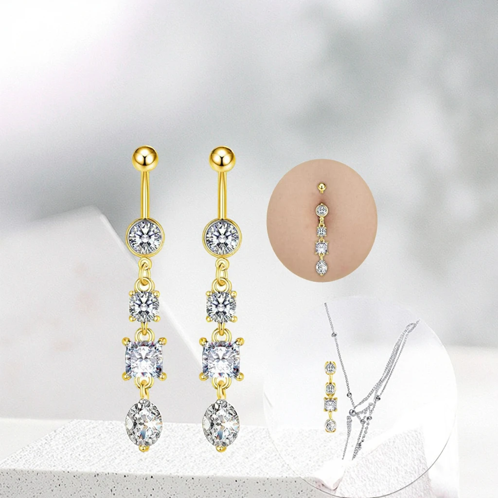 Fashion Piercing with Long Dangle Stainless Steel Belly Button Rings Unisex Body Jewelry Women Men Navel Piercing Jewelry