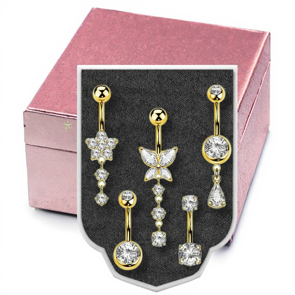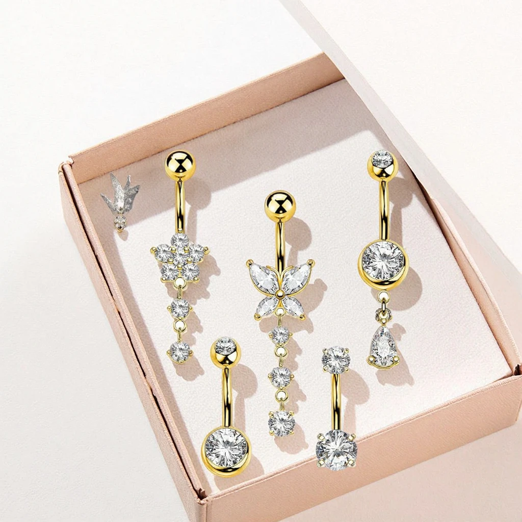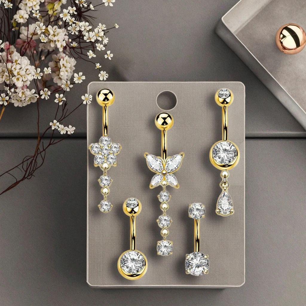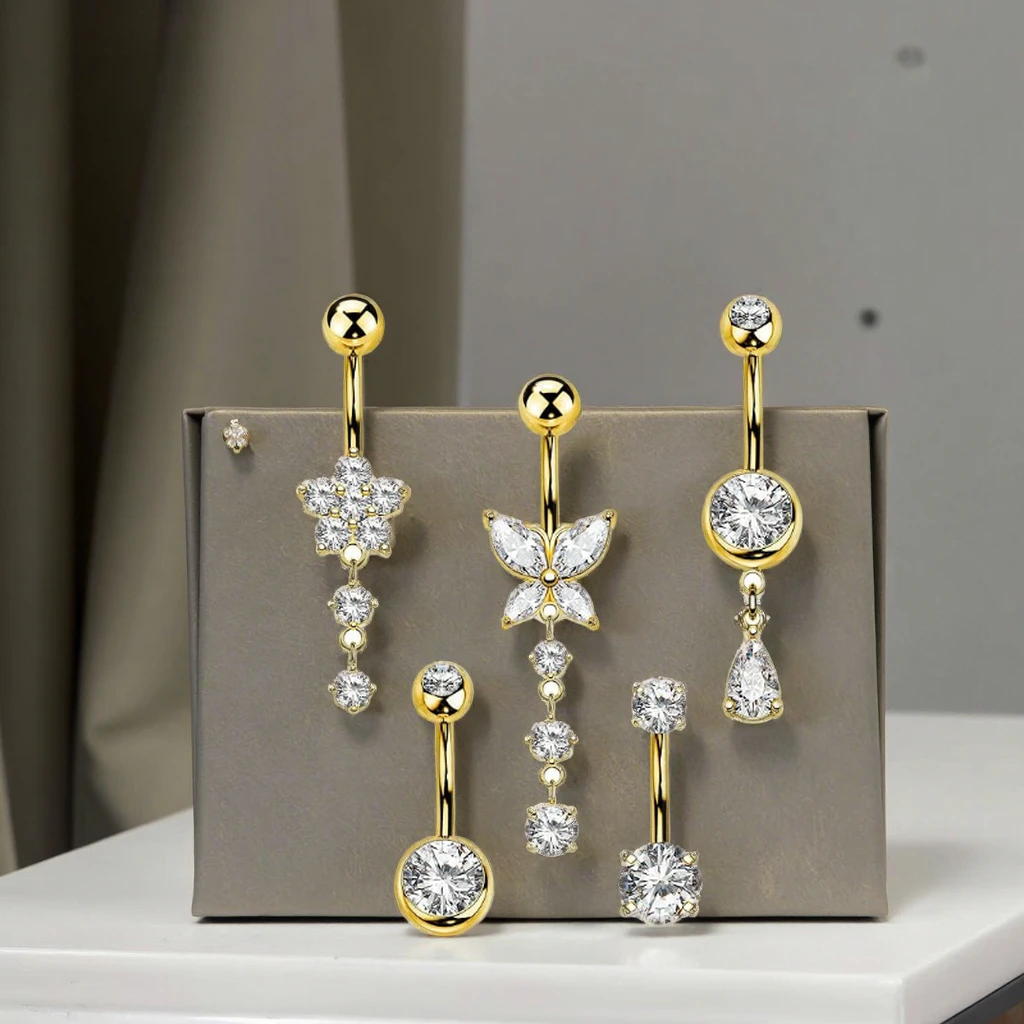 Gold Plated Flower Zirconia Dangle Belly Button Rings Fashion Piercing Xinfocus Stainless Steel Navel Piercing Jewelry