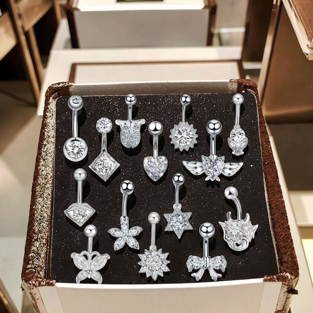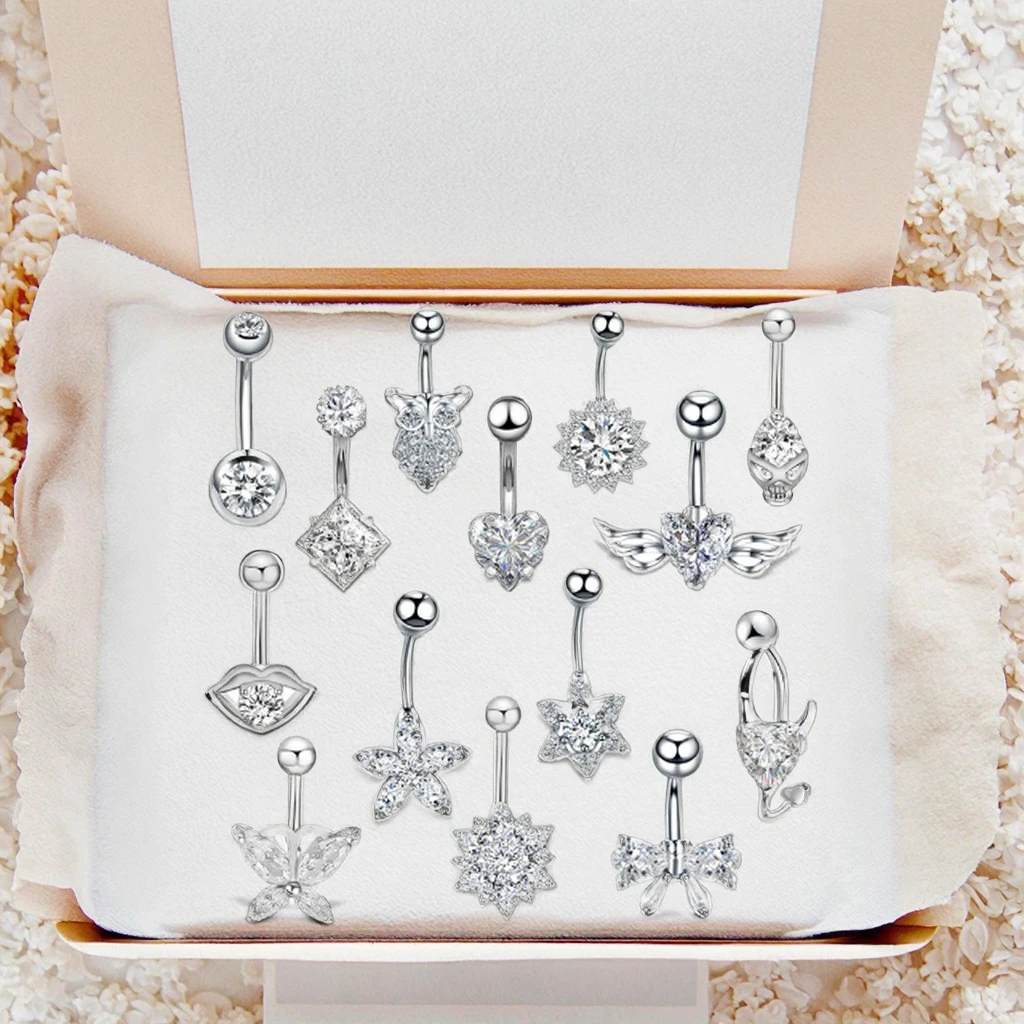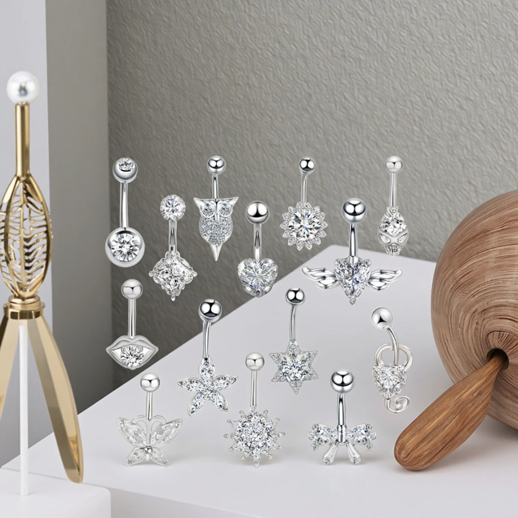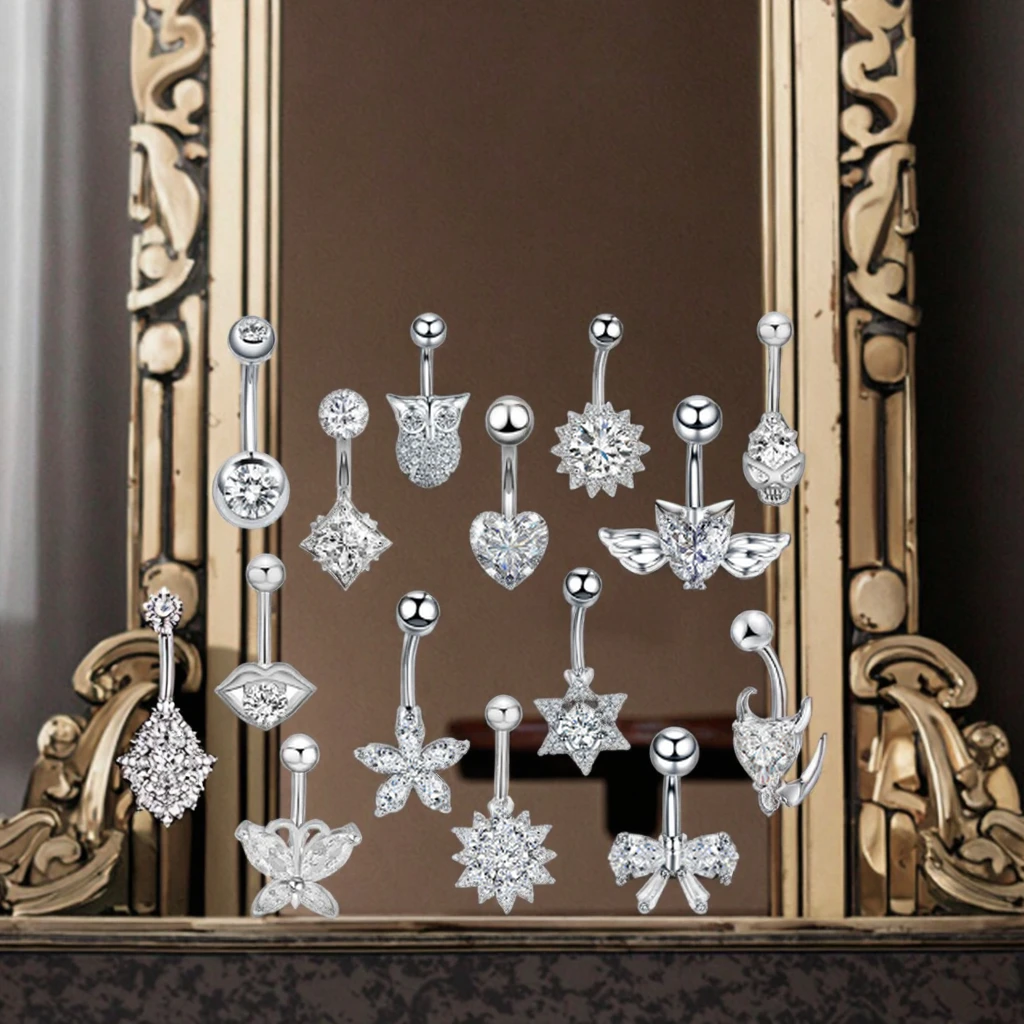 Sexy Navel Belly Button Ring Double Round Clear Ziircon Stainless Steel Navel Piercing Fashion Body Jewelry