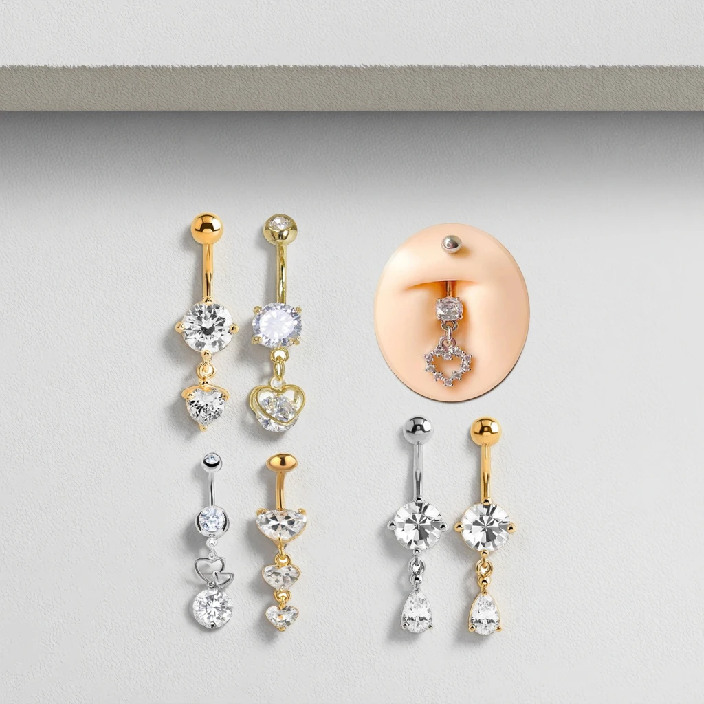 Crystal Heart Belly Button Rings Fashion Women Piercing New Design Stainless Steel Body Jewelry Wholesale