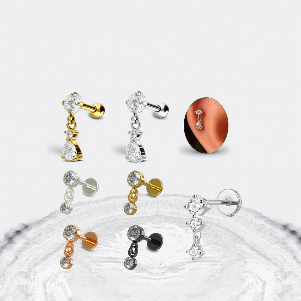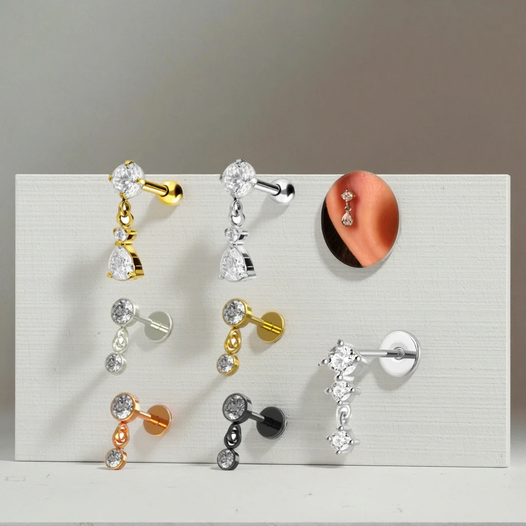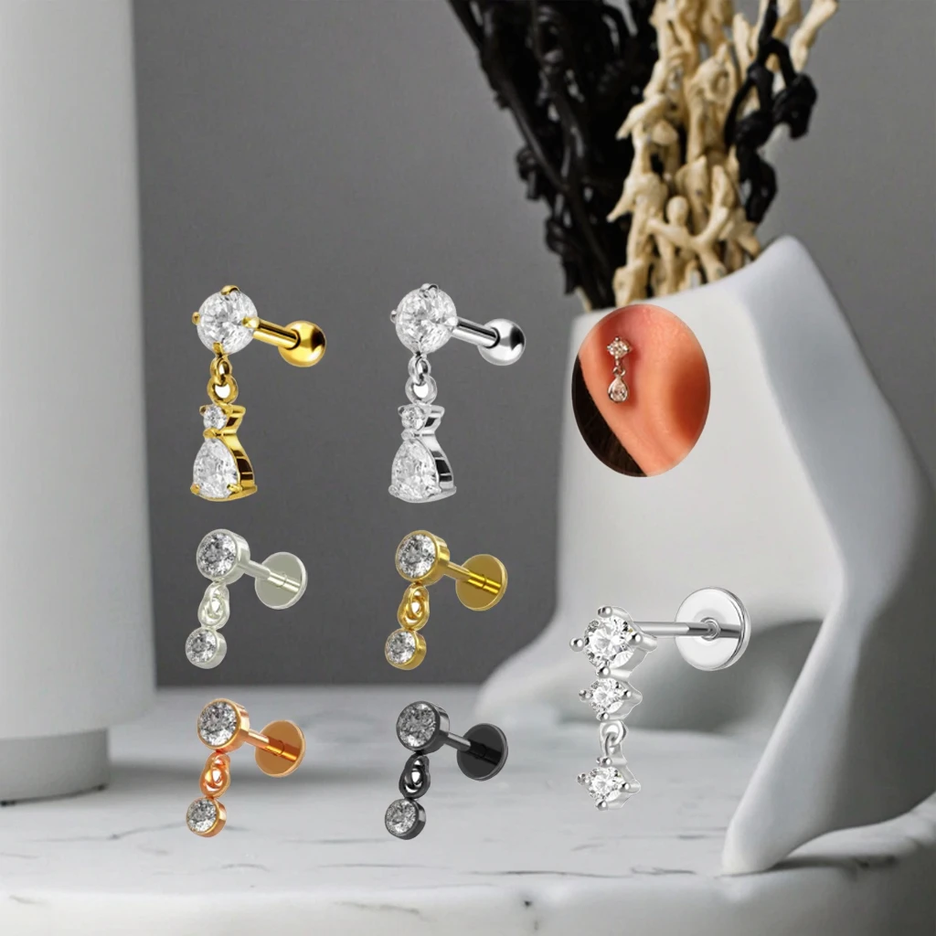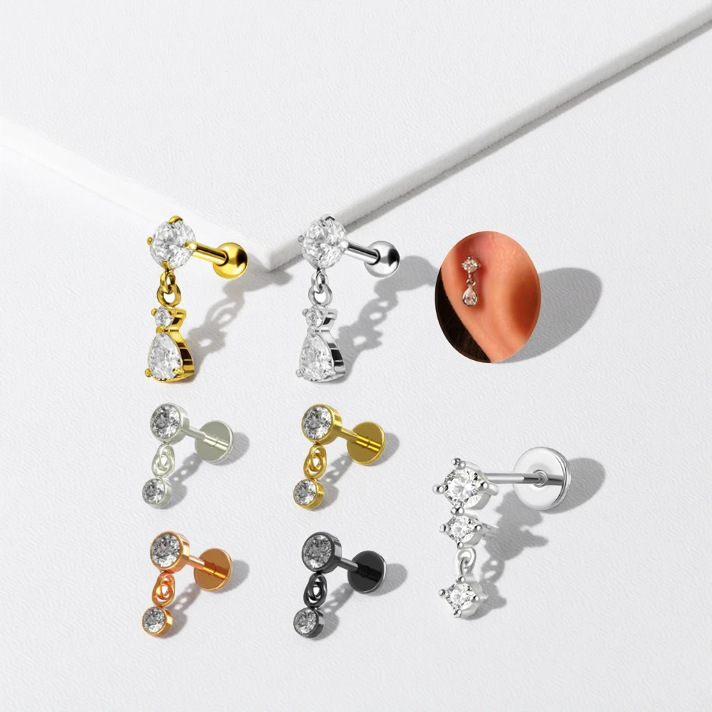 High Quality Flat Back Earring Fashion Women Piercing Stainless Steel Dangle Tragus Cartilage Ear Stud Ring