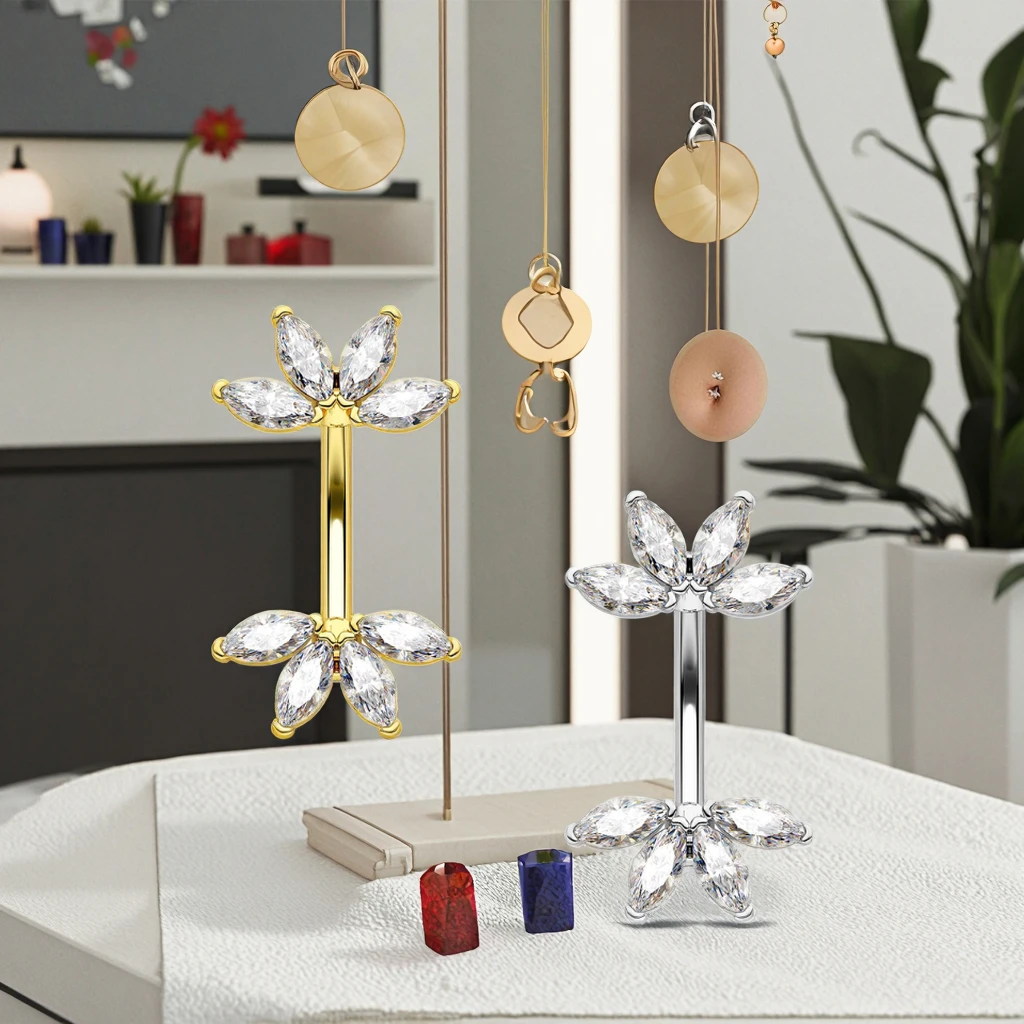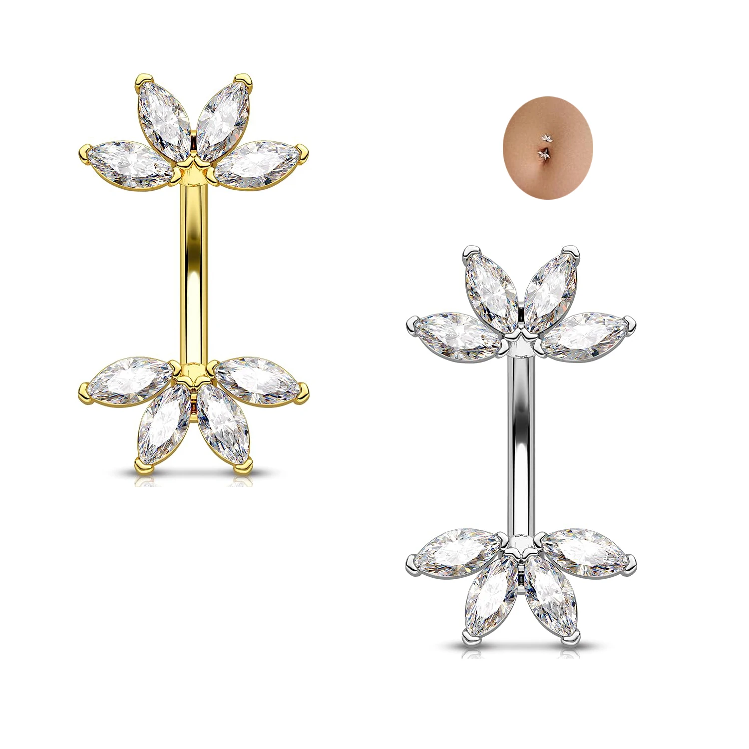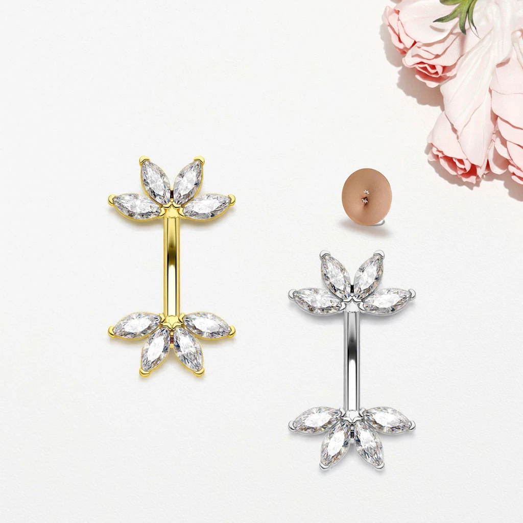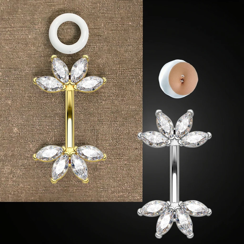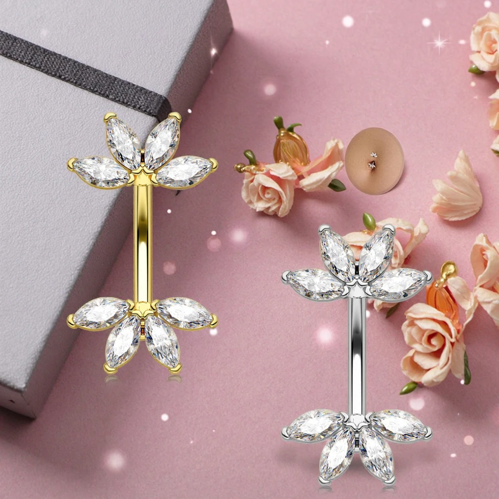 Trendy Design Marquise CZ Belly Button Ring Stainless Steel Body Piercing Jewelry Navel Fashion Jewelry for Women Men