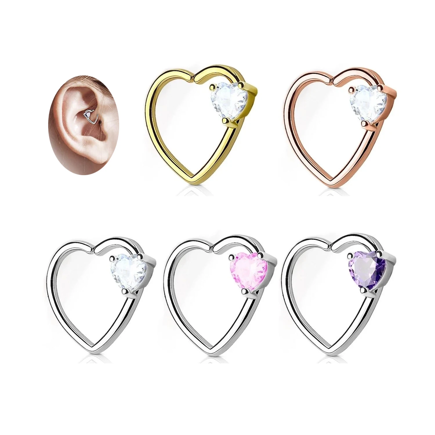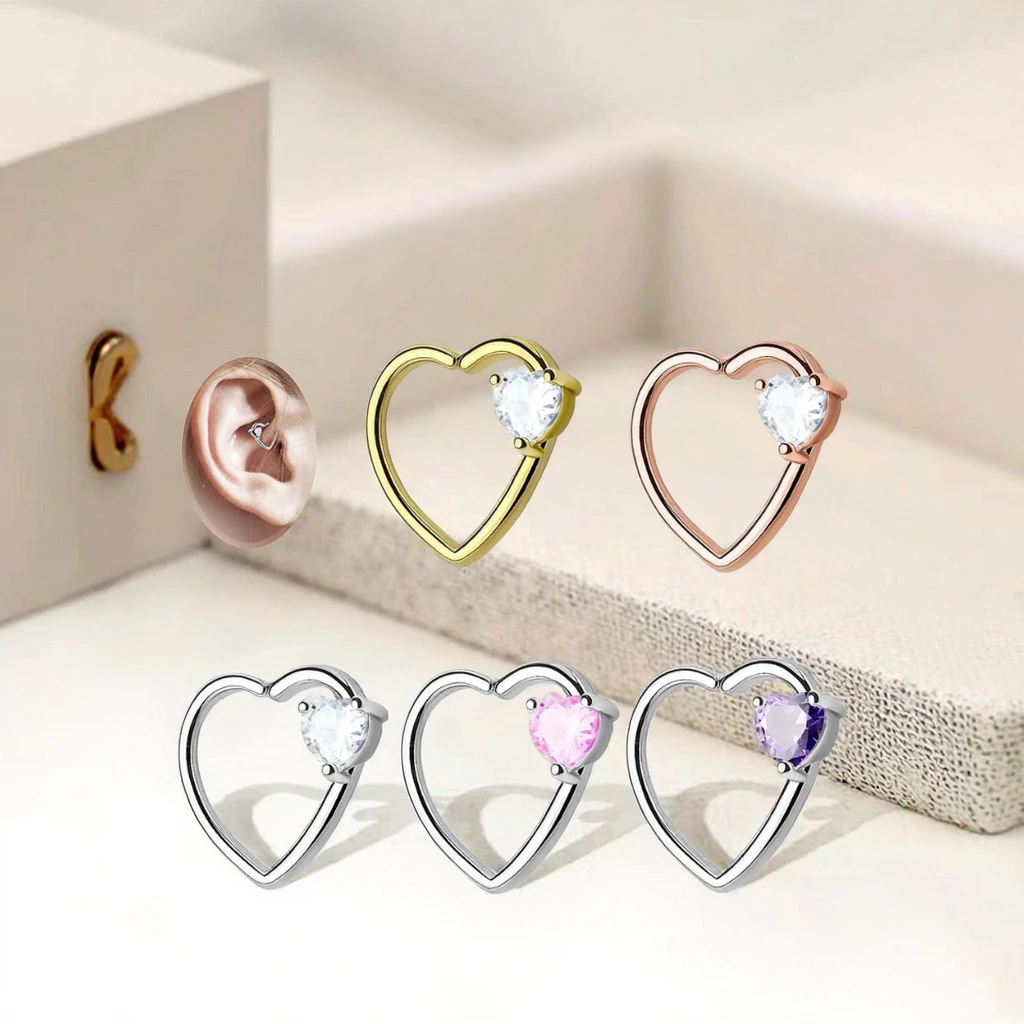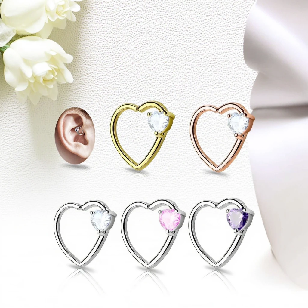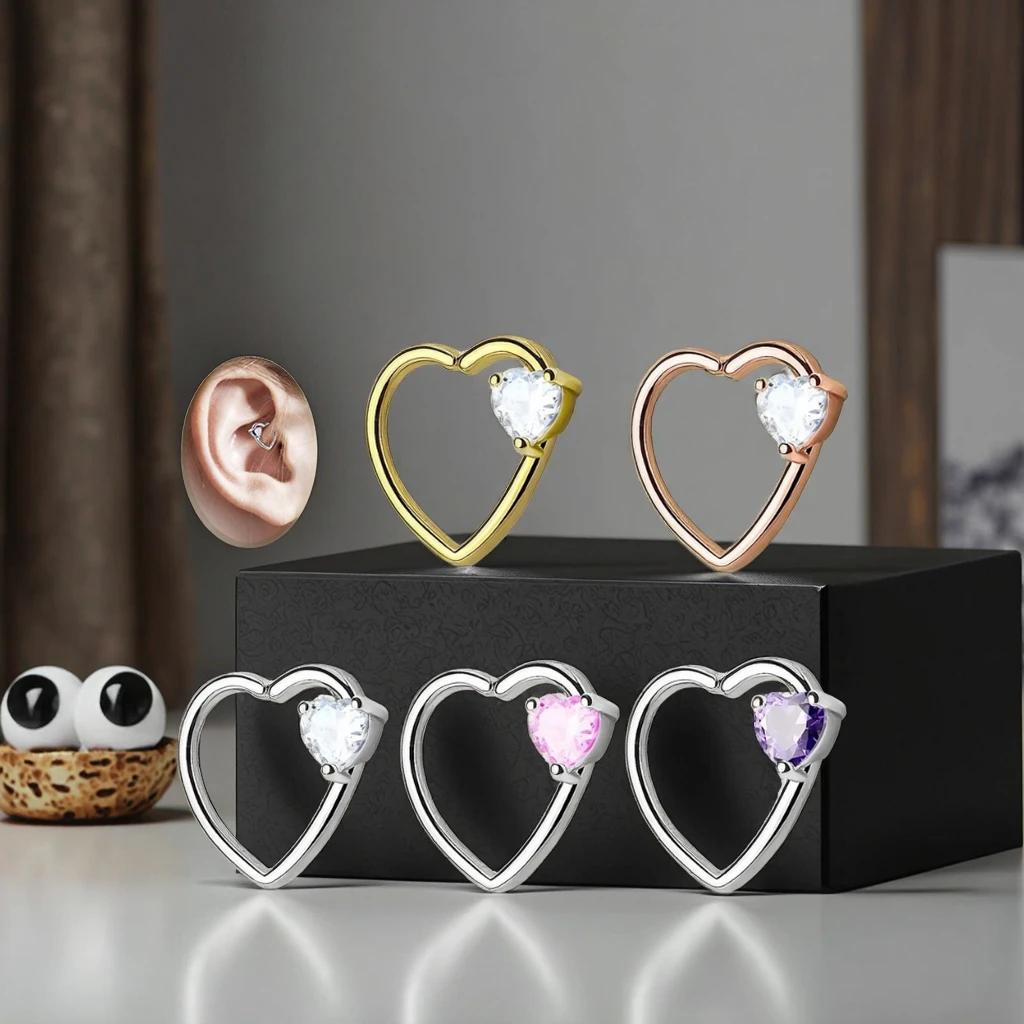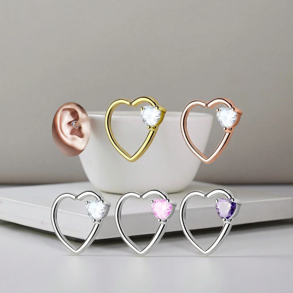 Xinfocus Stainless Steel Heart Ear Helix Daith Earring Hoop Hinged Segment Ring Fashion Body Jewelry for Women Men