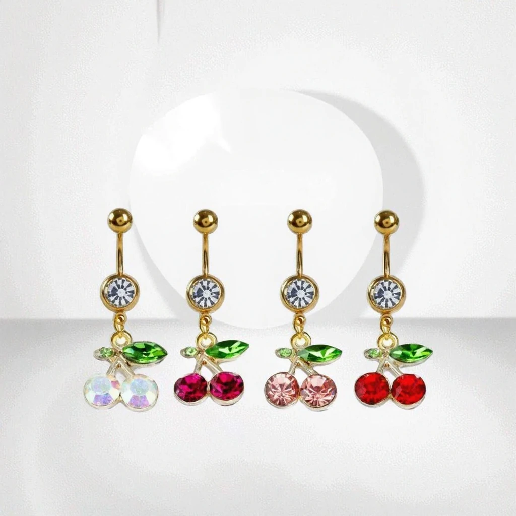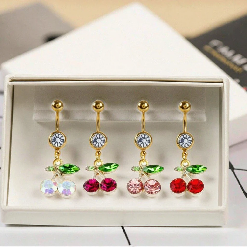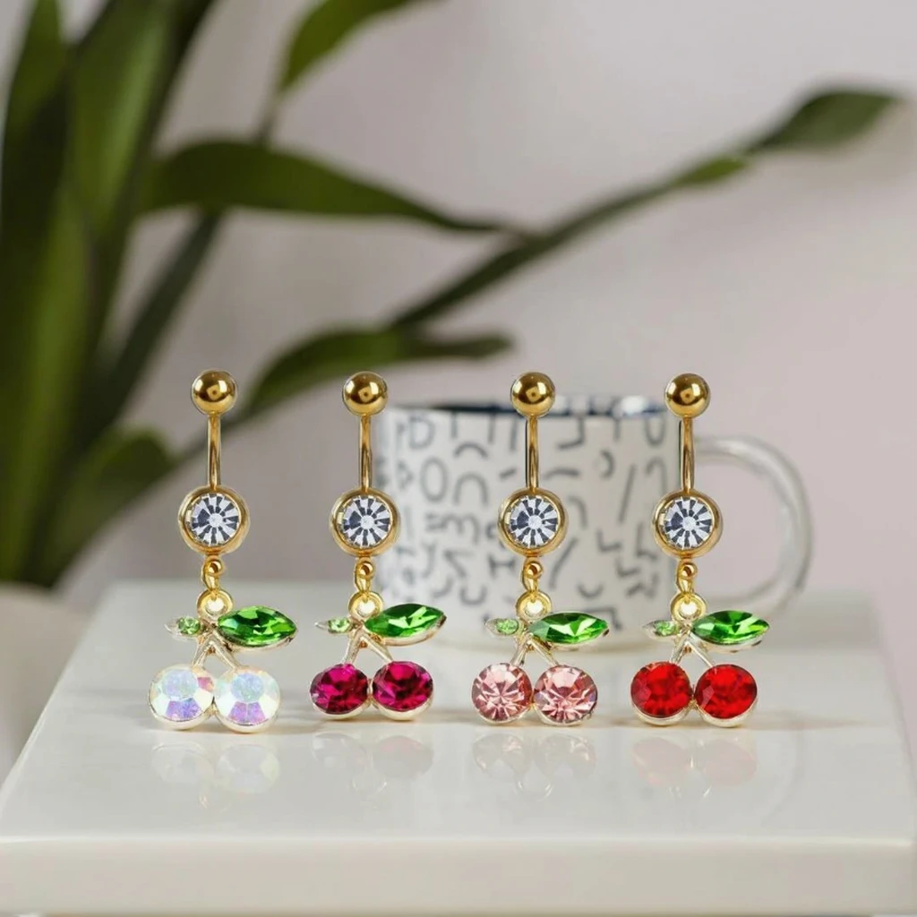 Xinfocus Navel Belly Piercing for Women Stainless Steel Crystal Cherry Body Piercing Jewelry