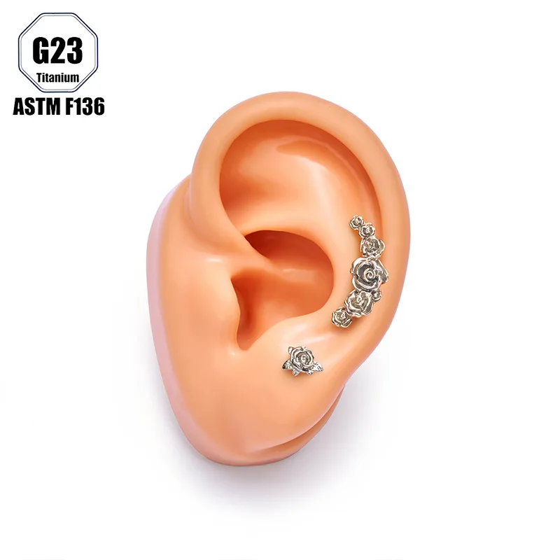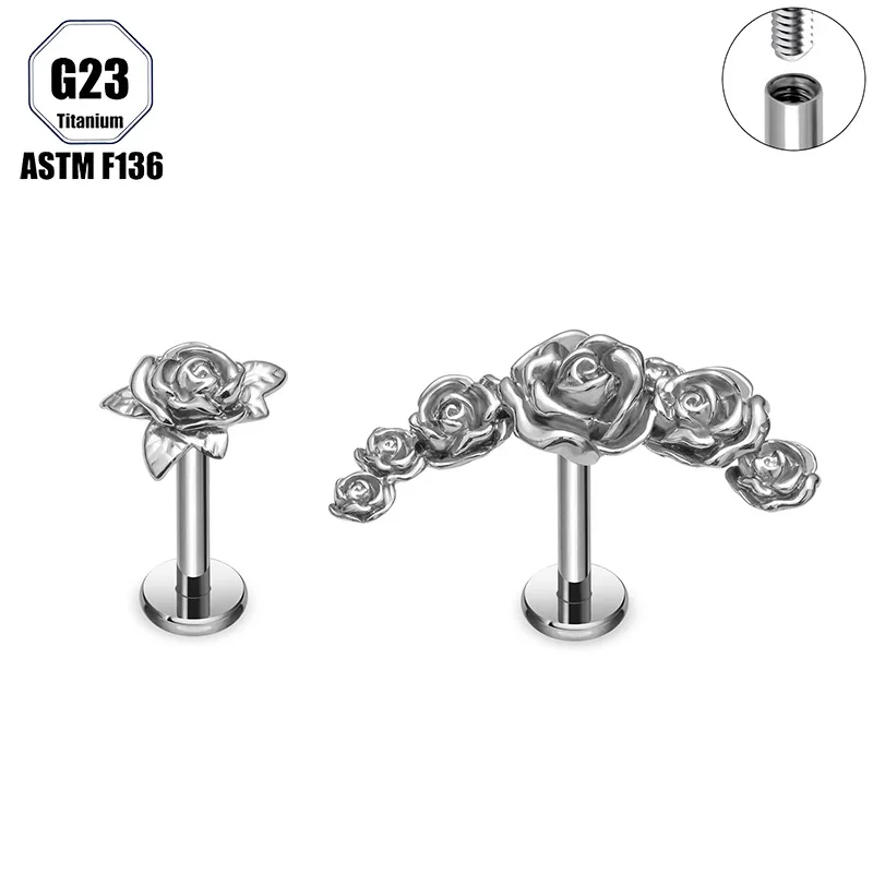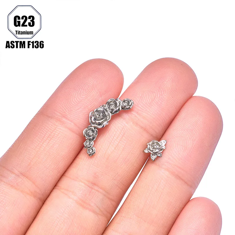 G23 Titanium 16G Rose Ear Studs Flat Back Flower Shape Earrings Zircon Women's Gold Lip Nose Tragus Helix Lobe Piercing Jewelry
