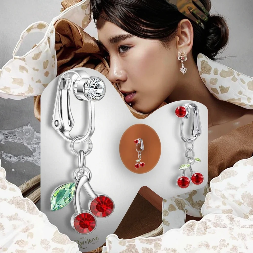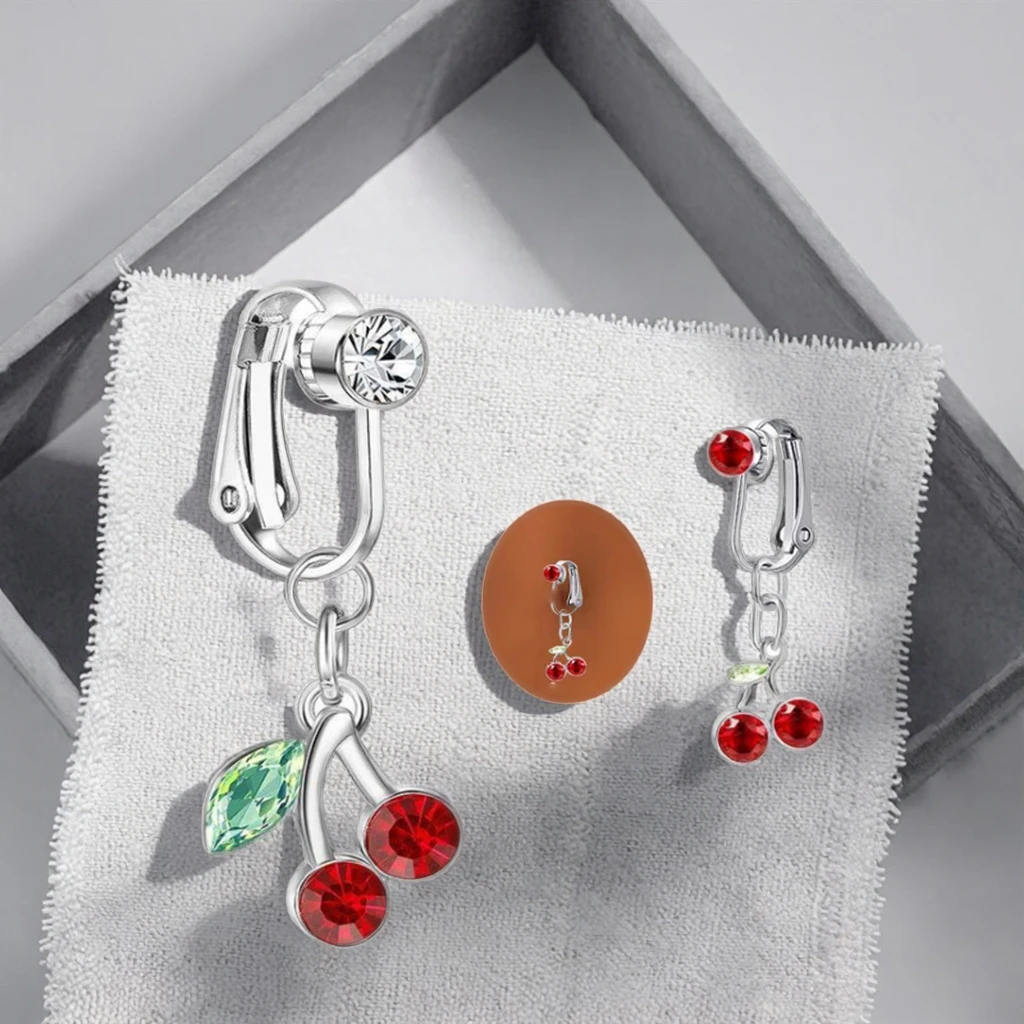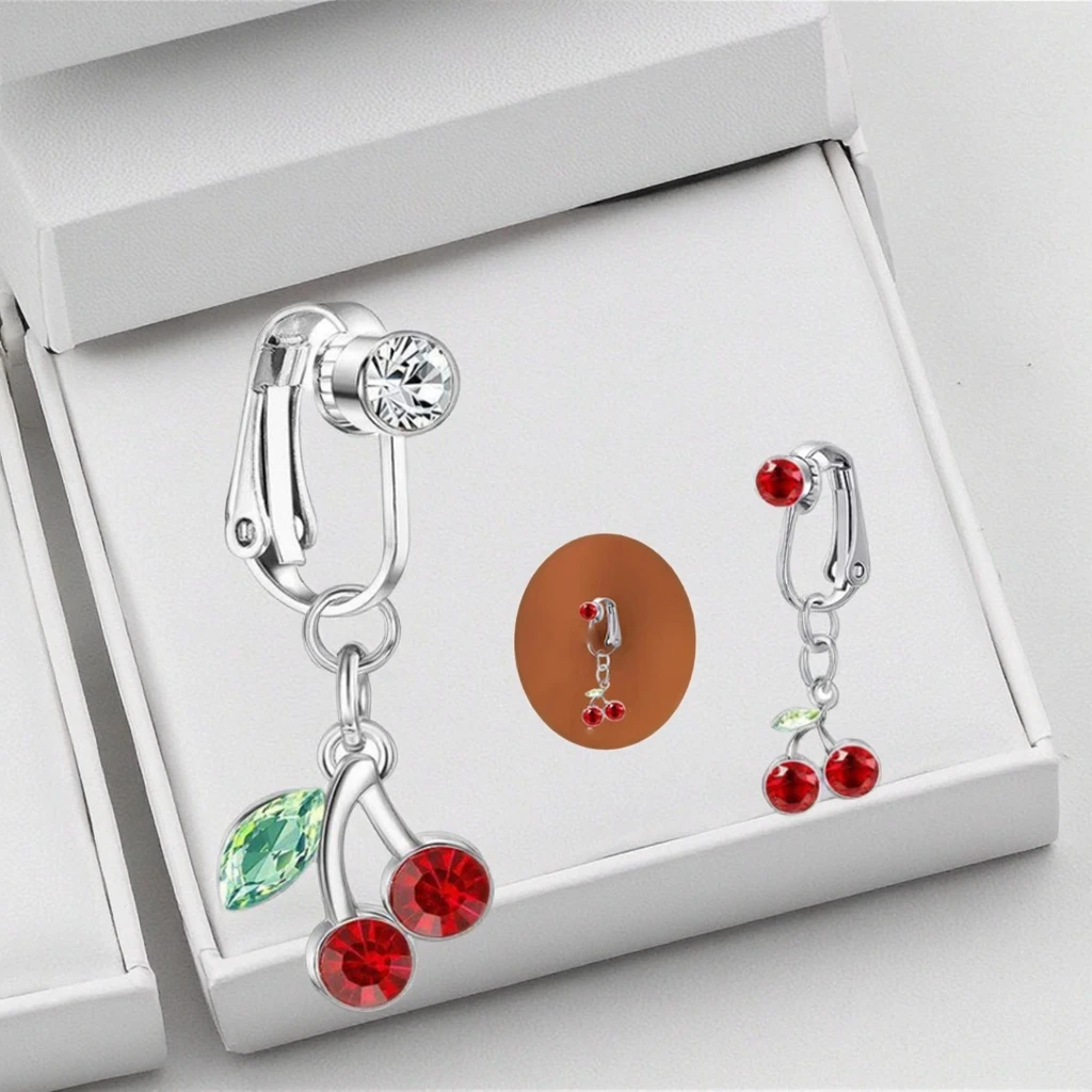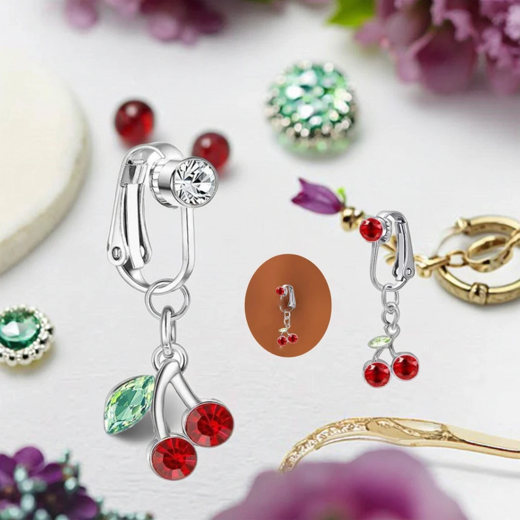 Fake Navel Piercing Jewelry Cherry Belly Piercing Clip on Belly Ring Non Piercing Body Jewelry for Women