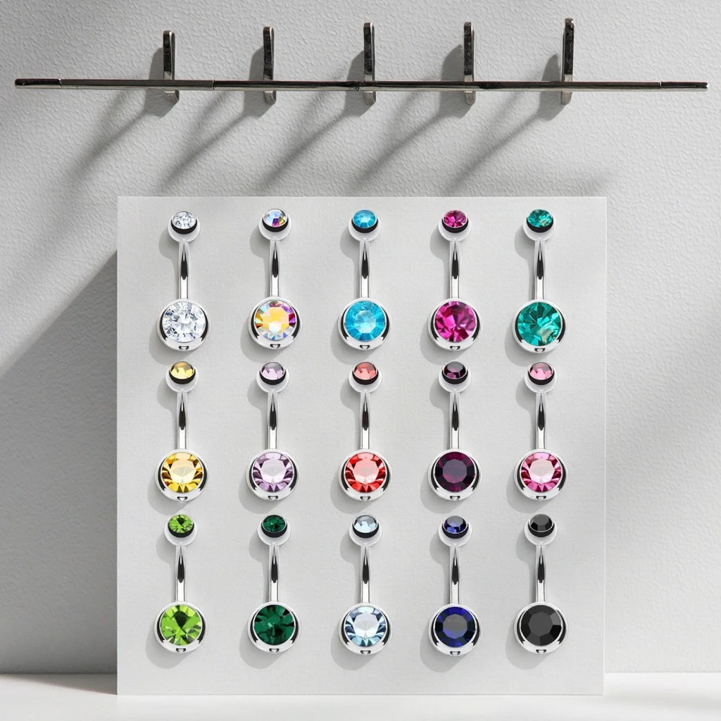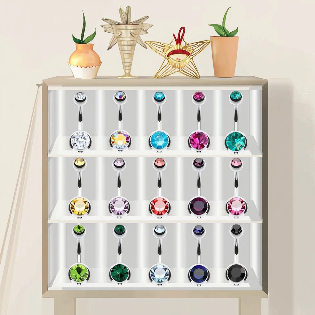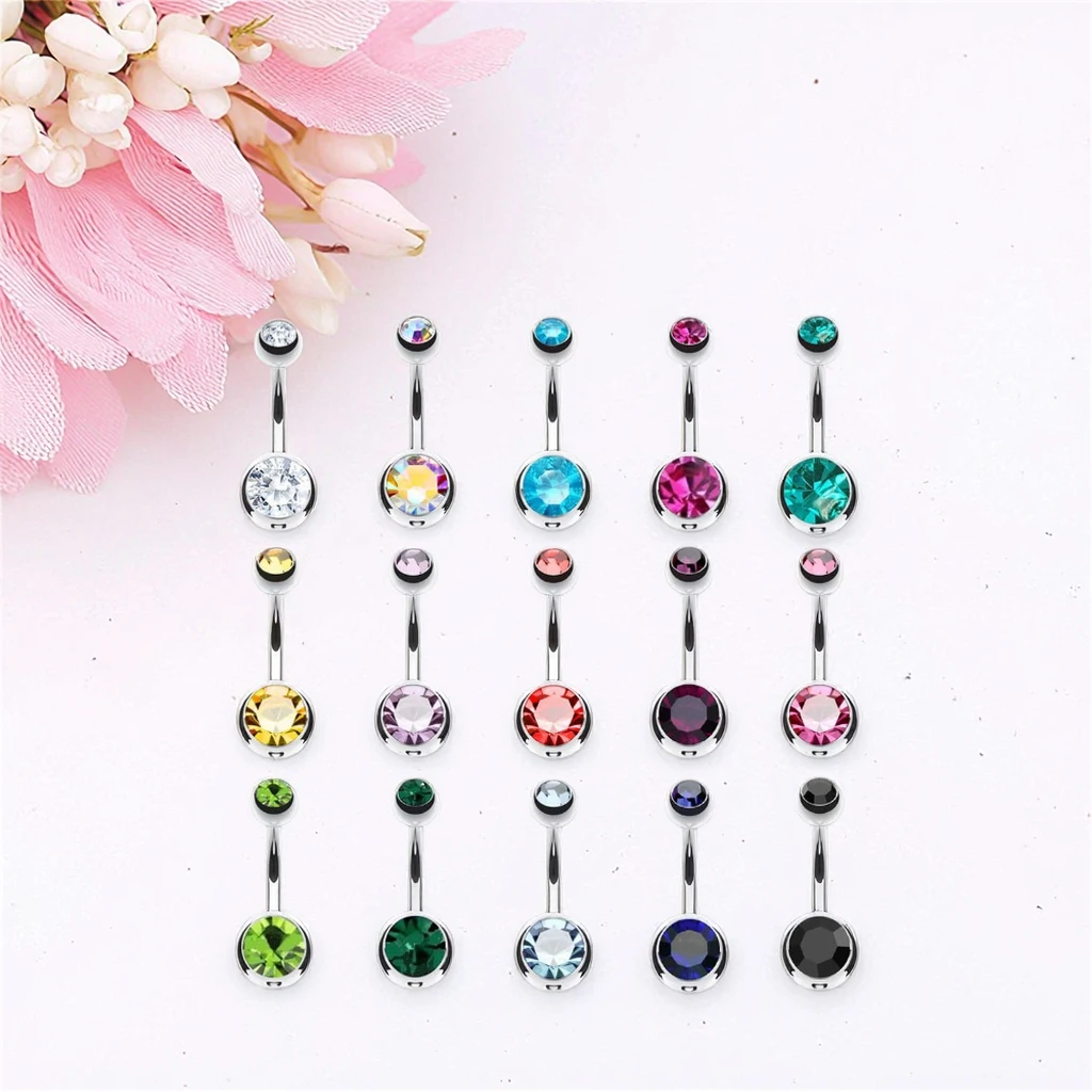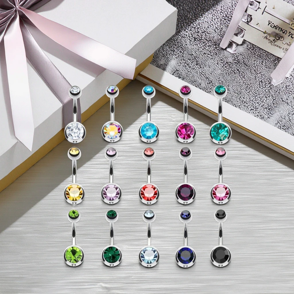 XInfocus Body Jewelry-Double Gem Belly Button Ring 14G Stainless Steel Navel Ring for Engagement Party Wedding Anniversary Gift