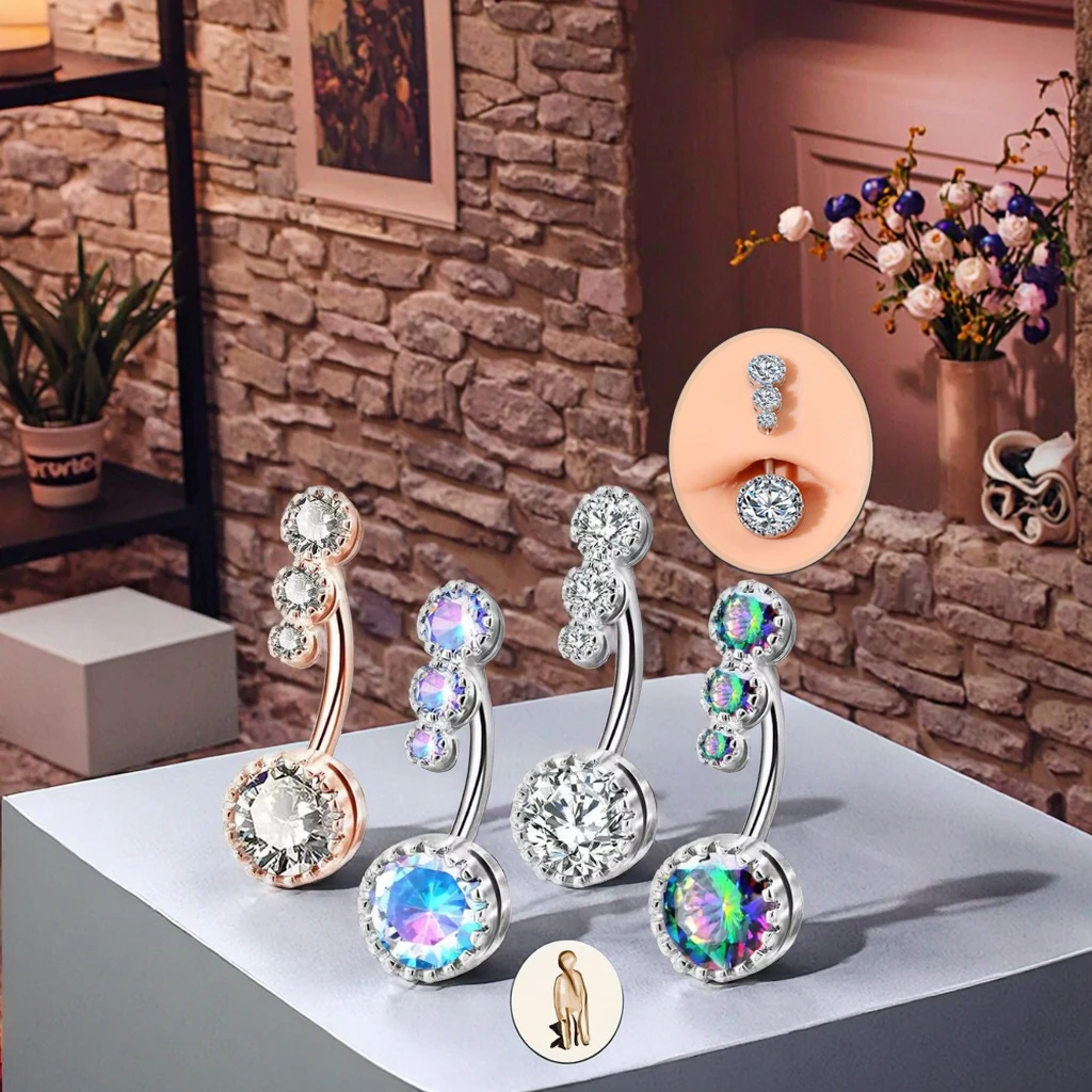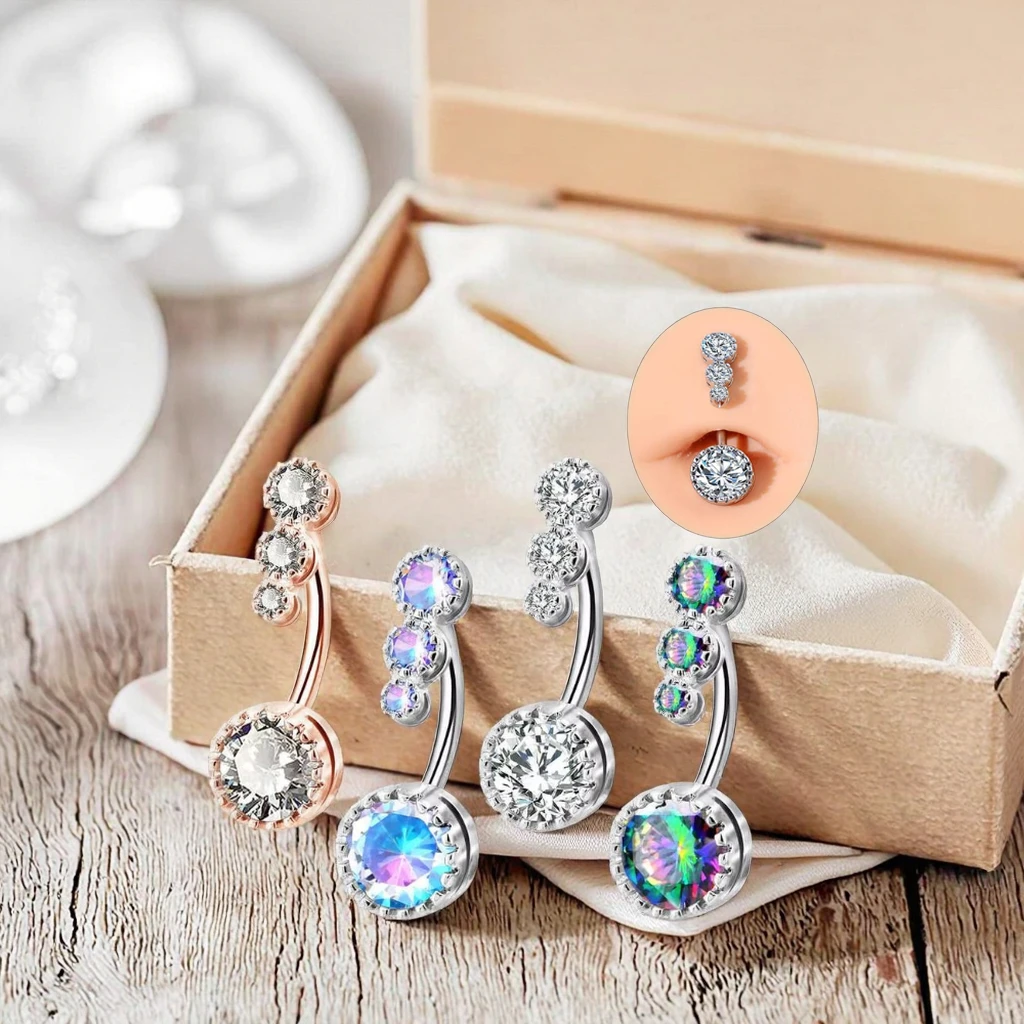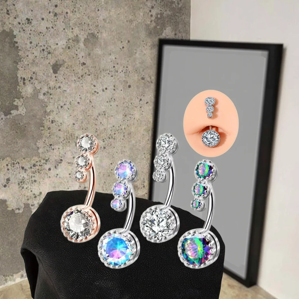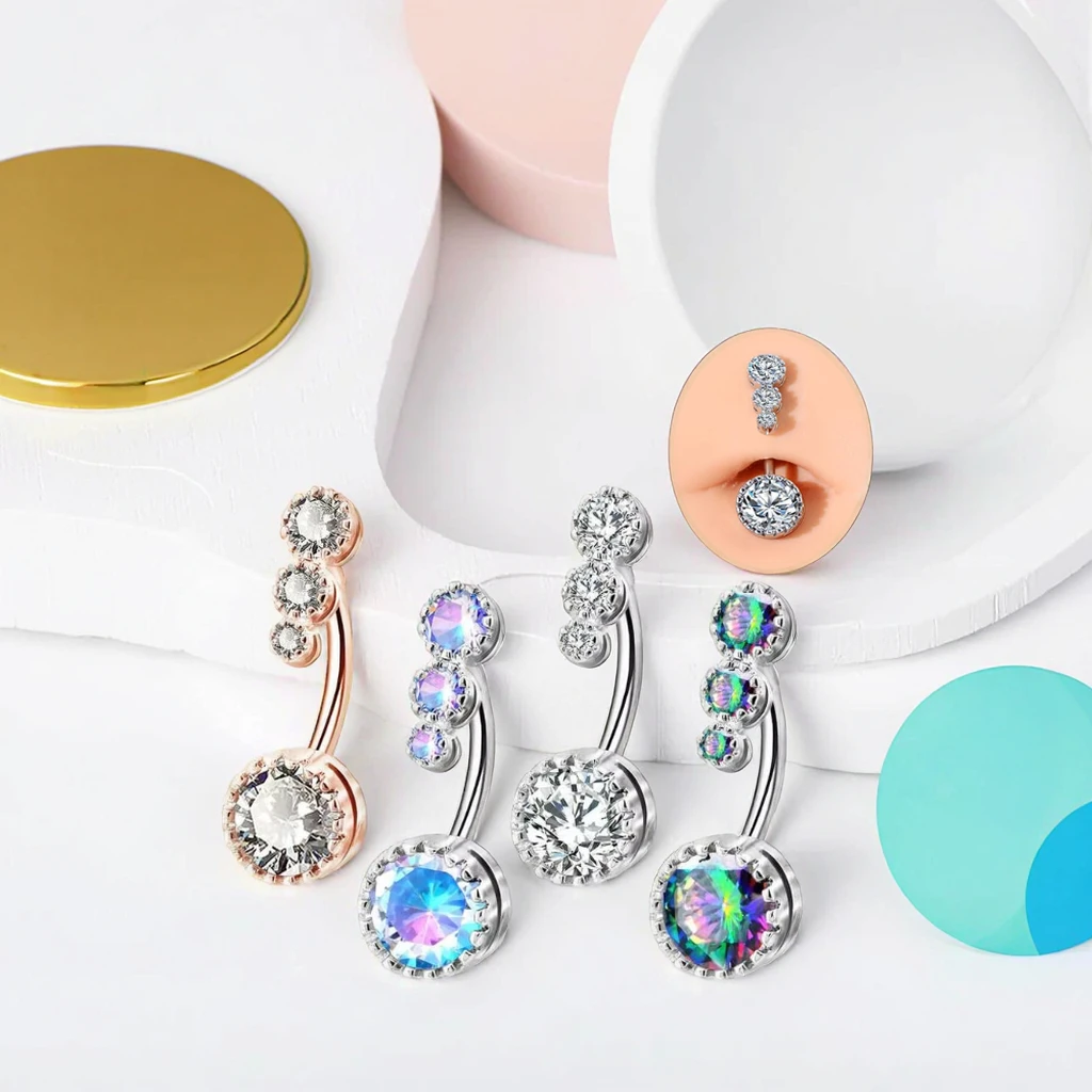 New Trendy CZ Belly Rings Non Dangle Stainless Steel Navel Bars With Gold Plating Body Jewelry for Women Men