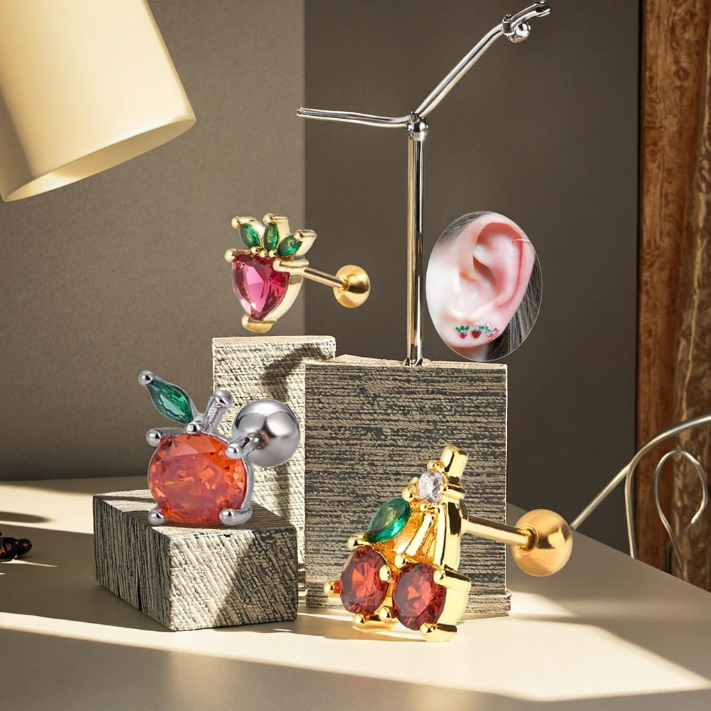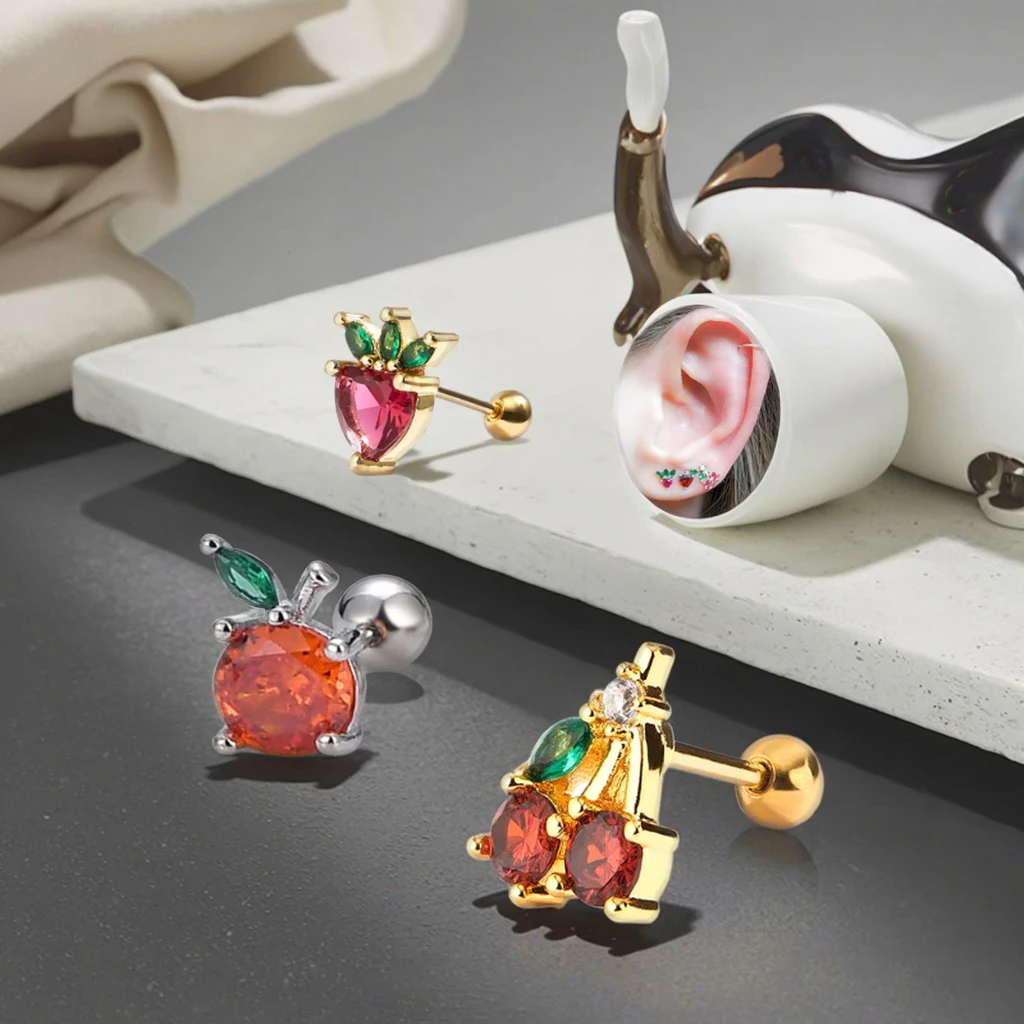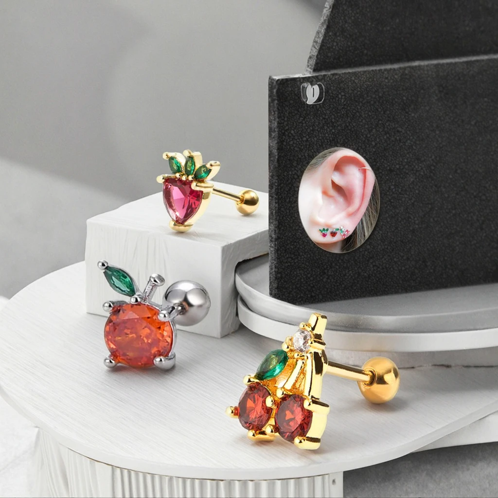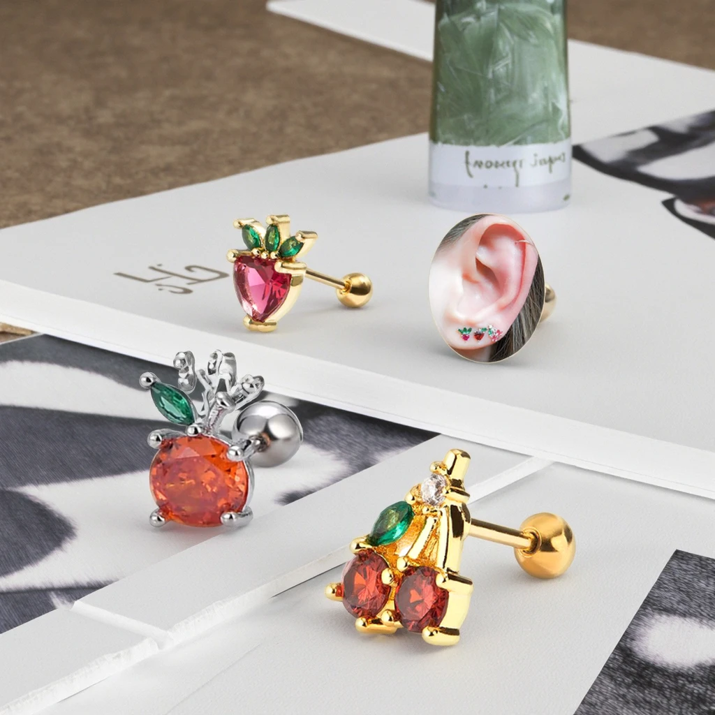 Fashion Small Fruit Piercing Helix Earring for Women Men Xinfocus New Design Sexy Ear Piercing Jewelry Cherry Cartilage
