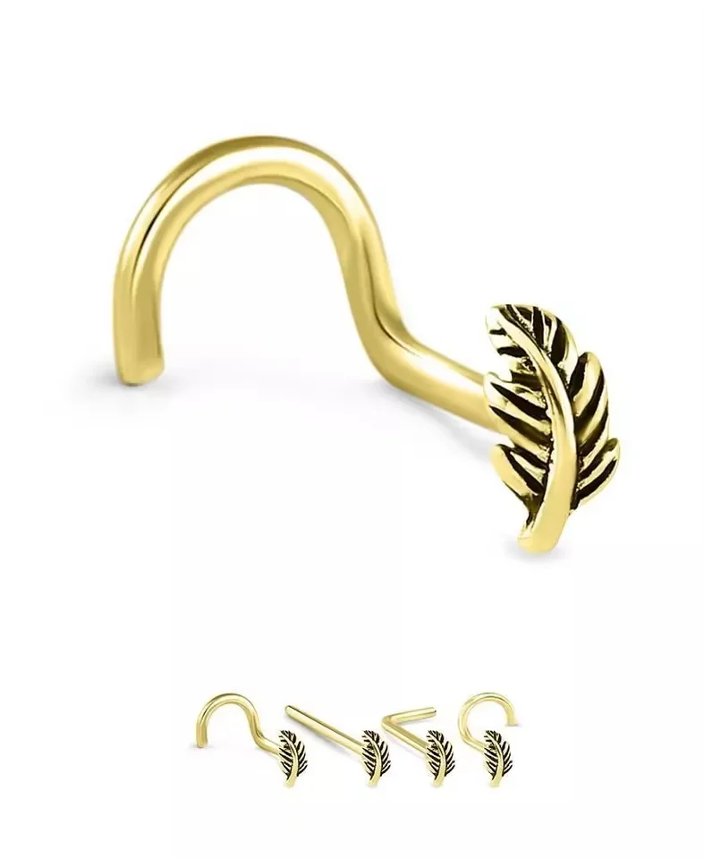 Xinfocus Nose Piercing Stainless Steel Gold Plated Nose Stud Ring Pot Leaf Nose Piercing Fashion Body Jewelry for Women