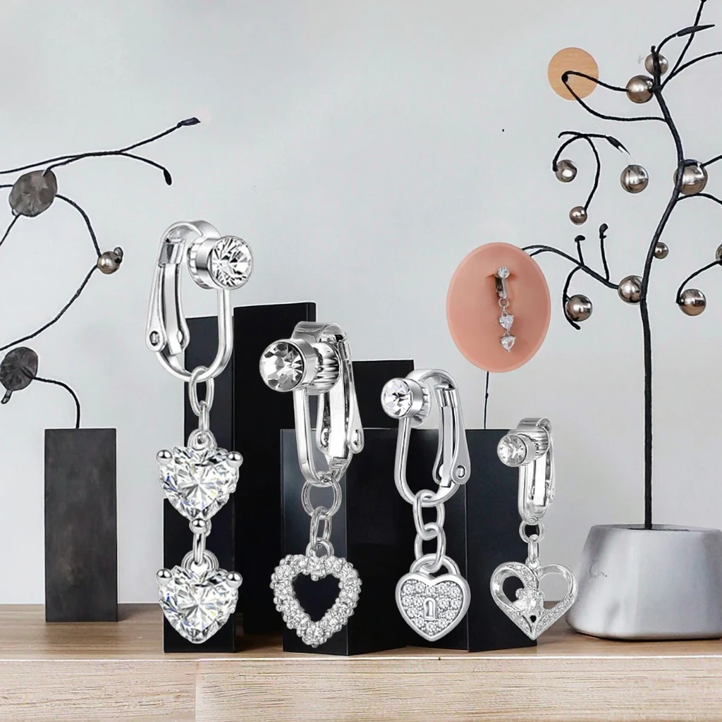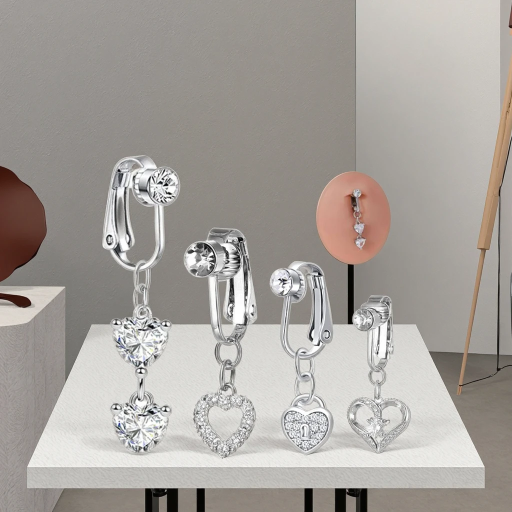 Xinfocus 2026 New Trendy Fake Heart Belly Piercing False Body Jewelry Body Fake Navel Piercing Jewelry Non Piercing