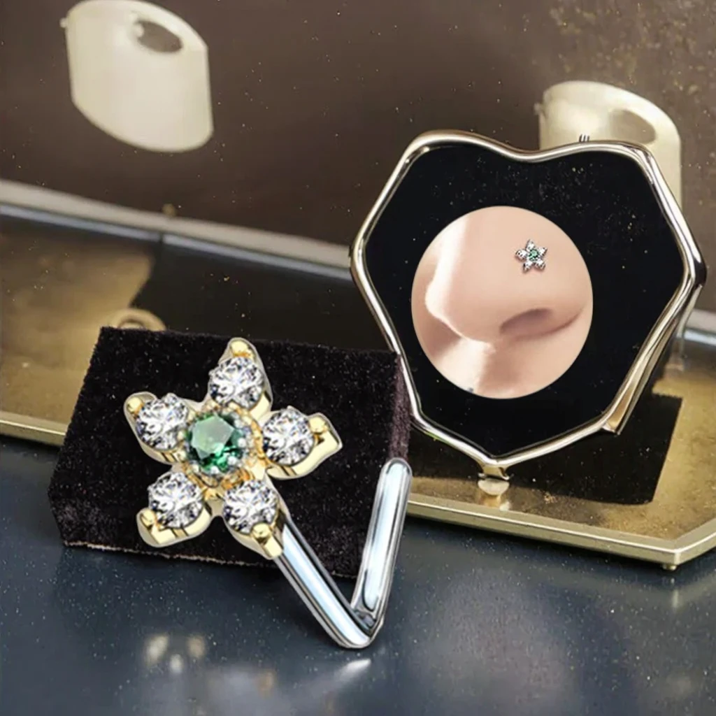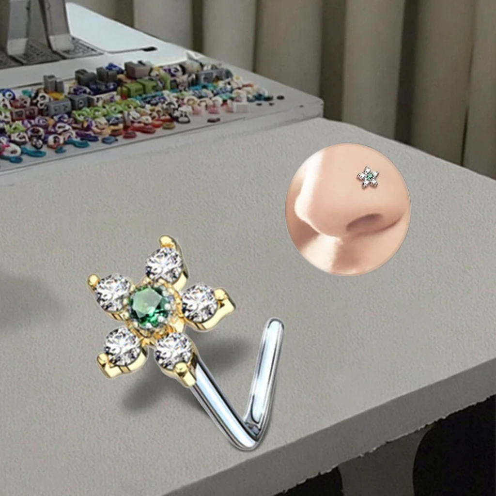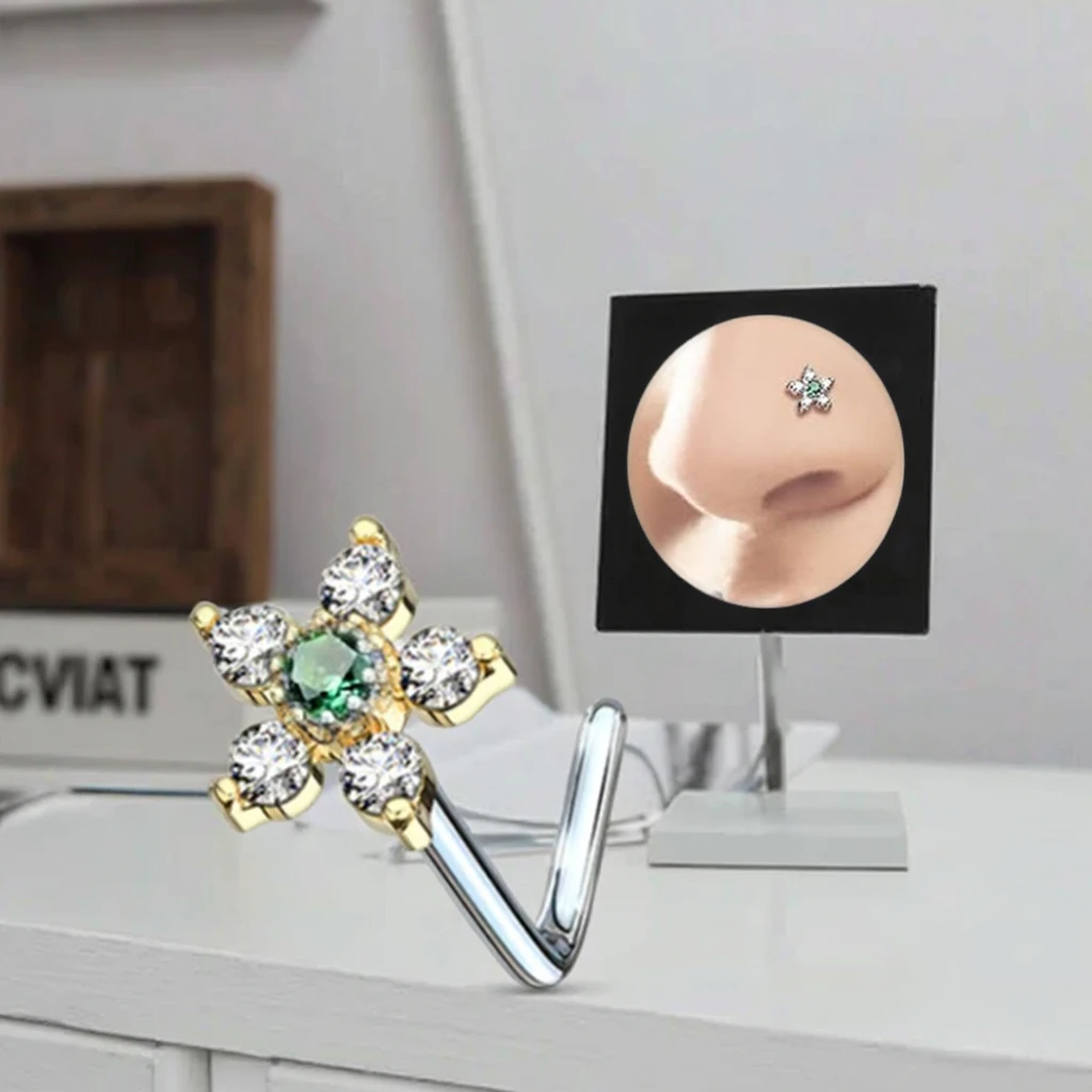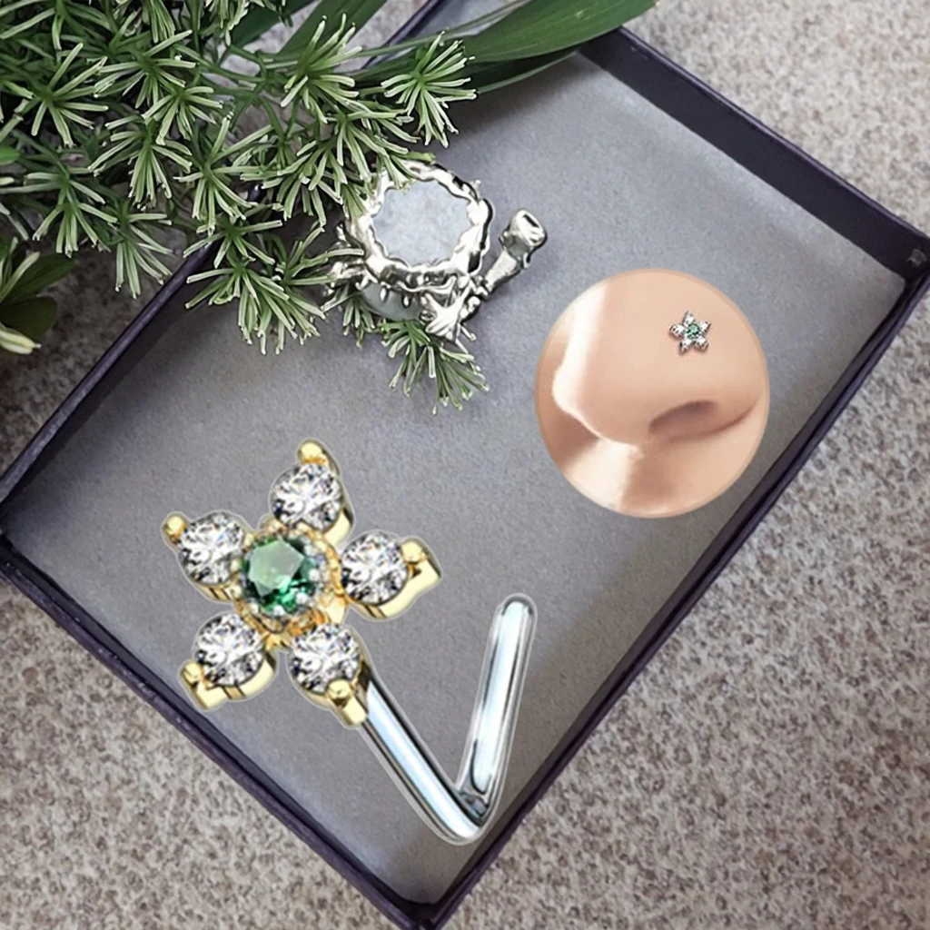 Xinfocus Body Jewelry Gold Plated Crystal Flower Nose Rings L Shaped Nose Piercing Ready to Ship Nose Jewelry