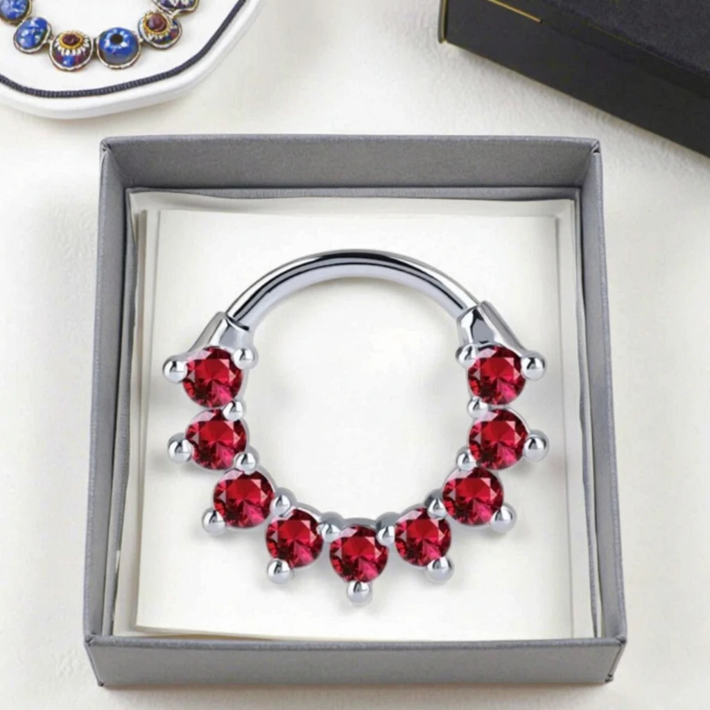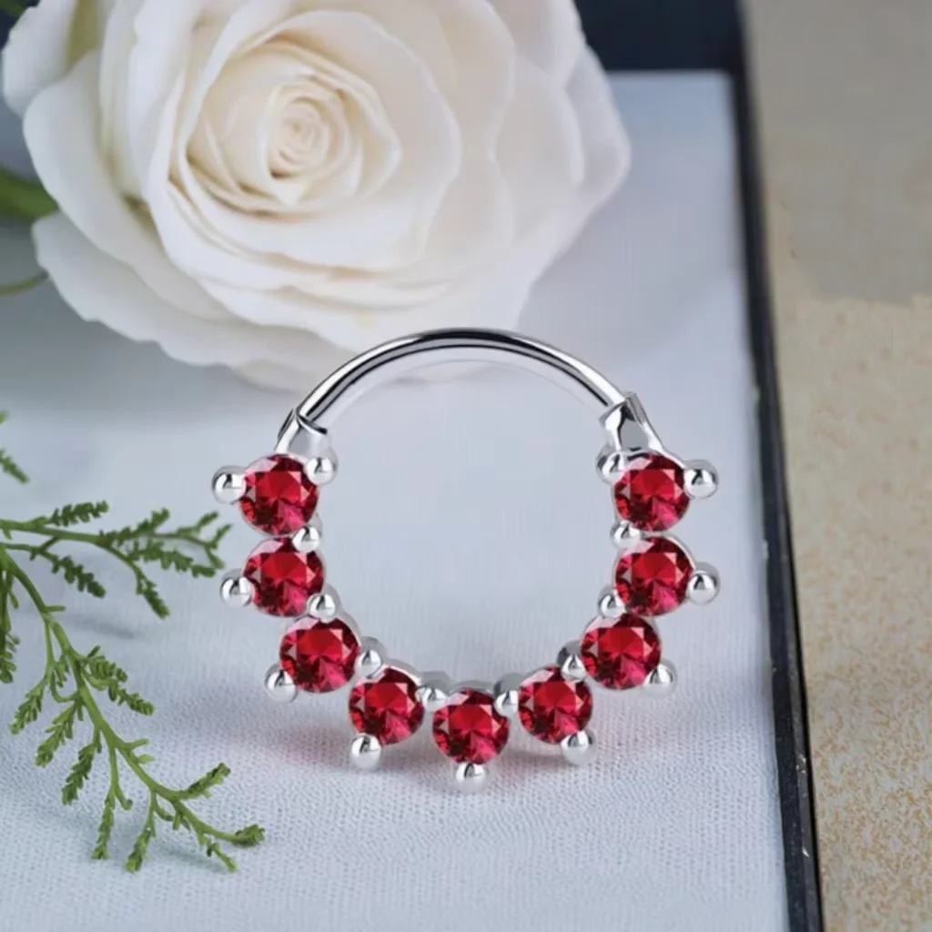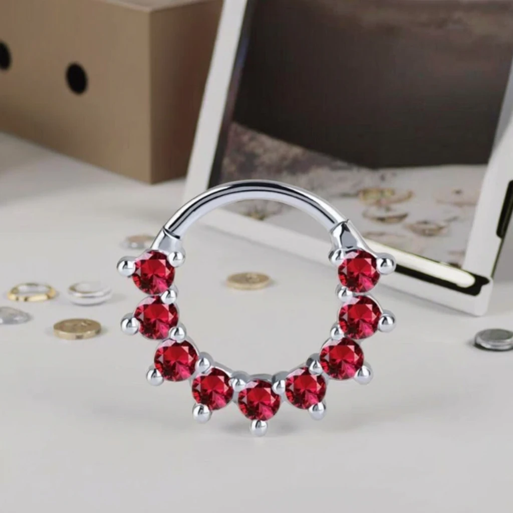 Xinfocus New Trendy Red Gems Hinged Segment Ring Nose Piercing Septum Hoop Ring Jewelry Flower Septum Piercing Clicker Ring