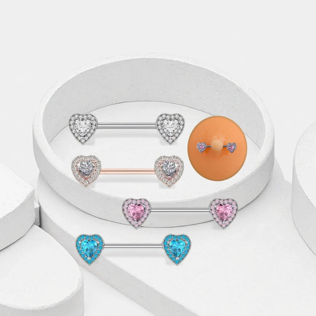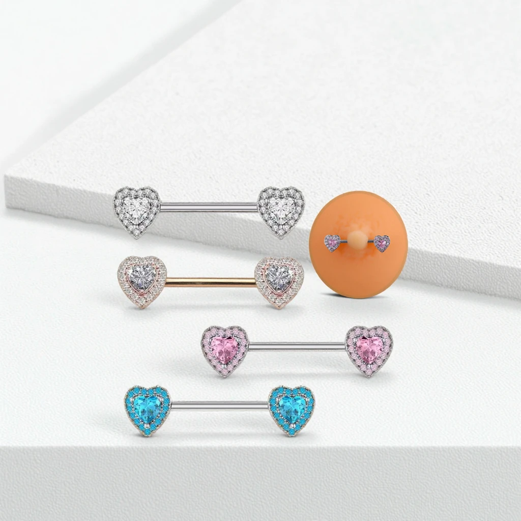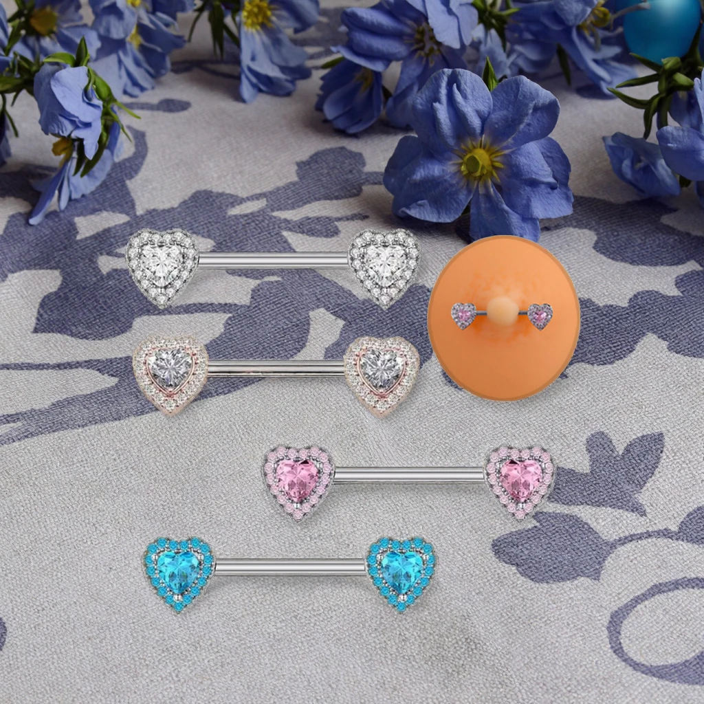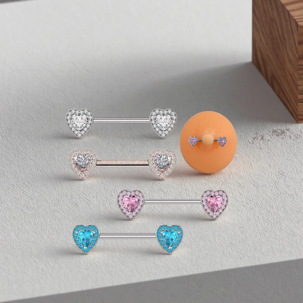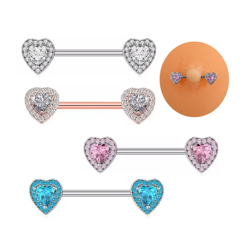 Xinfocus Hot Sale 14G Stainless Steel Body Jewelry-Crystal Heart Nipple Barbell Ring Fine Piercing Jewelry Fashion Women