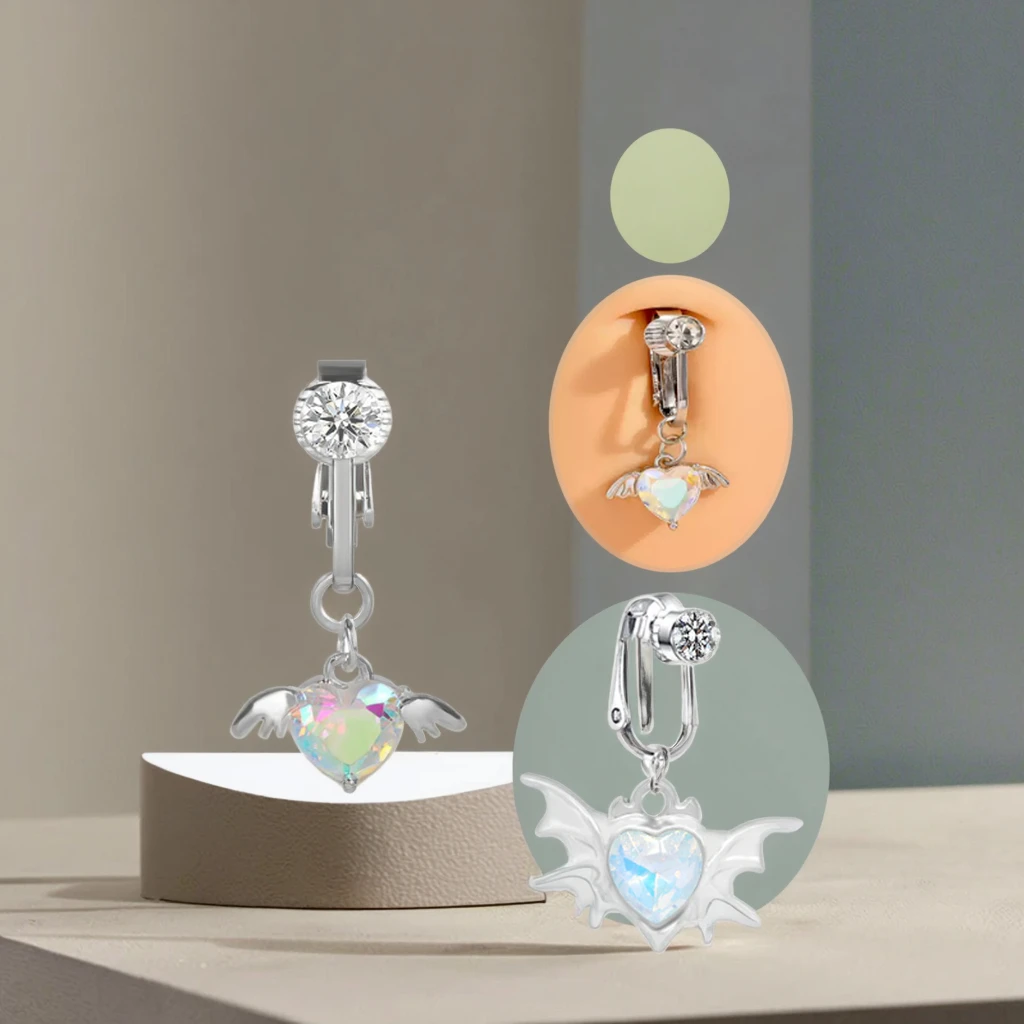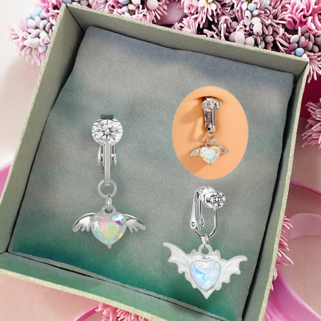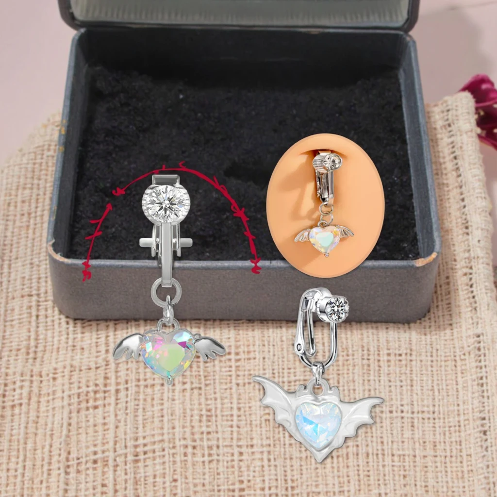 Fake Belly Button Ring Non Piercing Heart Dangle Clip on Navel Piercing Fashion Body Jewelry Wholesale