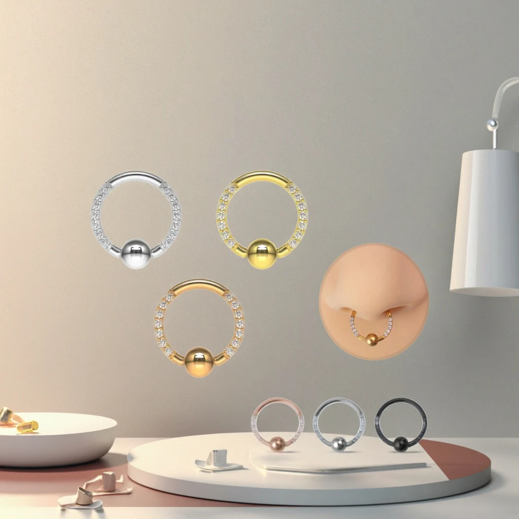 BCR High Quality Gold Plated Stainless Steel Captive Bead Ring Wholesale Body Piercing Jewelry Nose Septum Rings Copper Main
