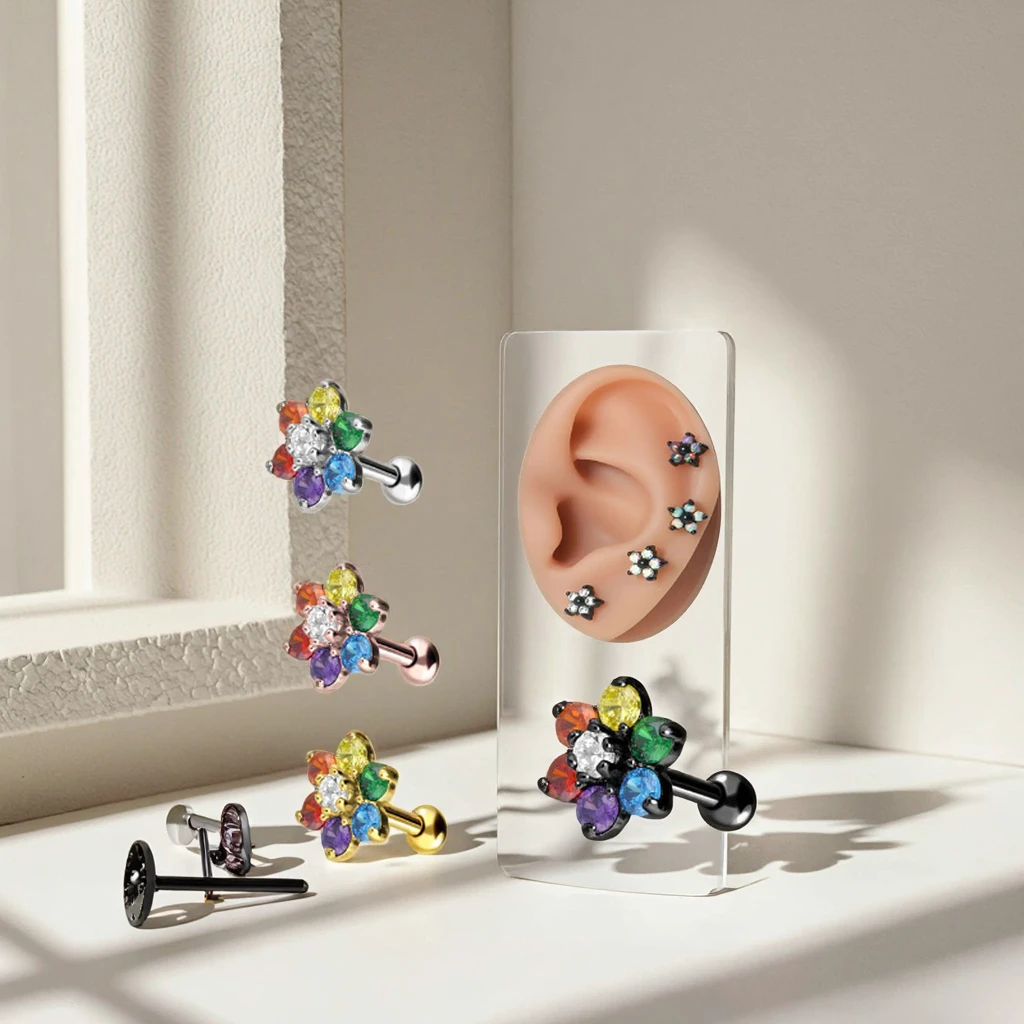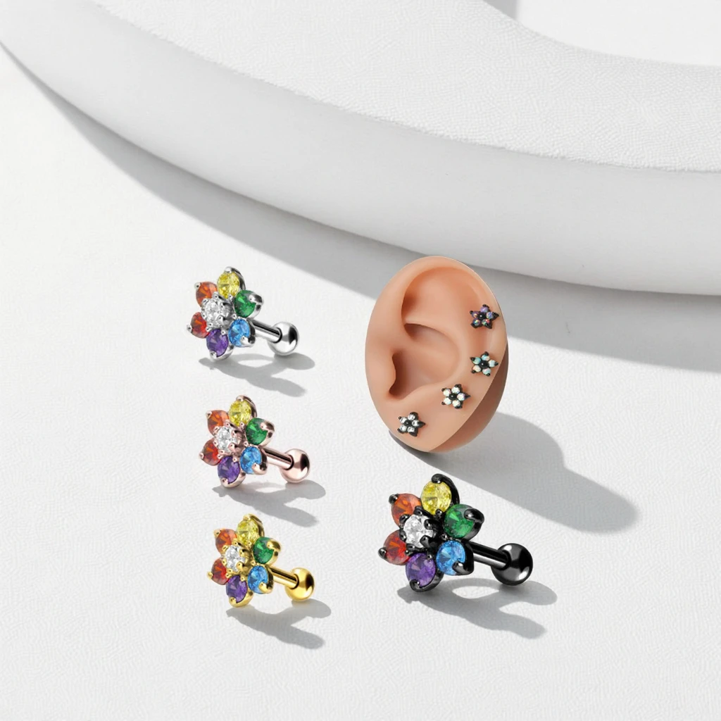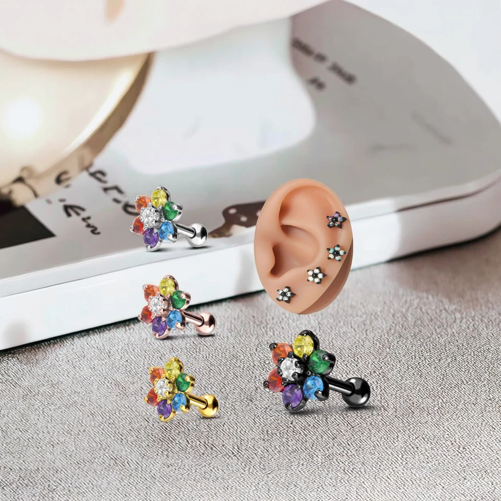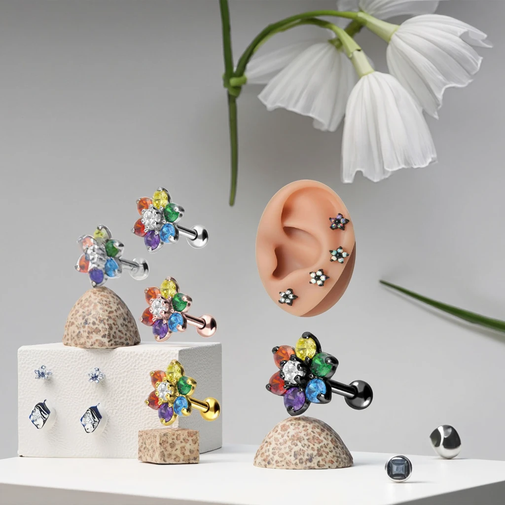 Xinfocus Hot Sale Ear Piercing Jewelry ZirconFlower Cartilage Tragus Earring Women Fashion Piercing Helix Ear Stud Ring