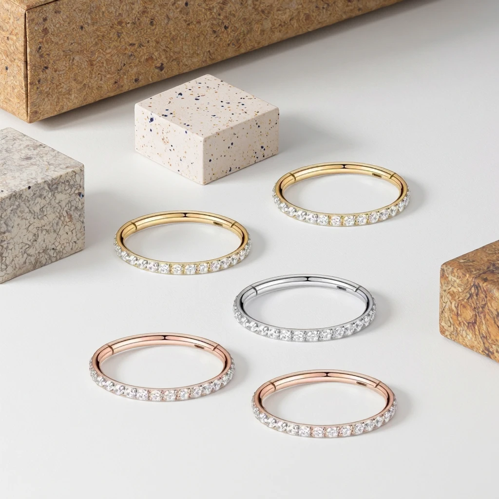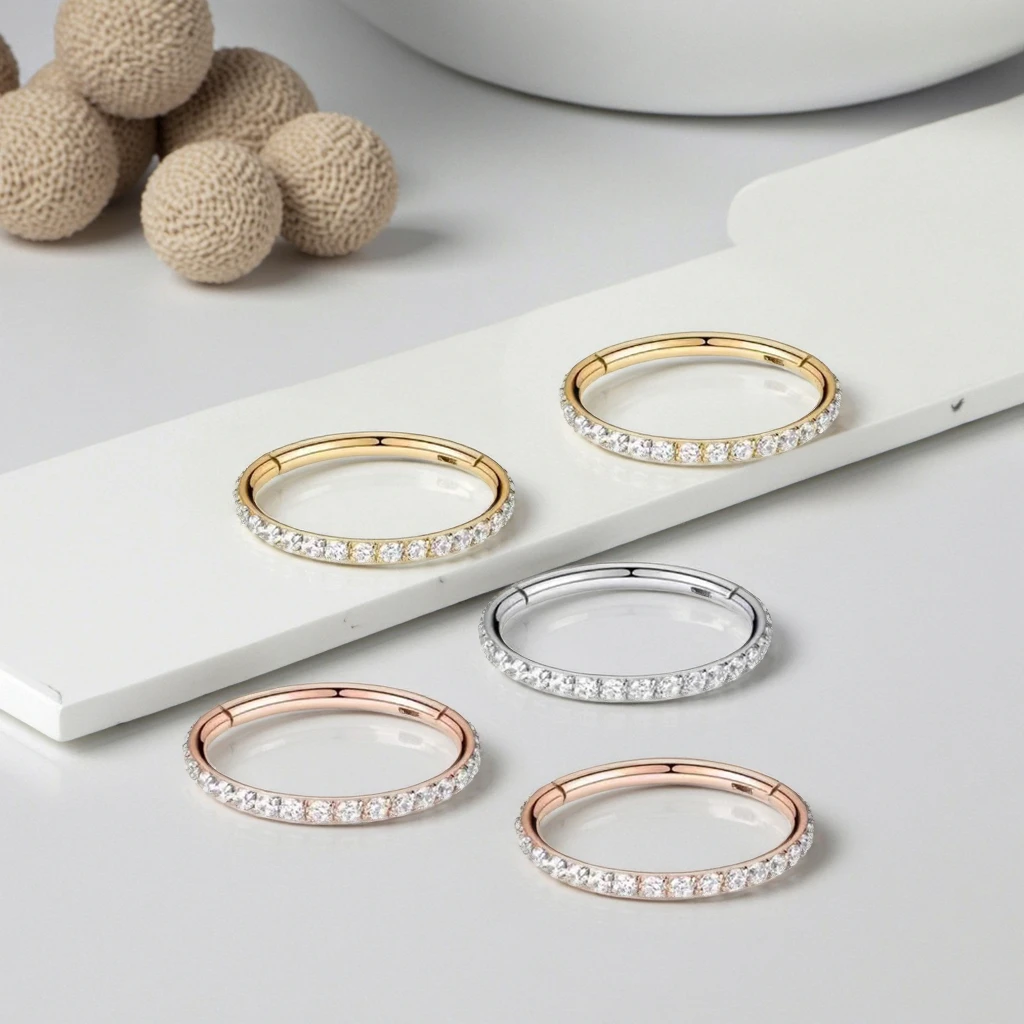 Implant Grade G23 Titanium Zircon Hinged Segment Ring Nose Piercing Septum Cartilage Fashion Titanium Body Jewelry for Women Men