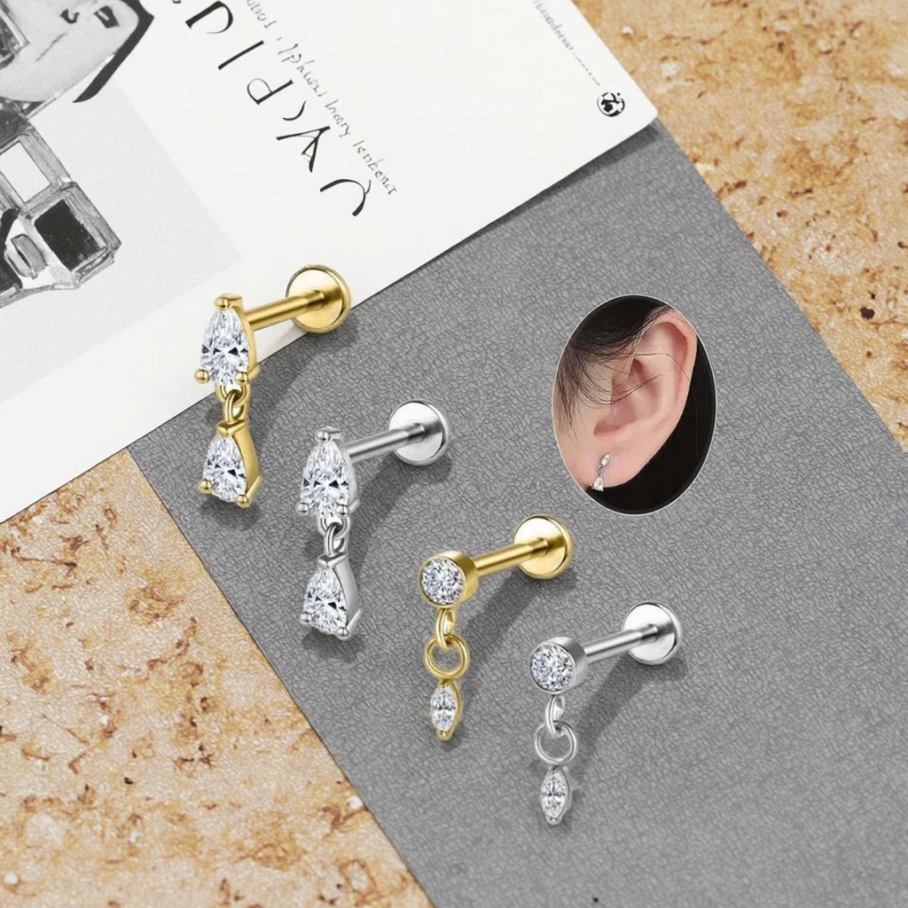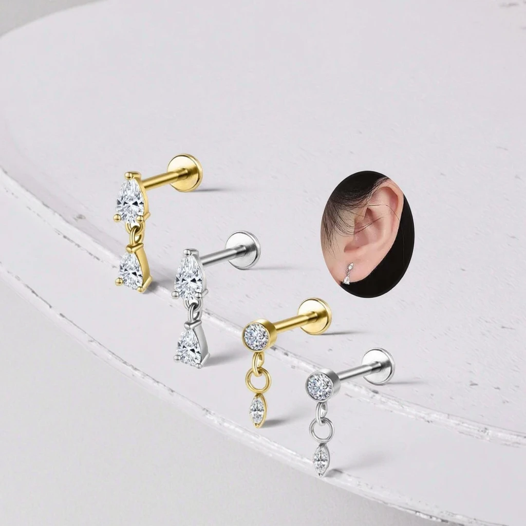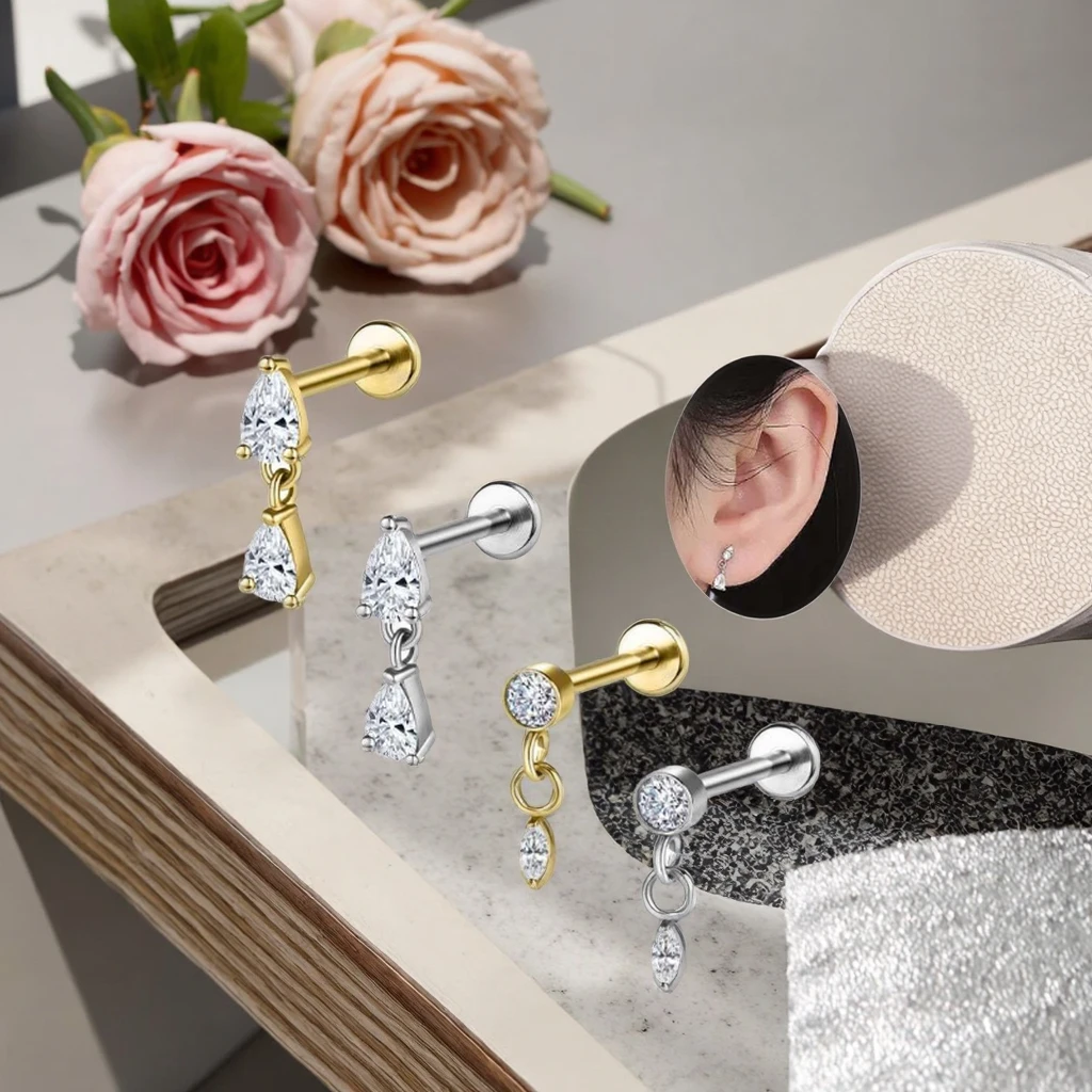Stainless Steel Jewelry Labret Piercing Lip Stud Rings Flat Back Earring Dangle Tragus Cartilage Helix Fashion Piercing