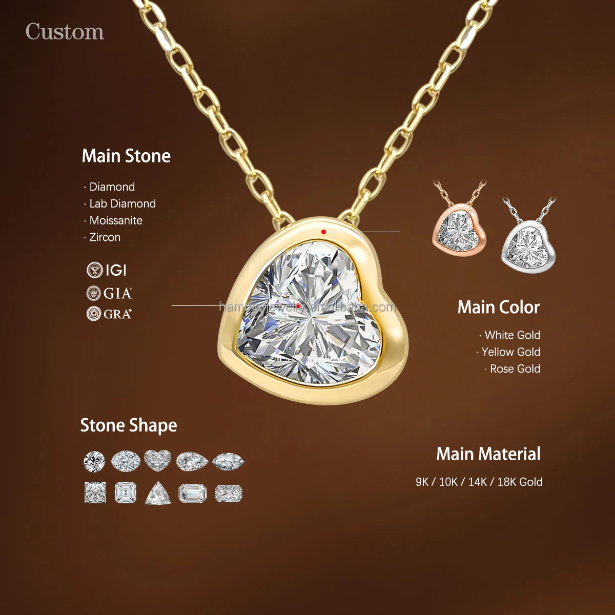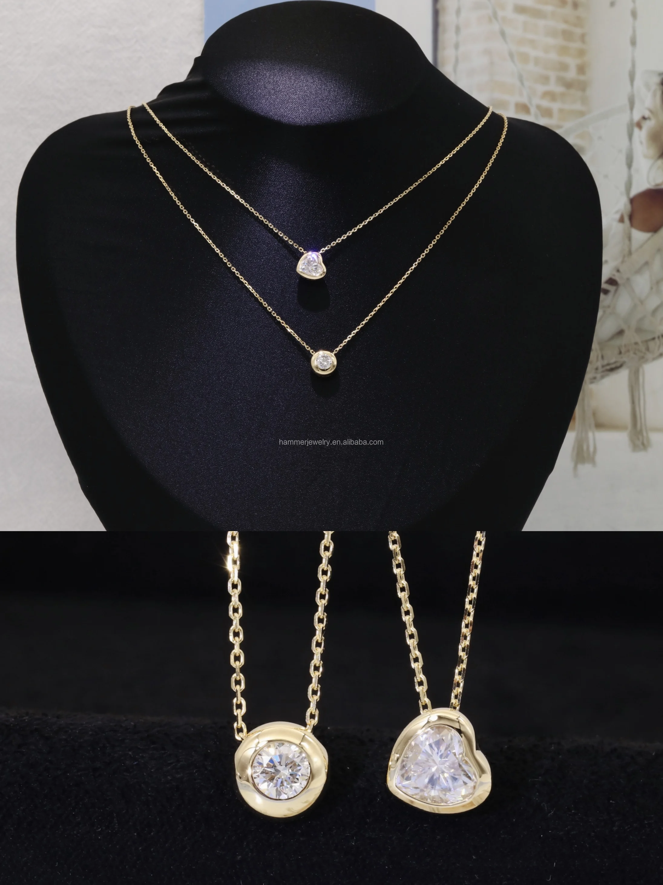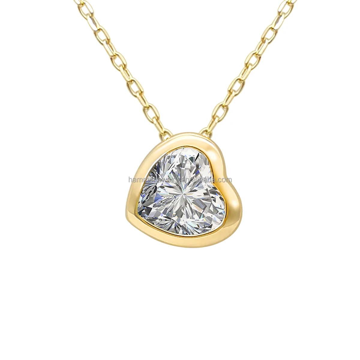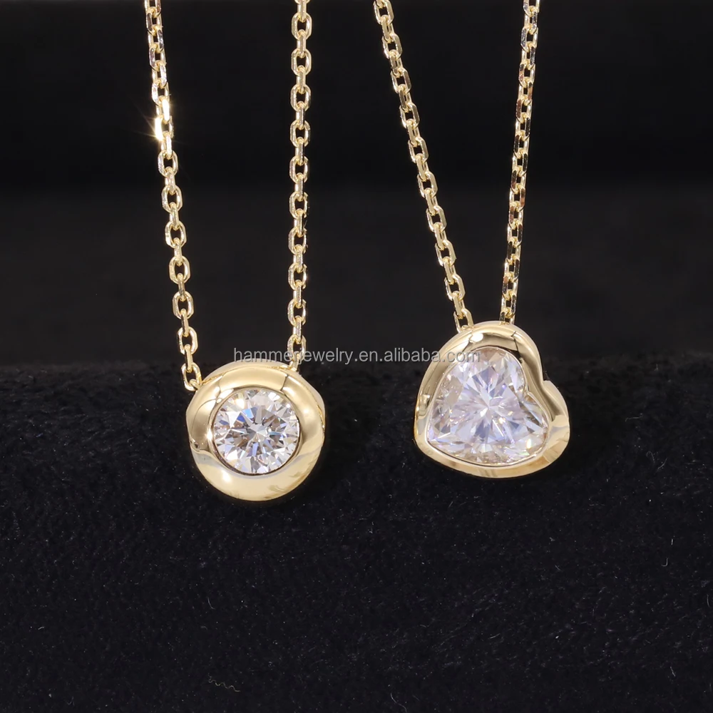 New Arrival AU585 14K Solid Gold Heart Moissanite / Lab Diamond Necklace for Women & Children Support Customization