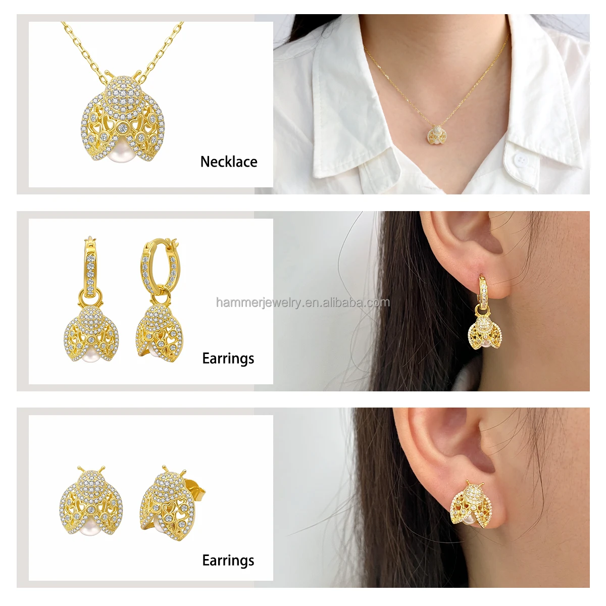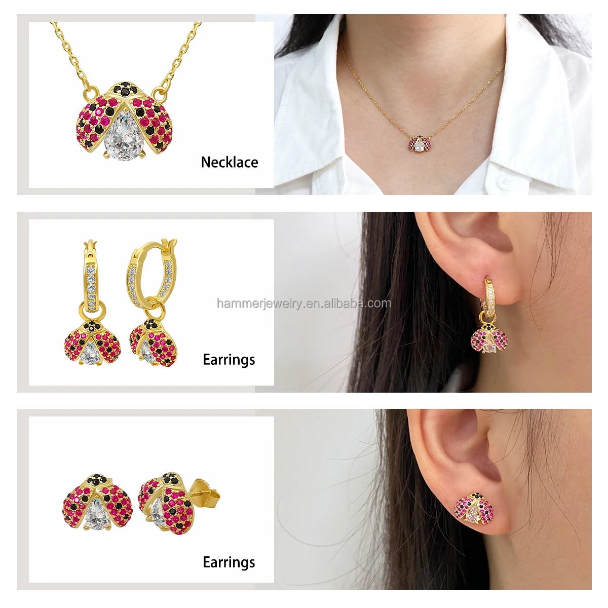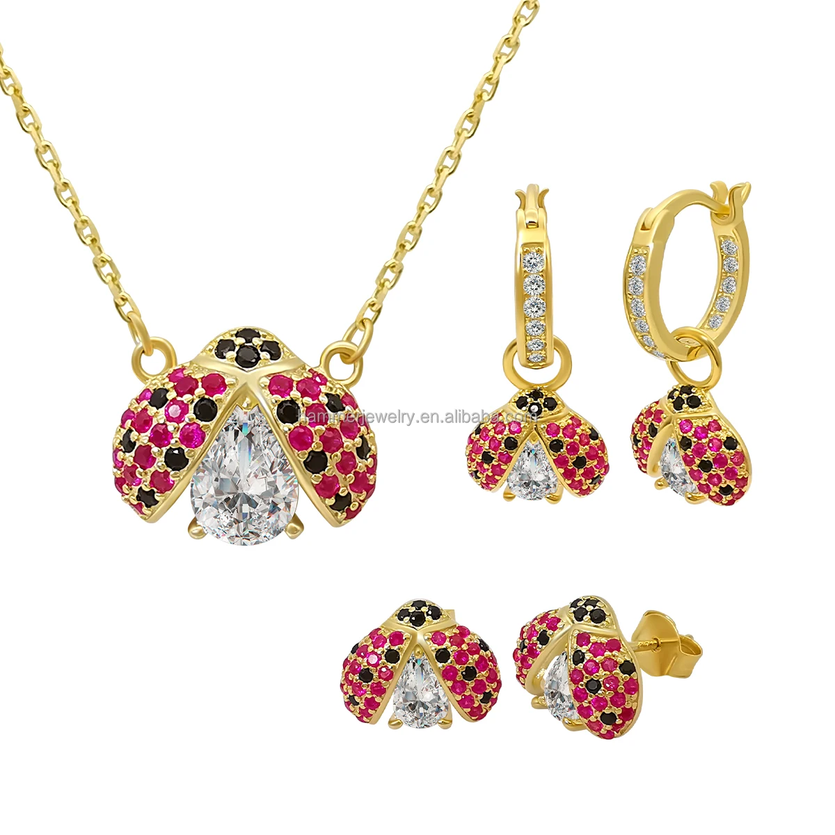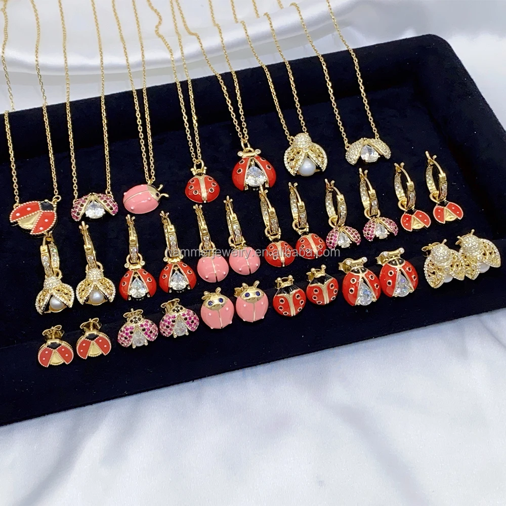 Custom OEM/ODM 14K/18K Gold Plated Sterling Silver Ladybird Design Necklace Earrings Set Trendy Design Children Women Gift