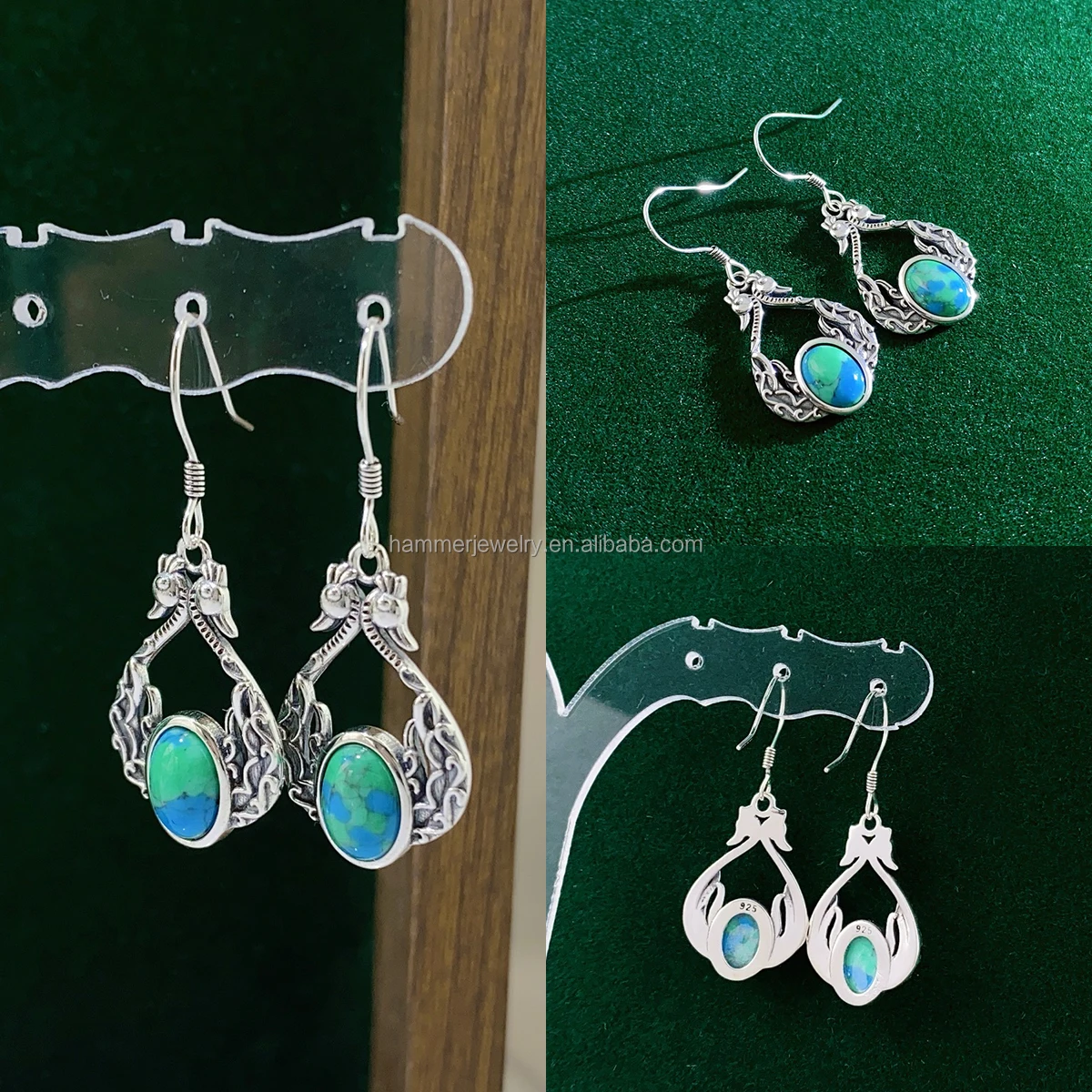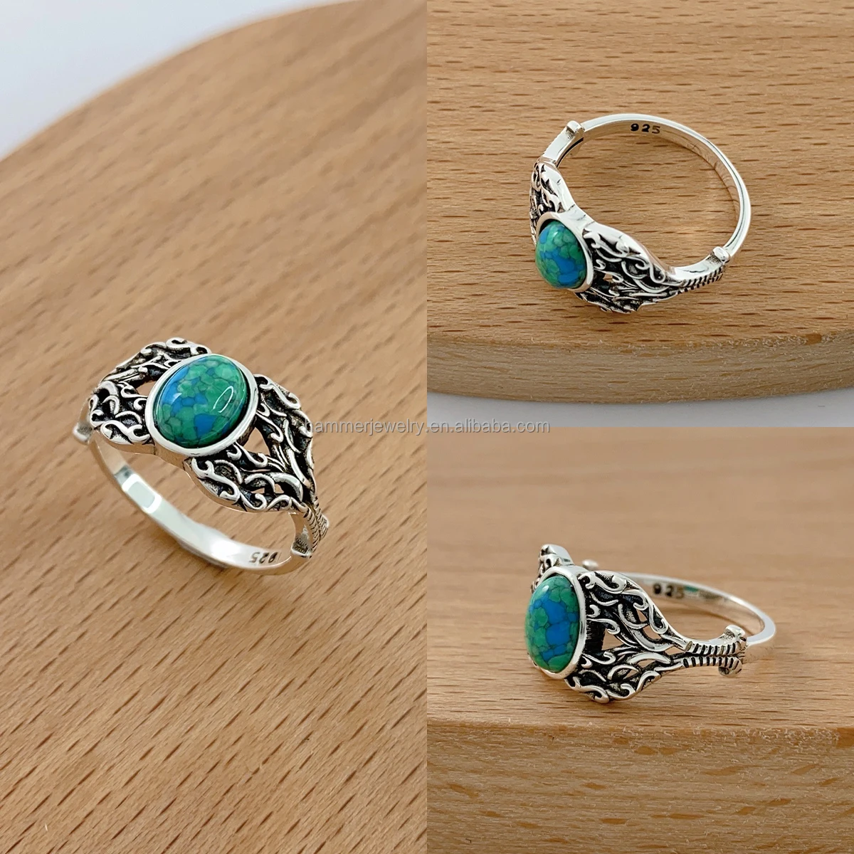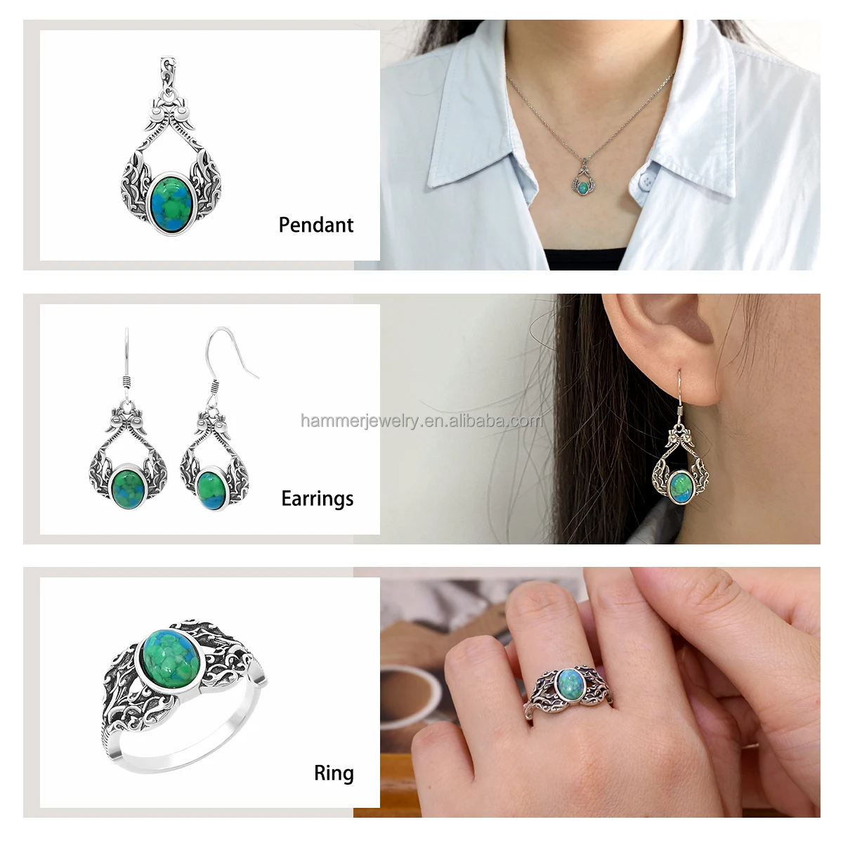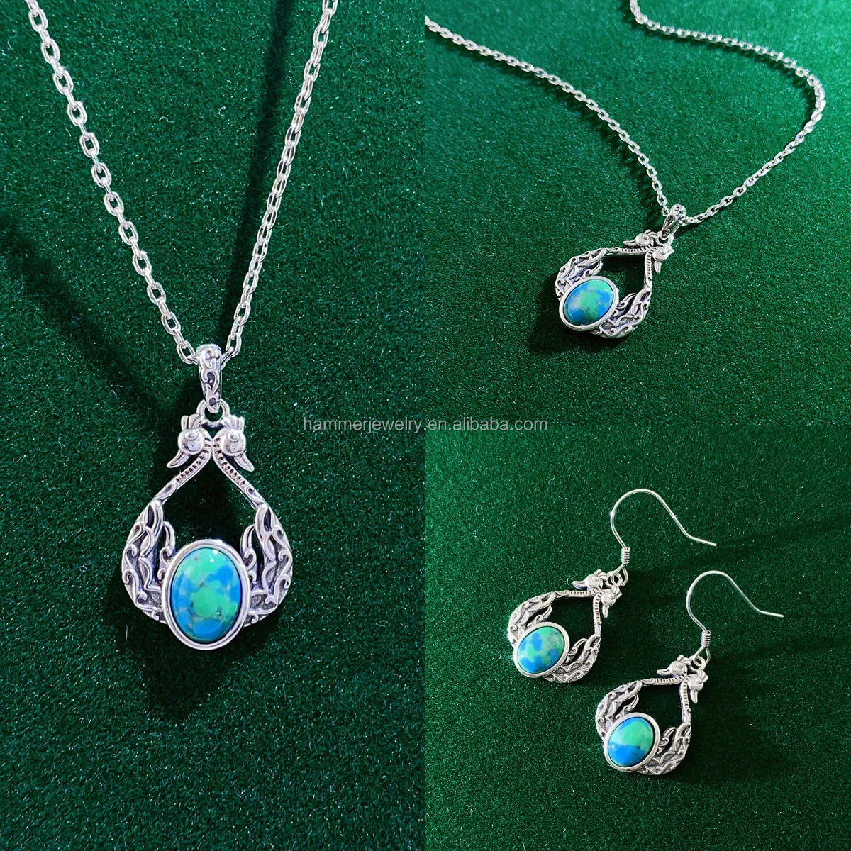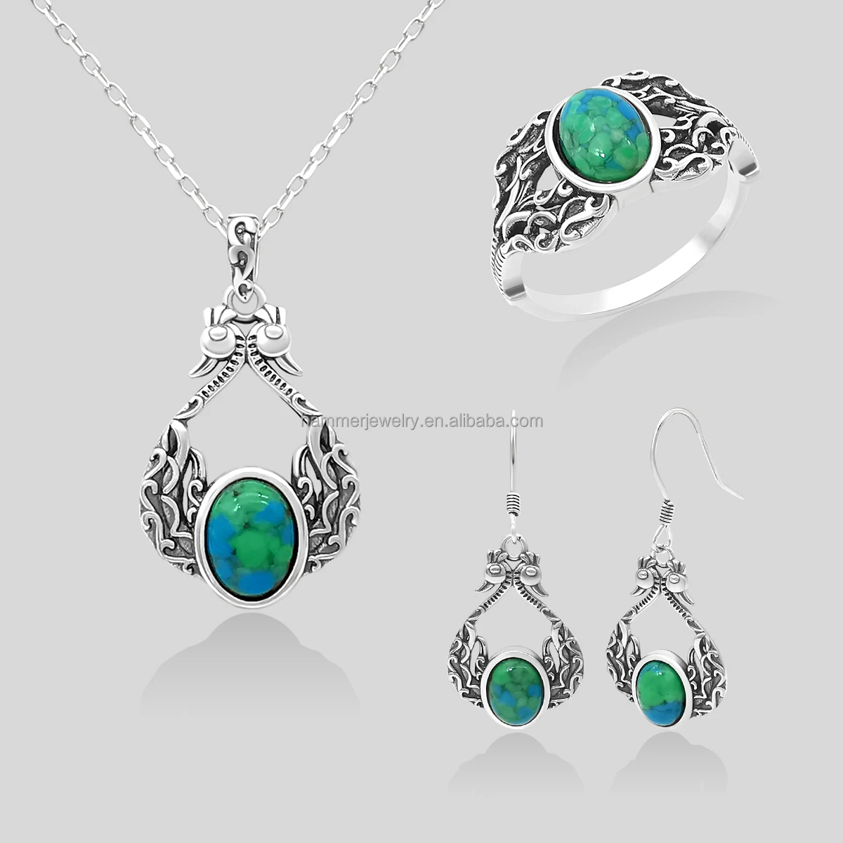 Sterling SilverTrendy Necklace/Earrings/Ring Set S925 Silver Fine Jewelry Set with Turquoise Children Women Gift