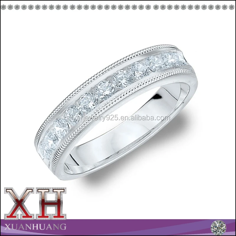 14K WHITE GOLD FINE WEDDING AQUAMARINE BAND RING for WOMEN FASHION JEWELRY 925