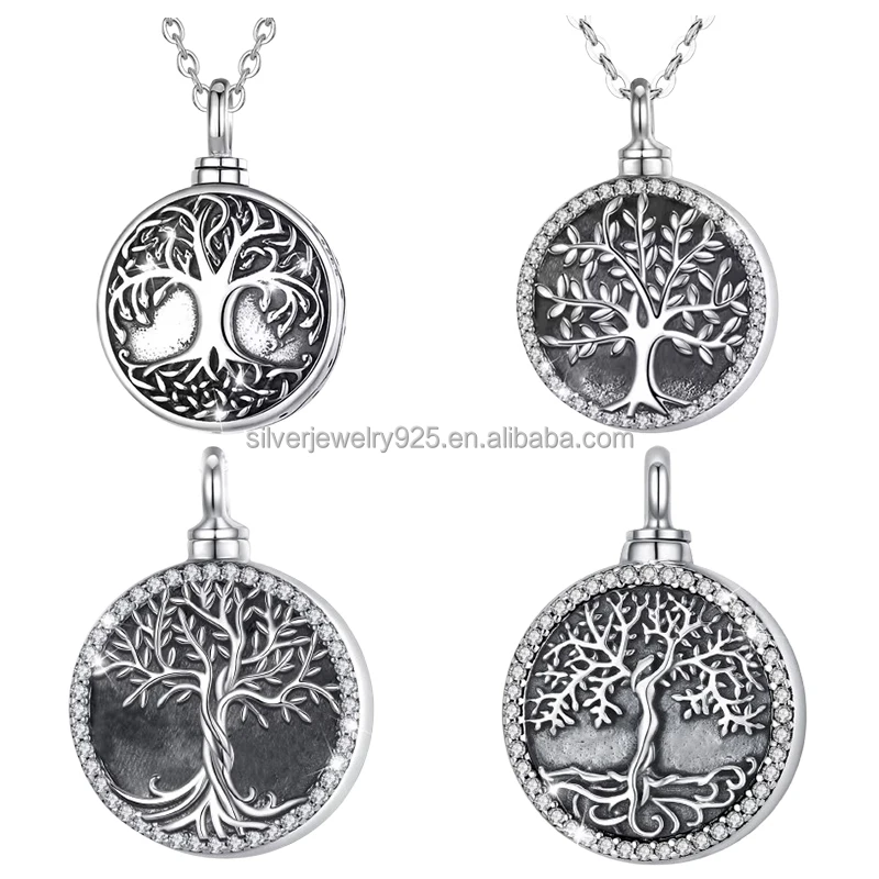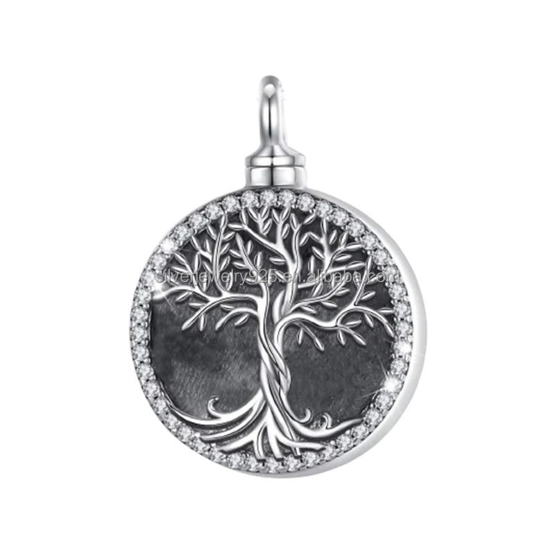 Trendy Style 925 Sterling Silver Tree of Life Rhodium Platedkeepsake Ashes Urn Cremation Fine Necklace Pendant Wholesale Price