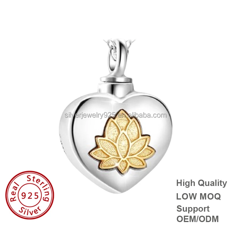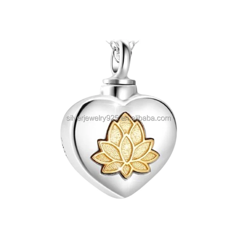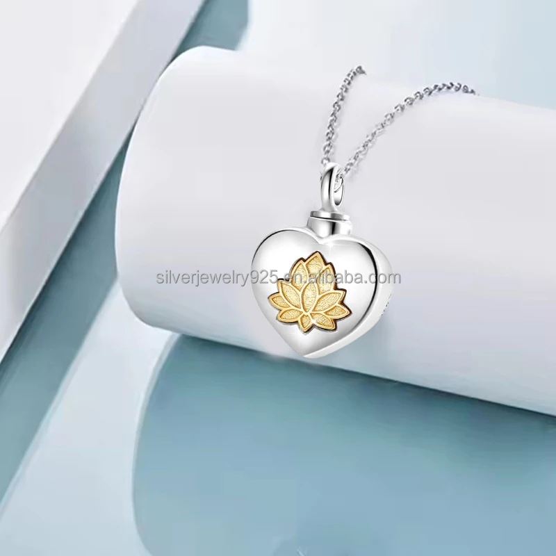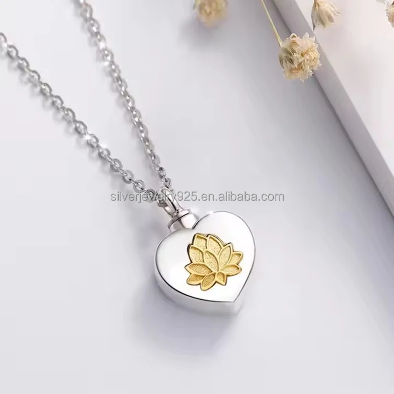 2026 New Arrival 925 Sterling Silver Gold Lotus Urn Keepsake Cremation Jewelry Necklace Pendant Rhodium Plated for Gift