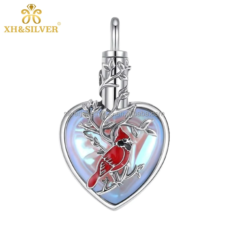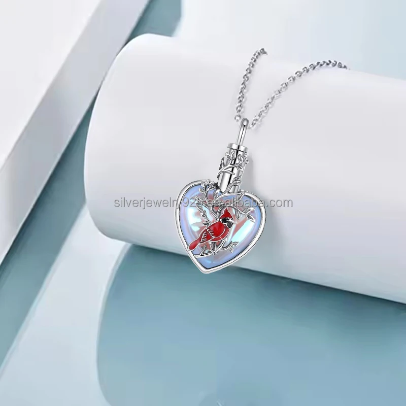Trendy Spot Goods 925 Sterling Silver Moonstone Red Cardinal Ash Custom Keepsake Urn Pendant Fine Pendants Charms for Women