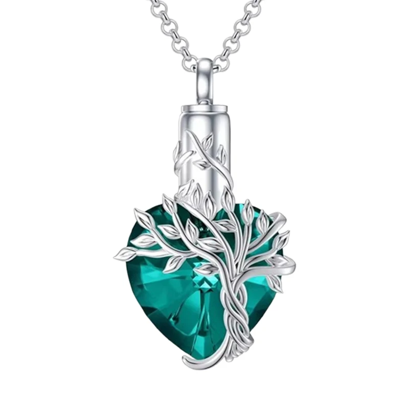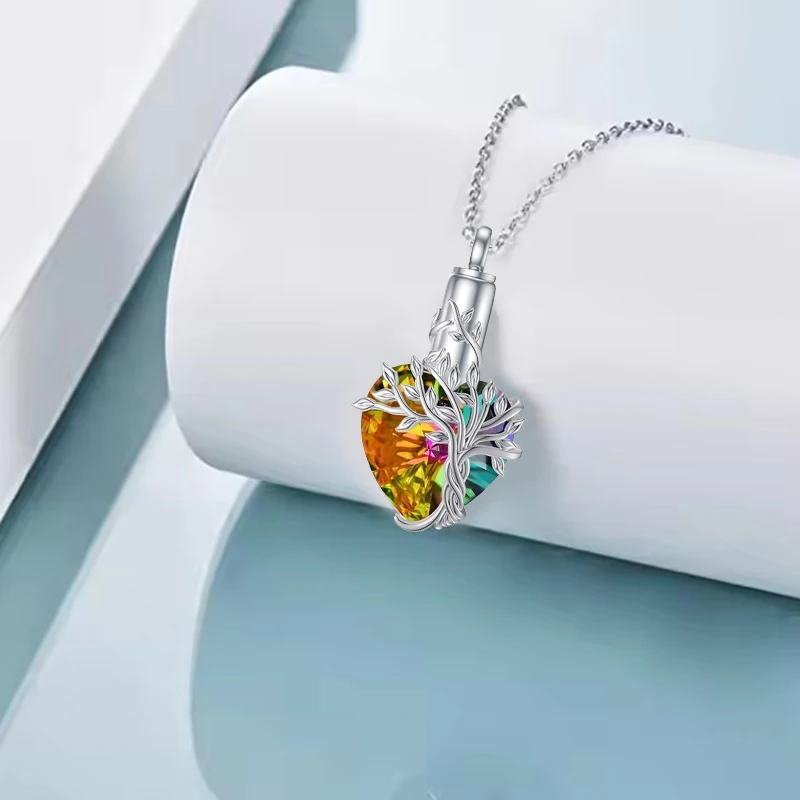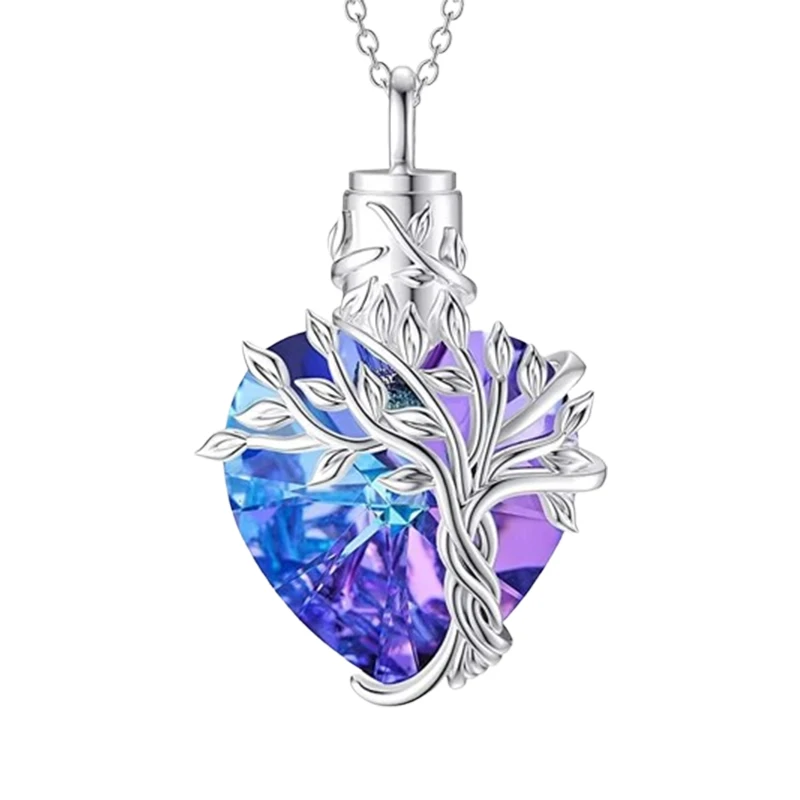 Wholesale Customized 925 Sterling Silver Tree Life Heart Cremation Pet Urn Natural Crystal Ashes Keepsake Necklace Pendant Gift