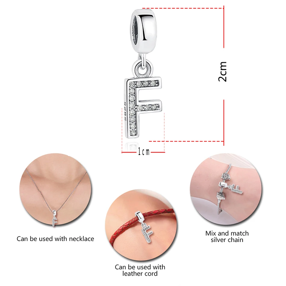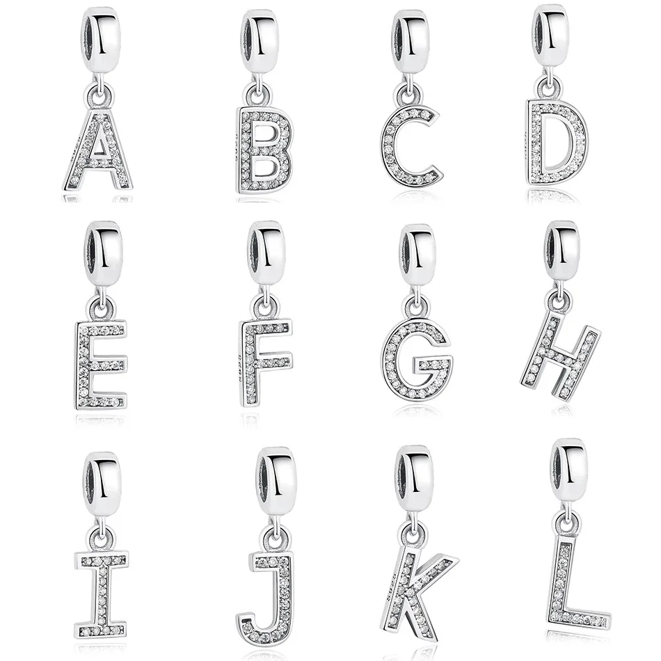 26 Letter A-Z Alphabet Initial Charms Letter Pendant 925 Sterling Silver Letter Charm with Cz Crystals