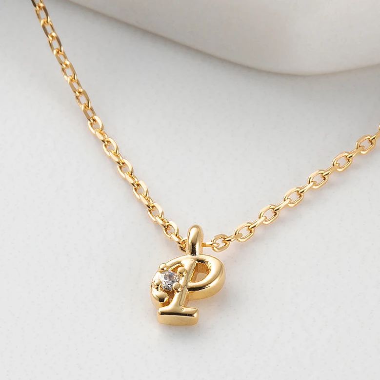 925 Sterling Silver Crystal Letter P M Pendant Necklace Jewelry Initials Dainty Custom Diamond 18K Gold Plated Initial Necklace