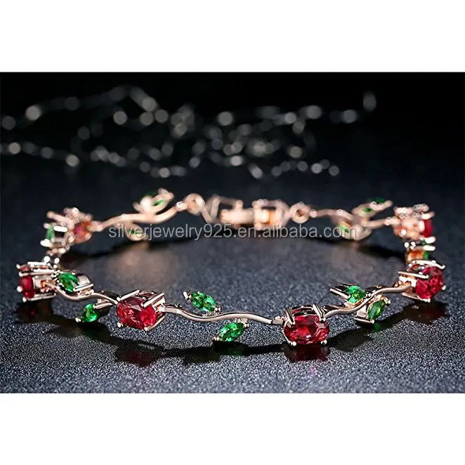 Yellow Gold-Plated Sterling Silver Diamond Accent Gemstone Tennis Bracelet Diamond Bangle Bracelet