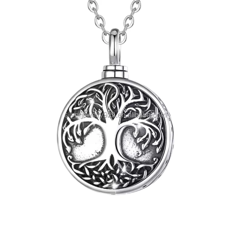 Wholesale 925 Sterling Silver Tree Life Urn Pendant Rhodium Plated Ashes Keepsake Fine Jewelry Necklace for Women Perfect Gift