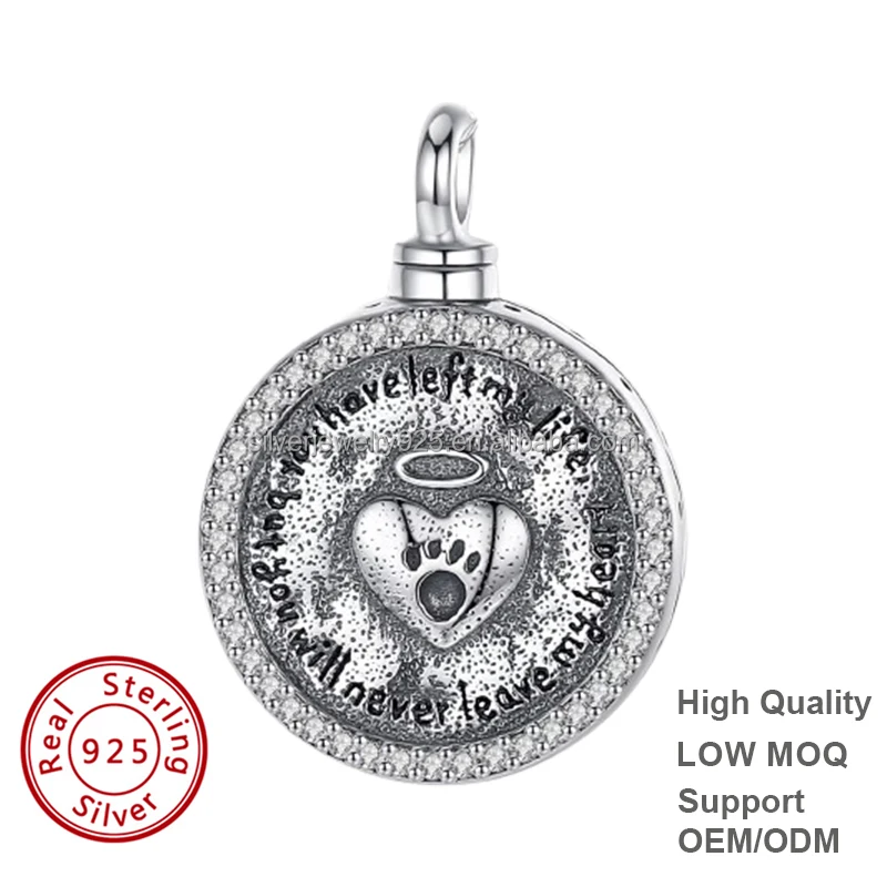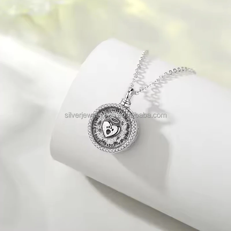 2026 Hot Sell Trendy Style 925 Sterling Silver Rhodium Plated Memorial Cremation Ash Holder Urn Fine Jewelry Zircon for Gifts