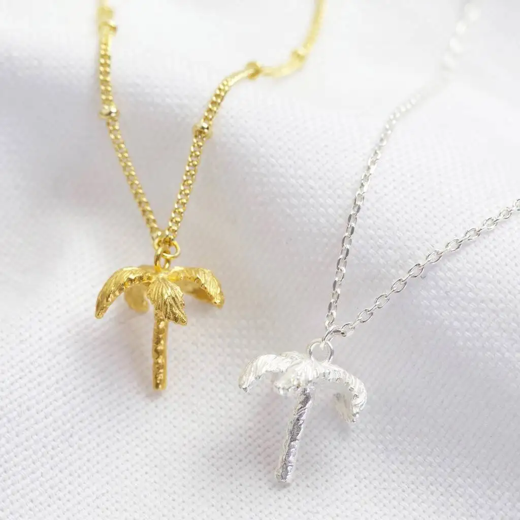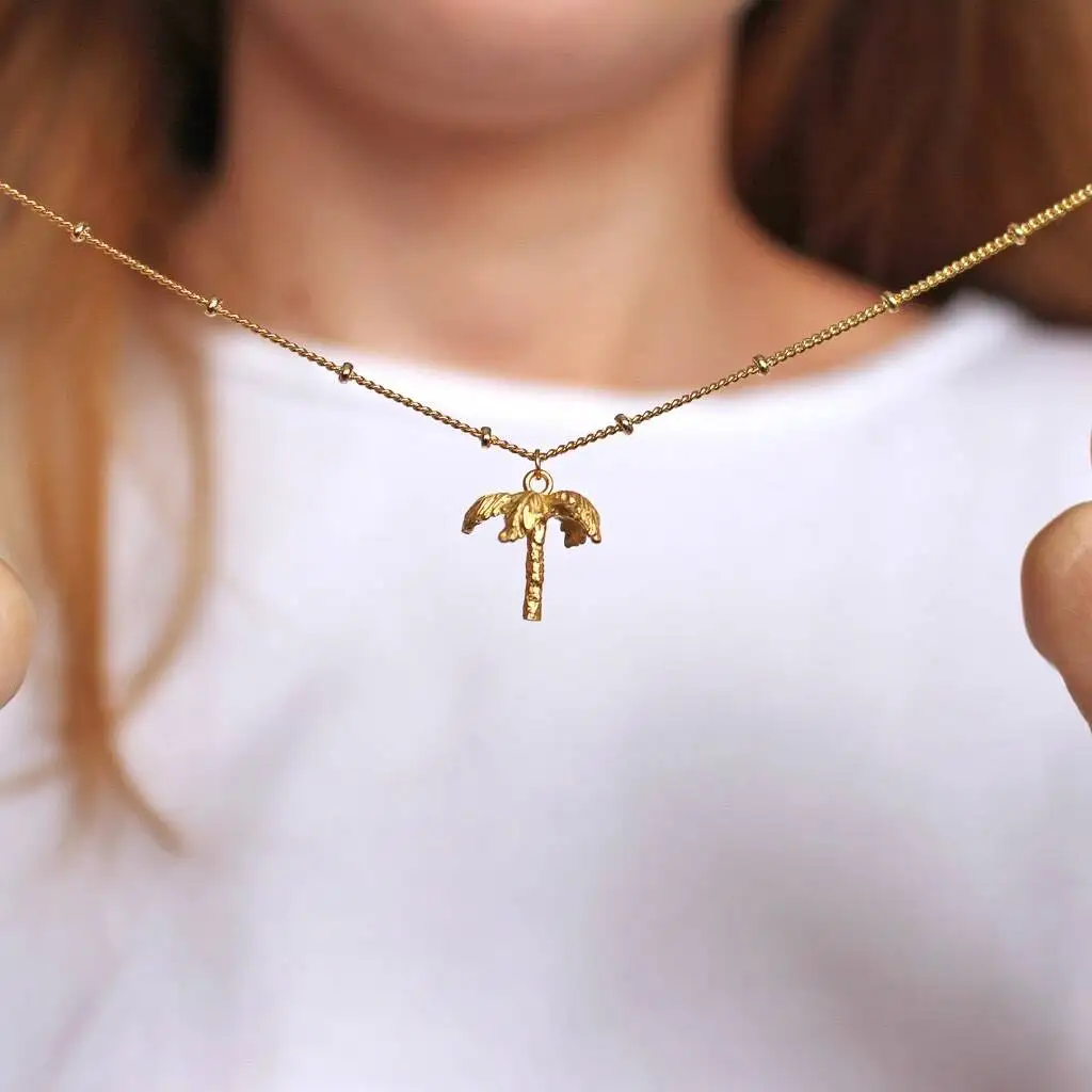 Wholesale Most Popular American Style 14K Gold Plated Palm Tree Jewelry 925 Sterling Silver Palm Tree Pendant Necklace for Women