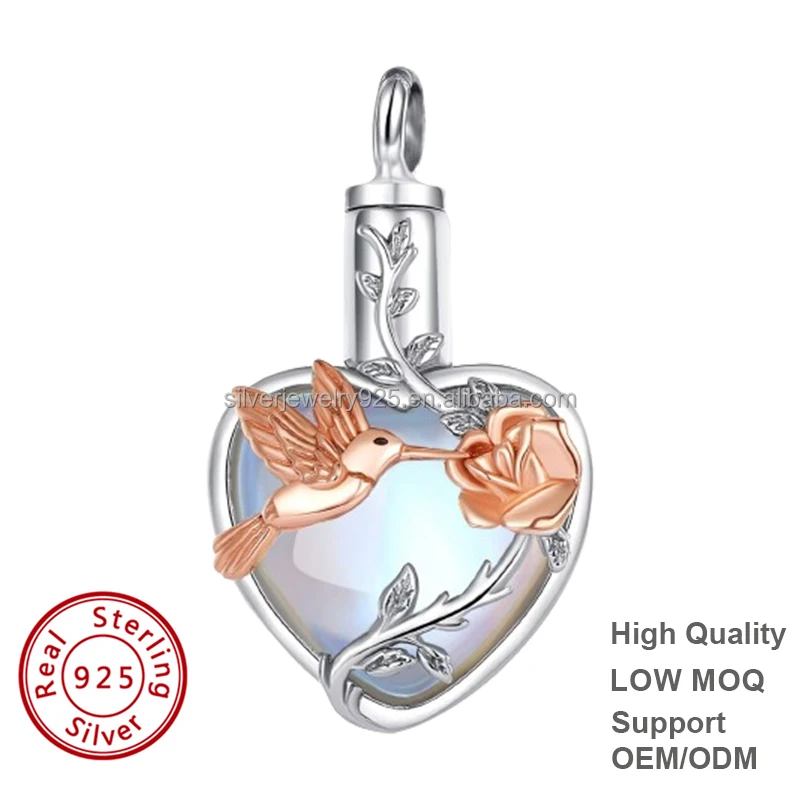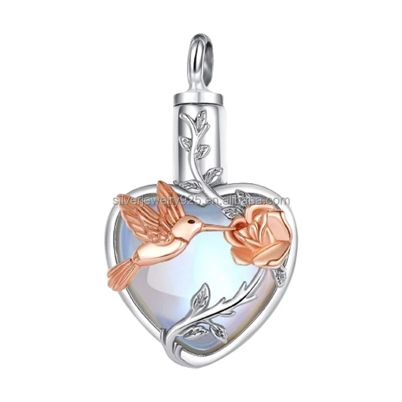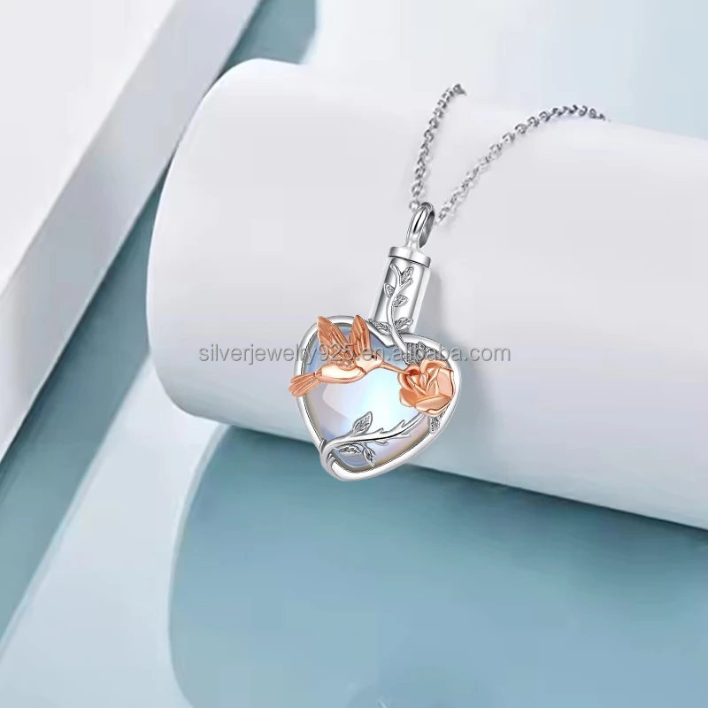 Wholesale Trendy Moonstone 925 Sterling Silver Memory Rose Heart Cremation Ashes Jewelry Urn Pendant Necklaces for Animal Ashes