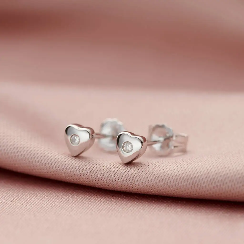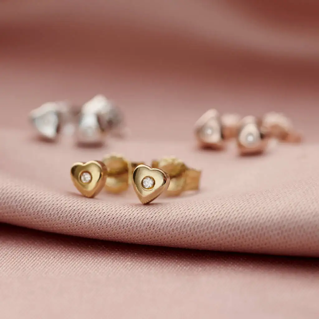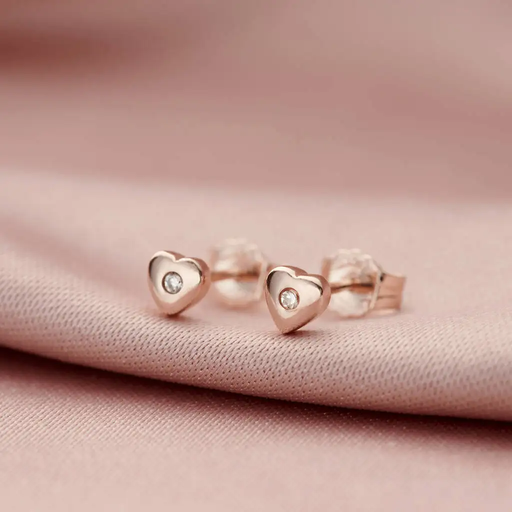 2026 American Trendy Style 925 Sterling Silver Zircon Dainty 14K Gold Plated Diamond Dainty Heart Stud Earrings for Women