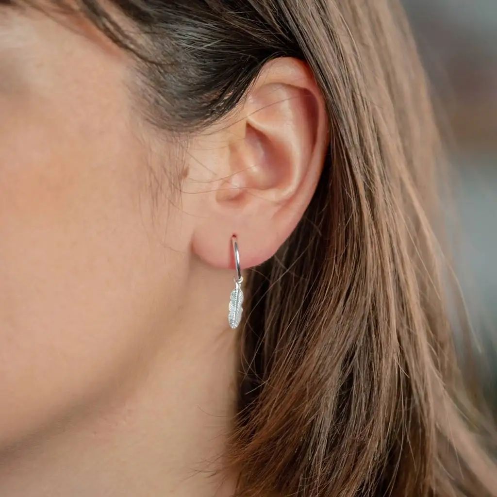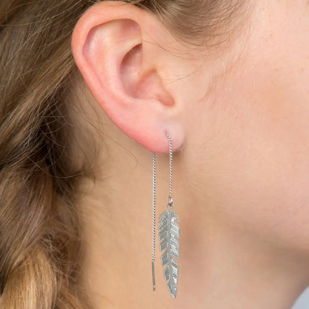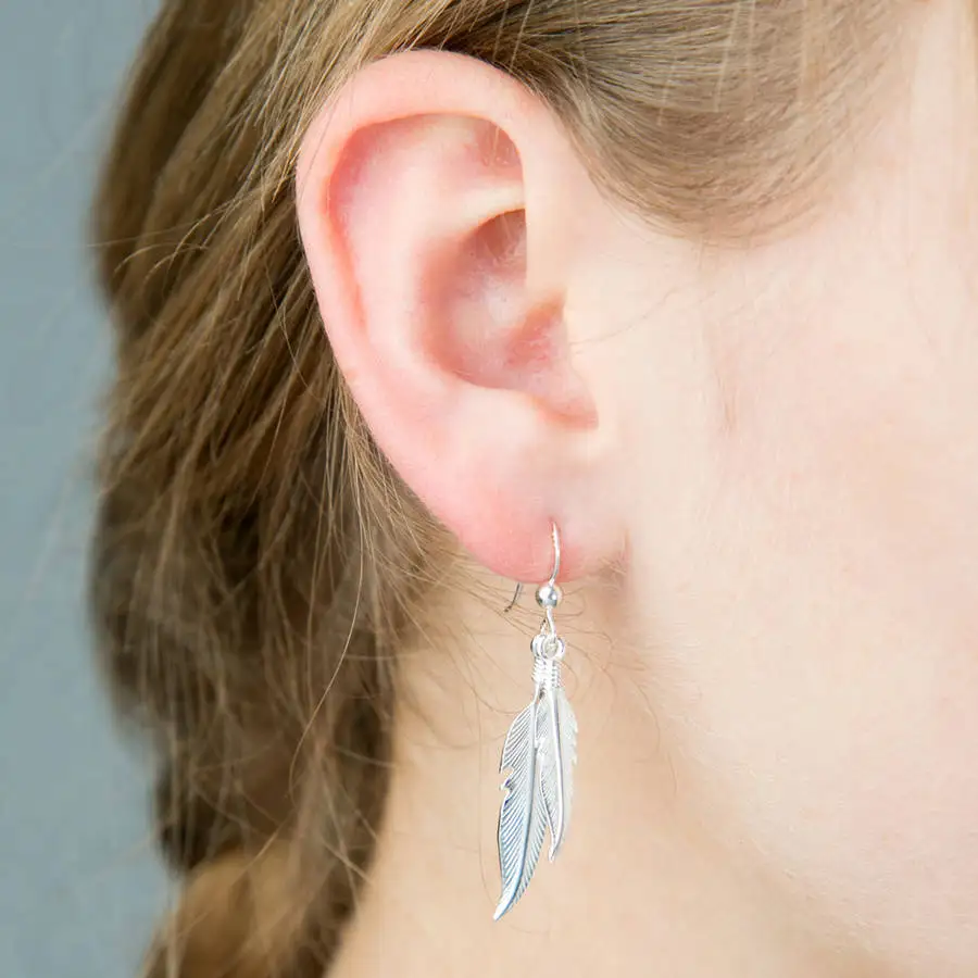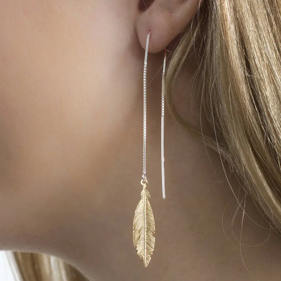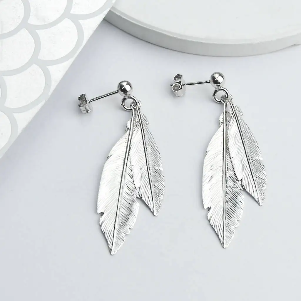 Wholesale American Style Trendy 925 Sterling Silver Hoop Earrings Big Feathers Long Extreamly Large Feather Earrings for Women