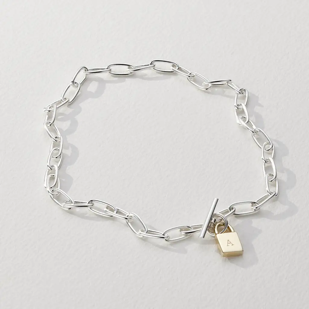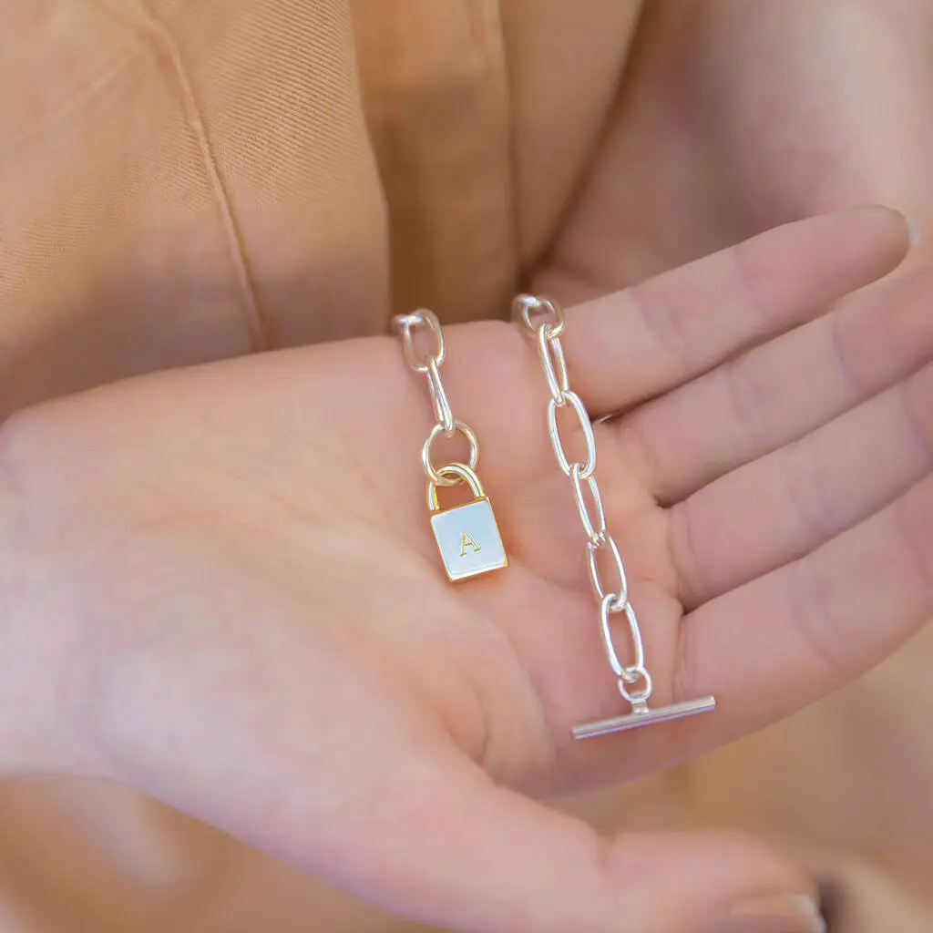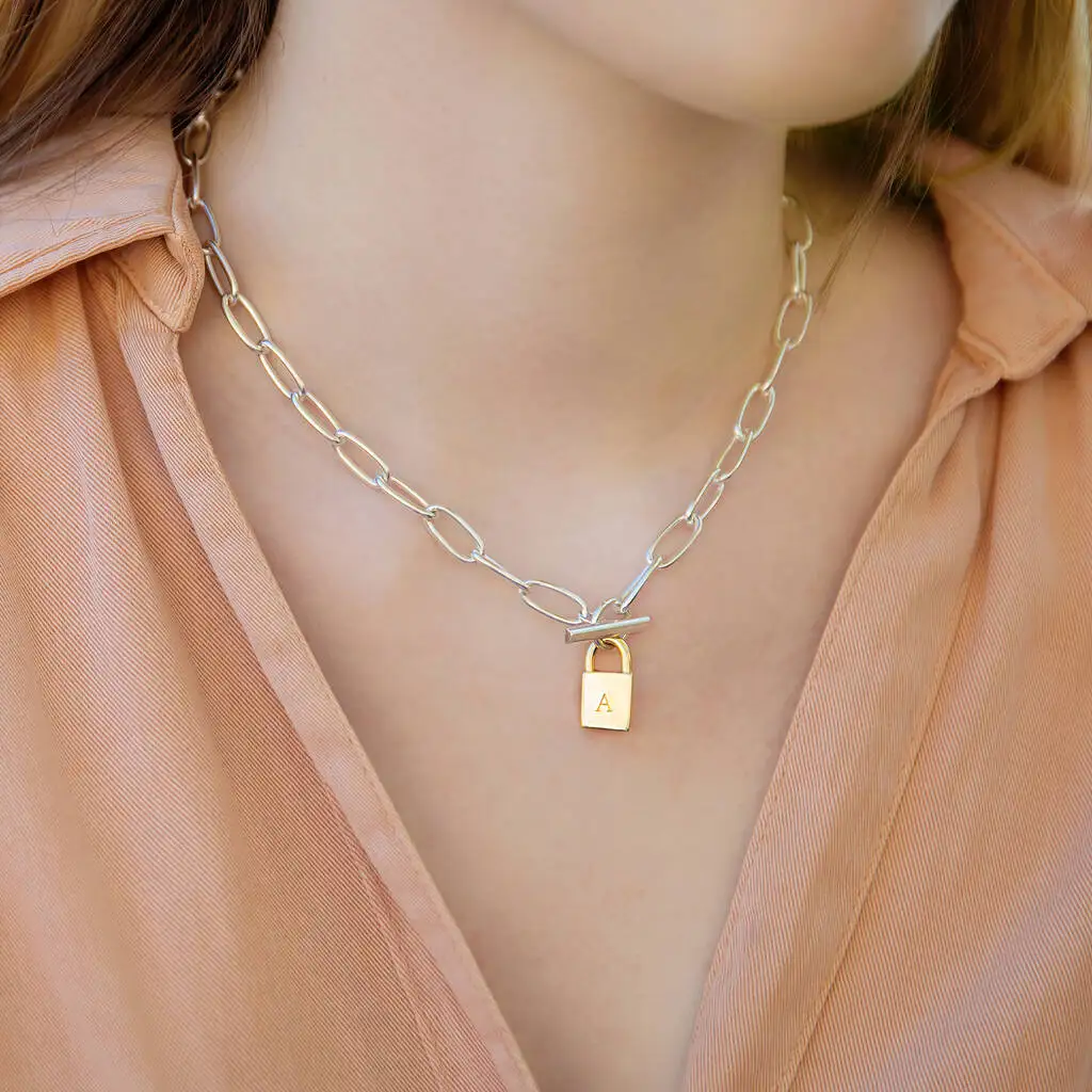 Customized High Quality American Style Paperclip Chain Necklace 925 Sterling Silver Lock Initial Paperclip Necklace for Women