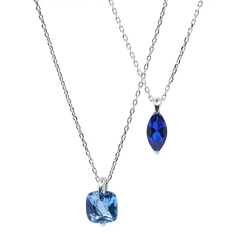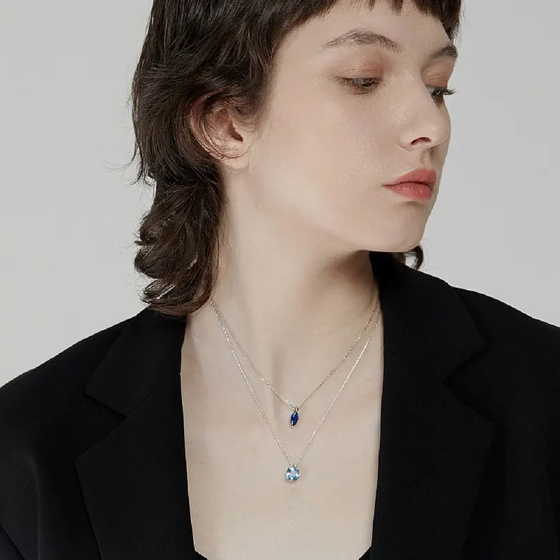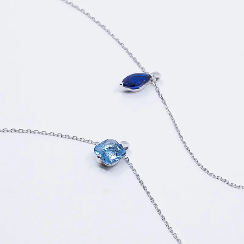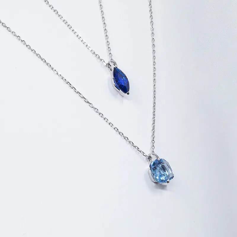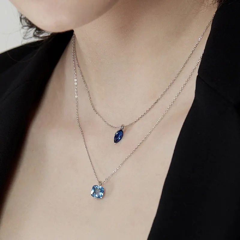 Jewelry Factory Customized Female Square Gemstone Pendant Multi Layer Necklace 925 Sterling Silver Double Layered Necklace